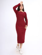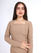 Elegant midi dress featuring a flattering square neckline, fitted silhouette, and stylish side front buttons - perfect for both casual and formal occasions