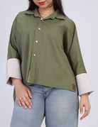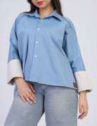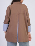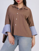 Oversized shirt with stripped cuff details stylish, comfy, and perfect for everyday casual looks