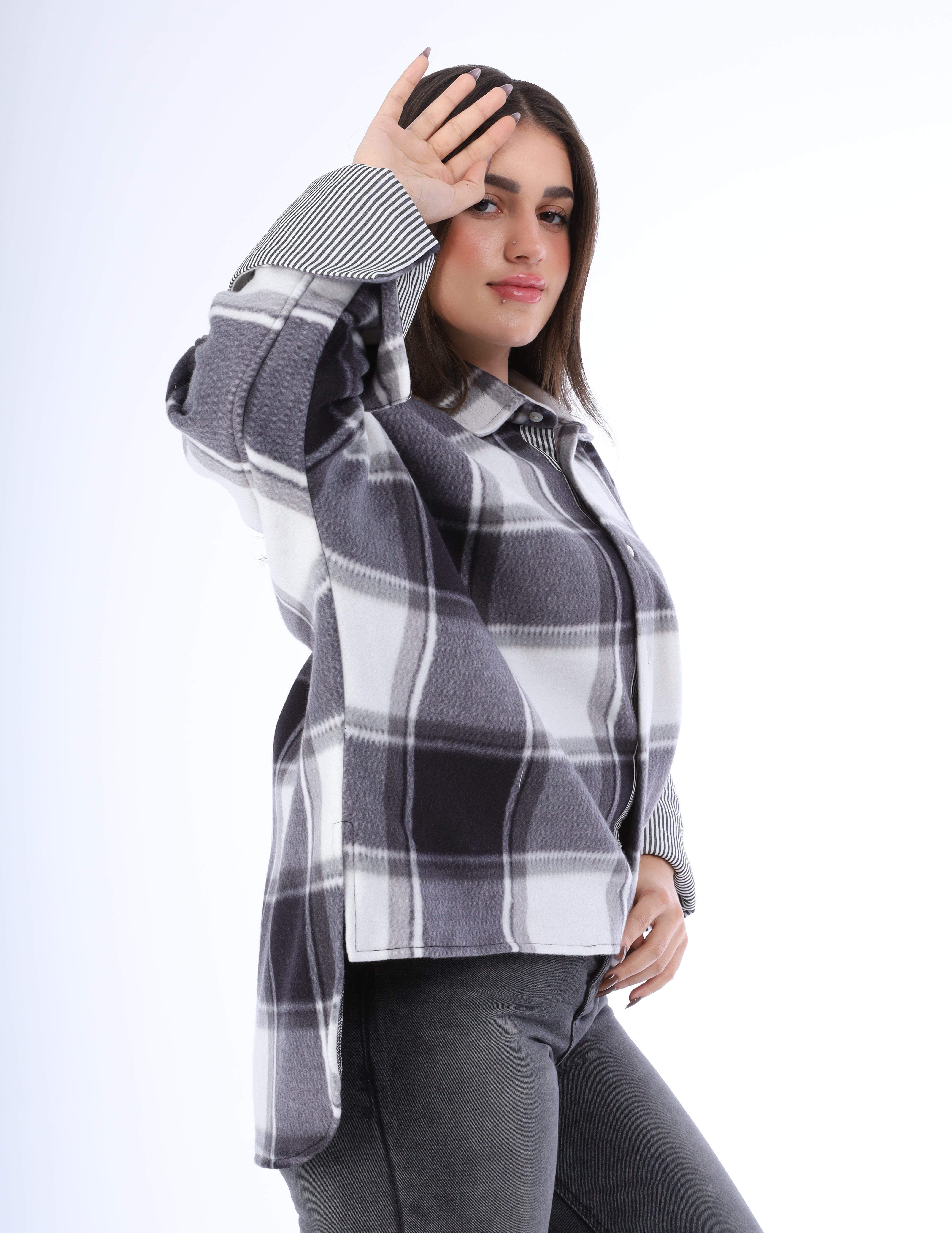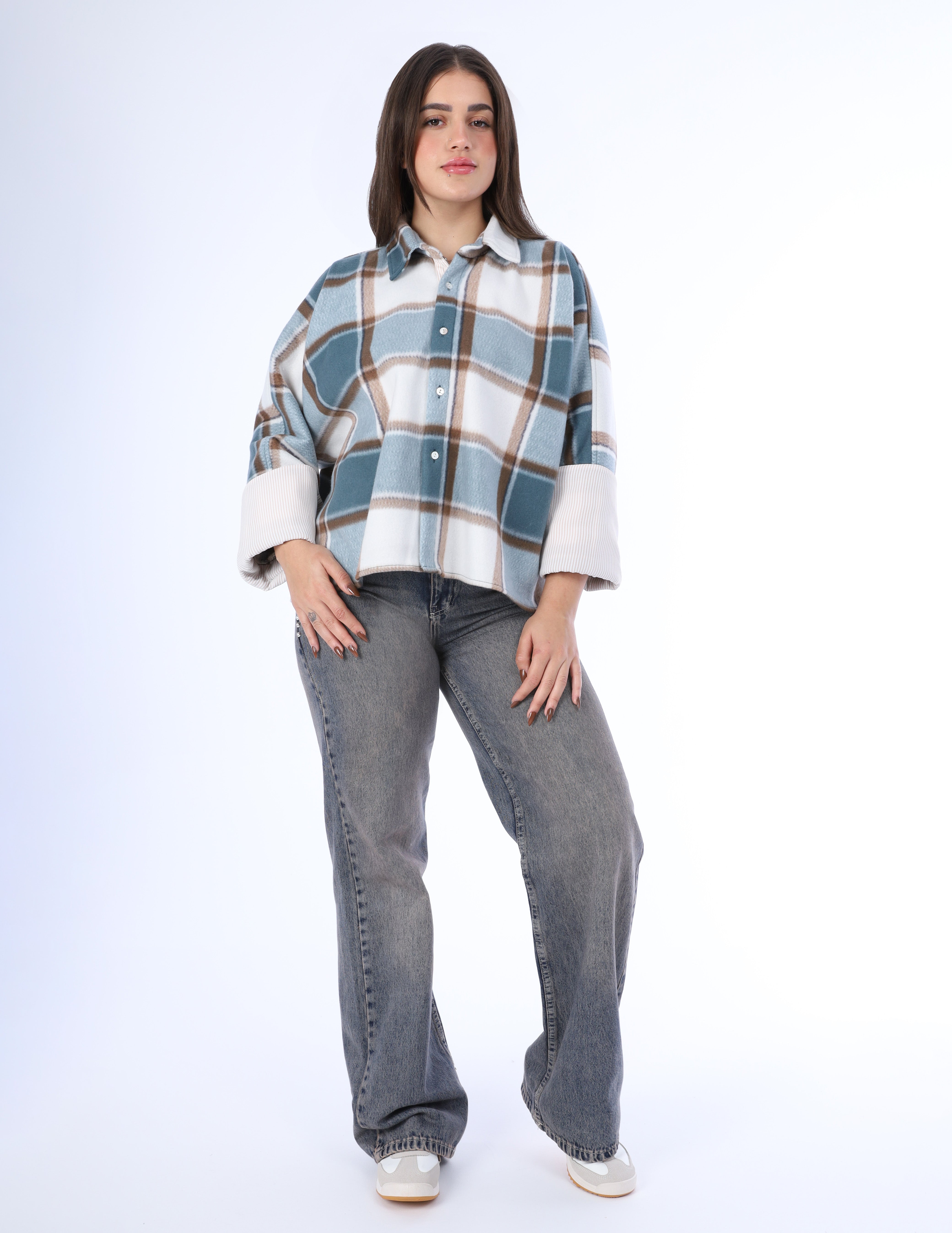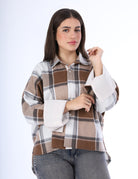 An oversized plaid shirt designed for a relaxed, effortless look