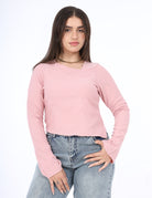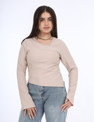 A stylish ribbed top featuring a modern asymmetrical cut that adds a unique touch.