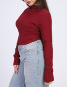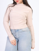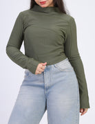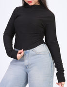 Stylish turtleneck top with an asymmetric cut for a modern, chic look. Perfect for layering or standout outfits