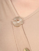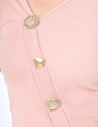 Stylish asymmetric top featuring unique button detailing along the sleeve