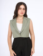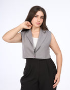 Sleeveless blazer-style vest, featuring a sharp tailored silhouette that adds elegant to any outfit , it’s perfect for both office looks and casual chic days