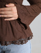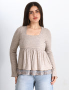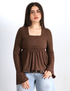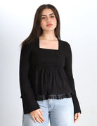 Chic blouse featuring a square neckline for a soft, feminine look.