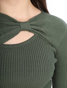 Twist front ribbed knit top designed with a soft stretchy fabric and a trendy cut-out detail
