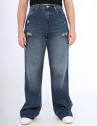 High waisted jeans made from thick denim for a relaxed