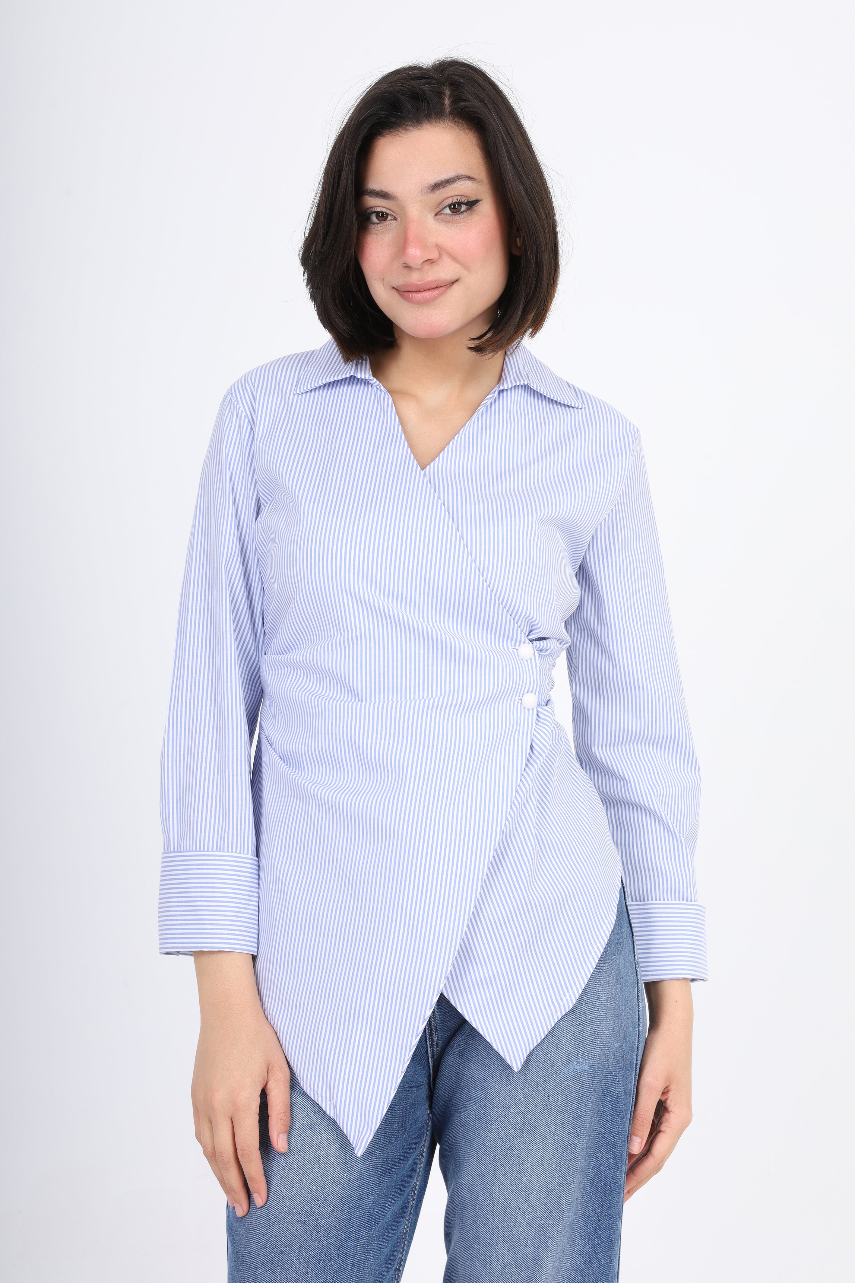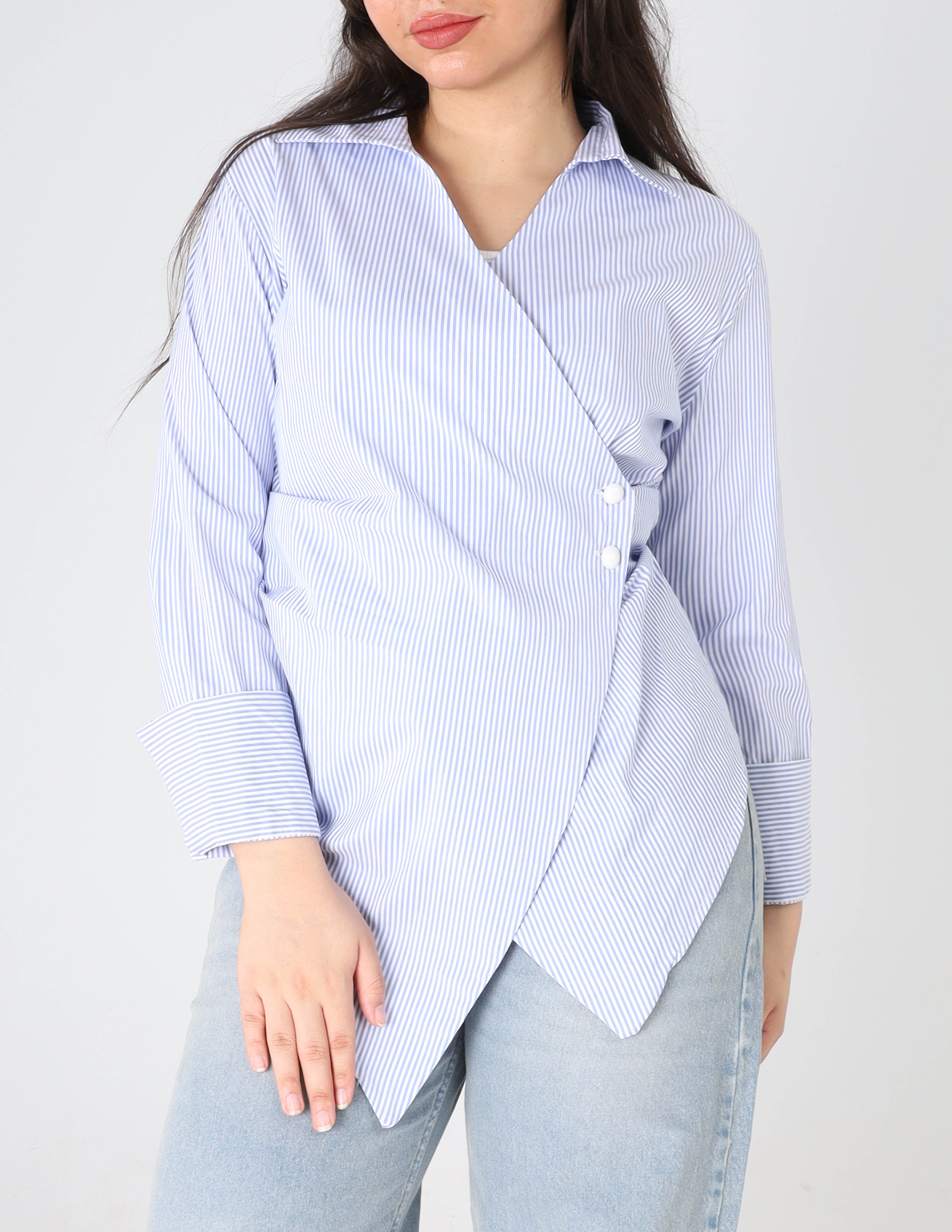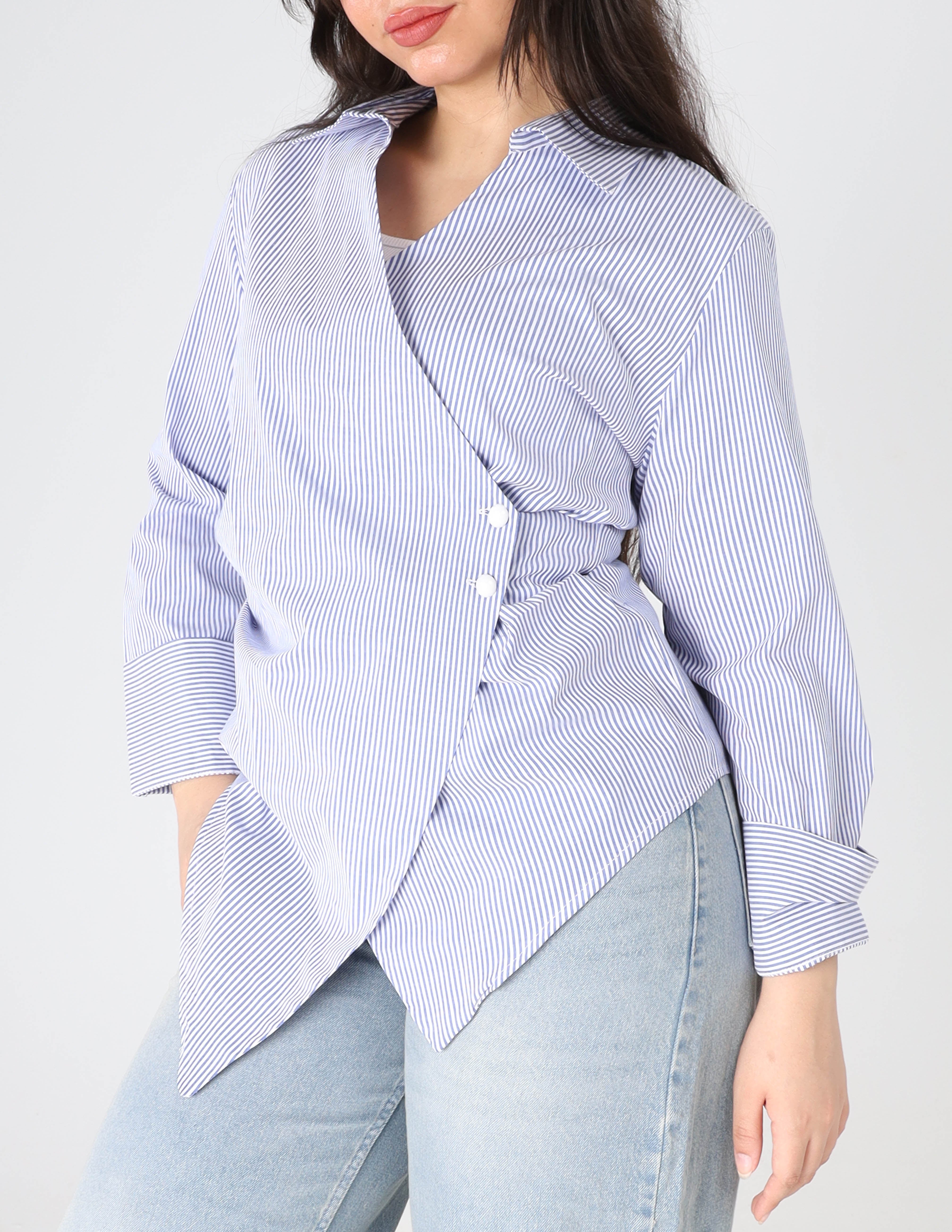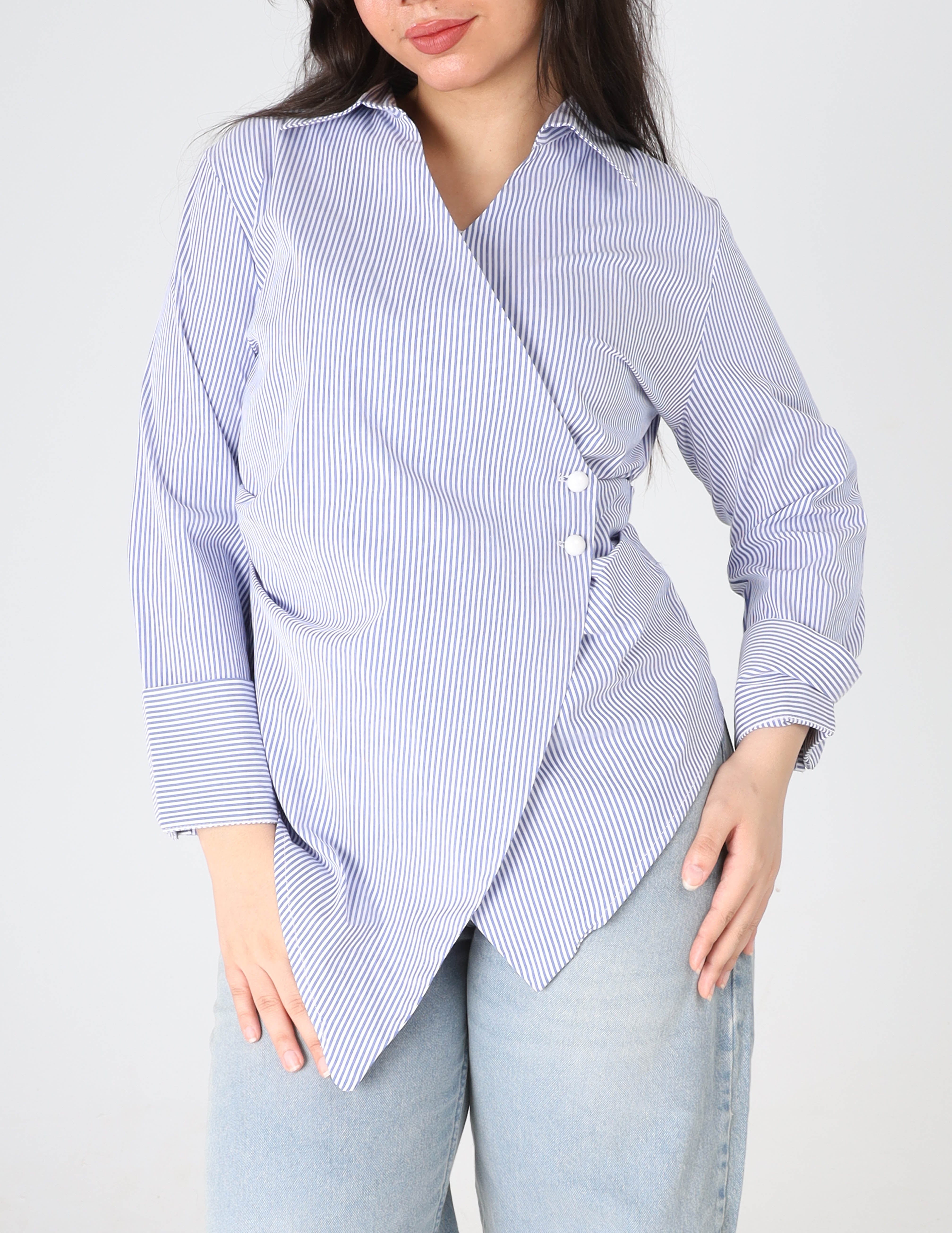 Asymmetrical Striped Wrap Blouse s1518513/1
