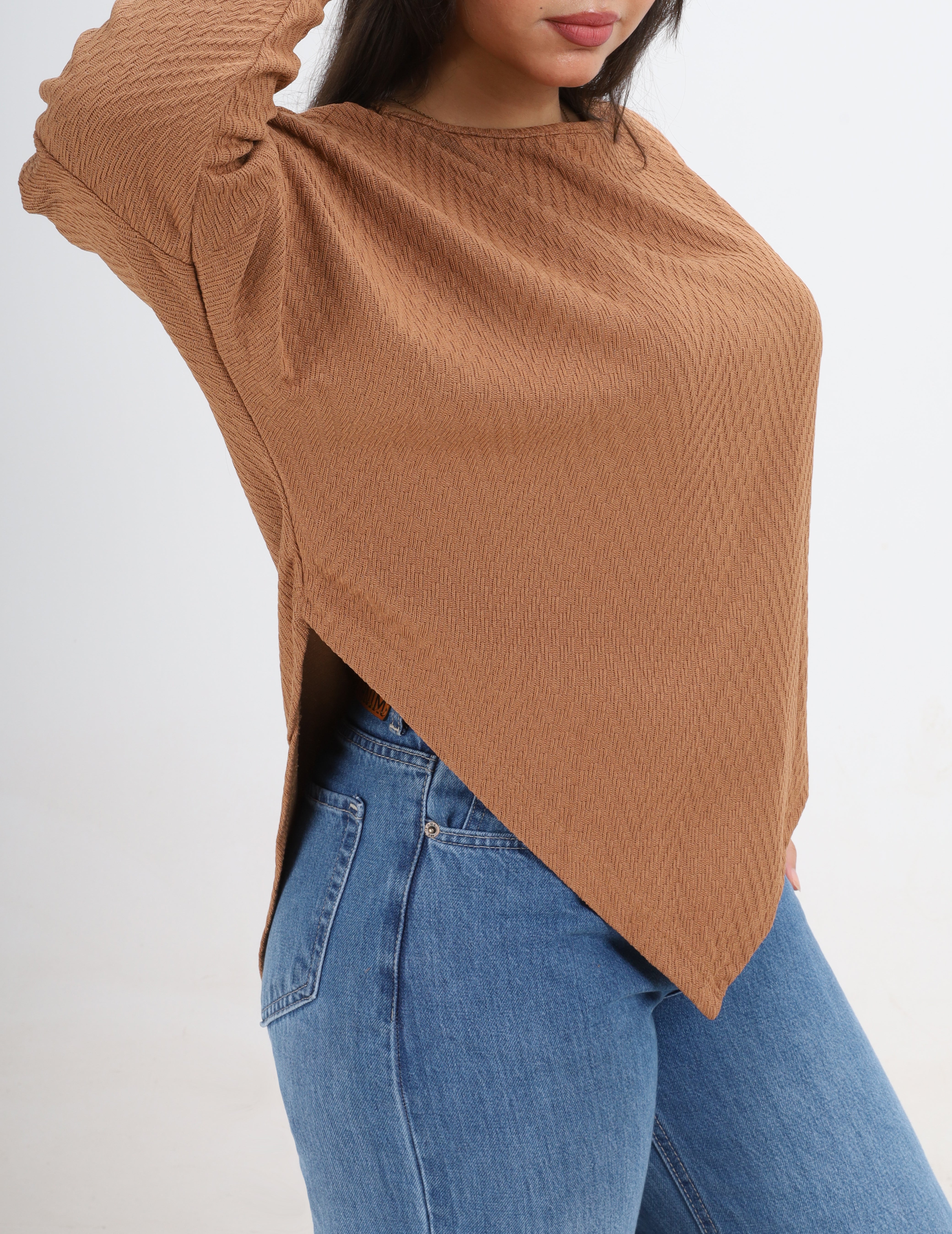 Asymmetrical Ribbed Long Sleeve Top w169250002