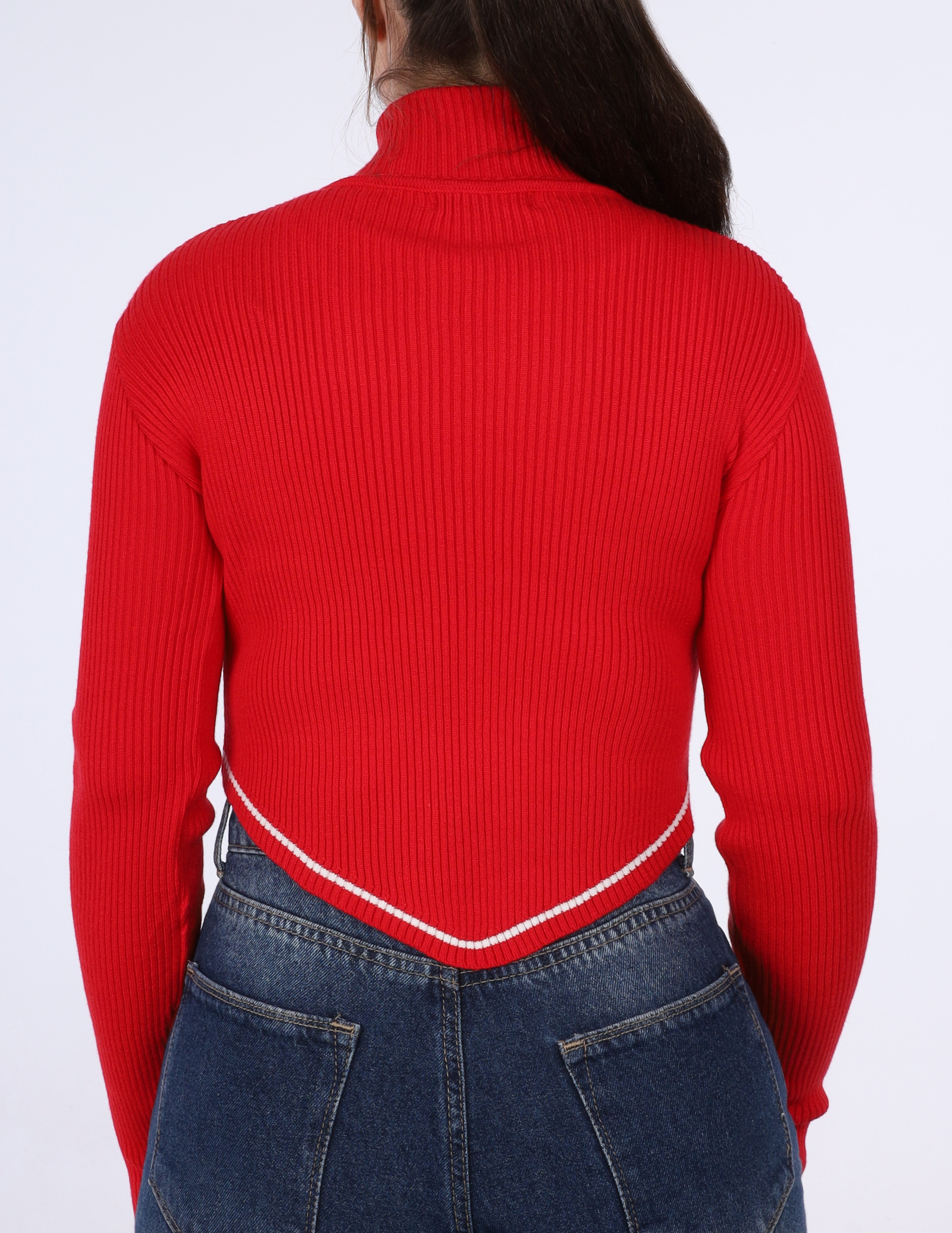 Asymmetrical Ribbed Knit Turtleneck Crop Top w16322