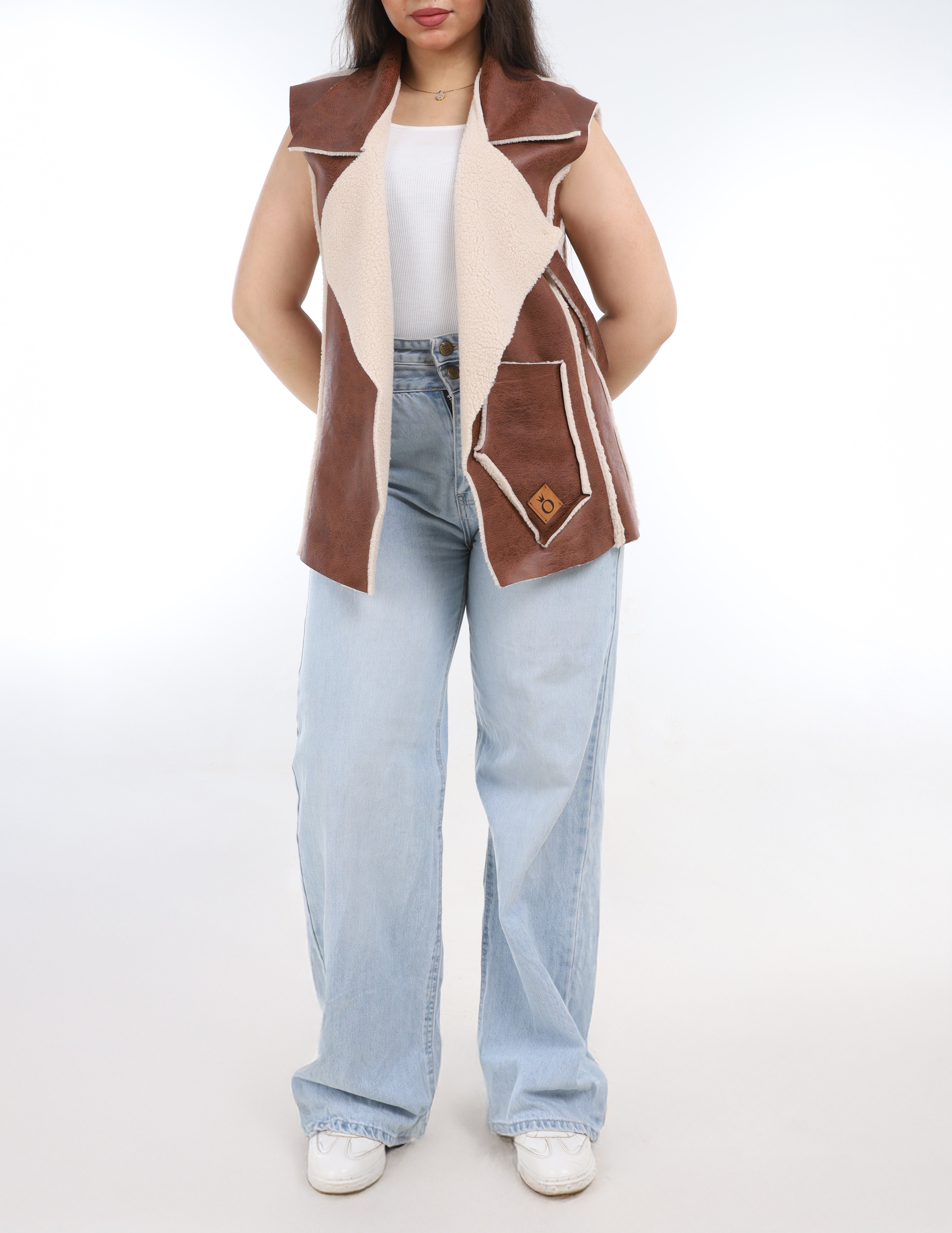Faux Leather Sleeveless Fur-Lined Jacket w1627222
