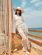 Women's mesh lace long sleeve Peach blouse.