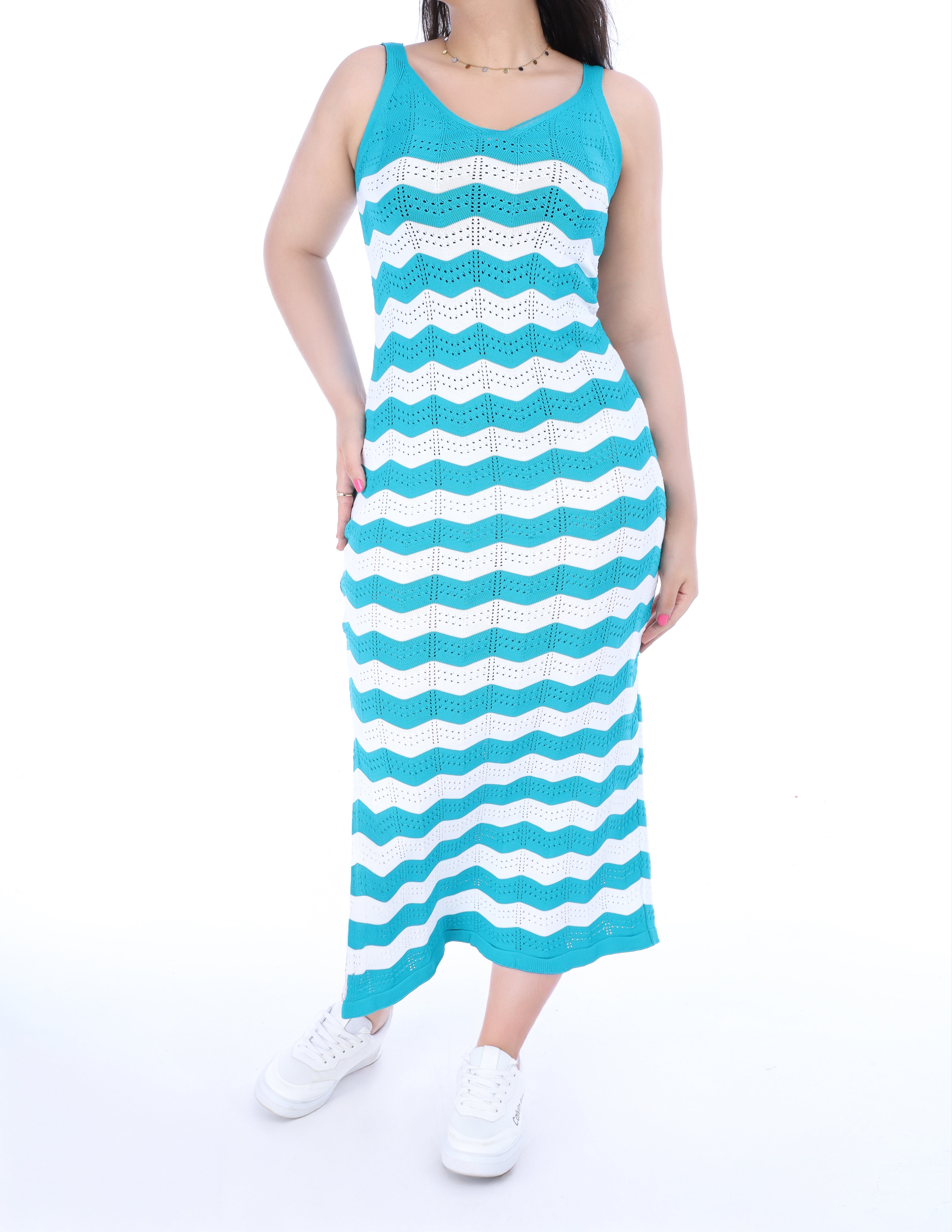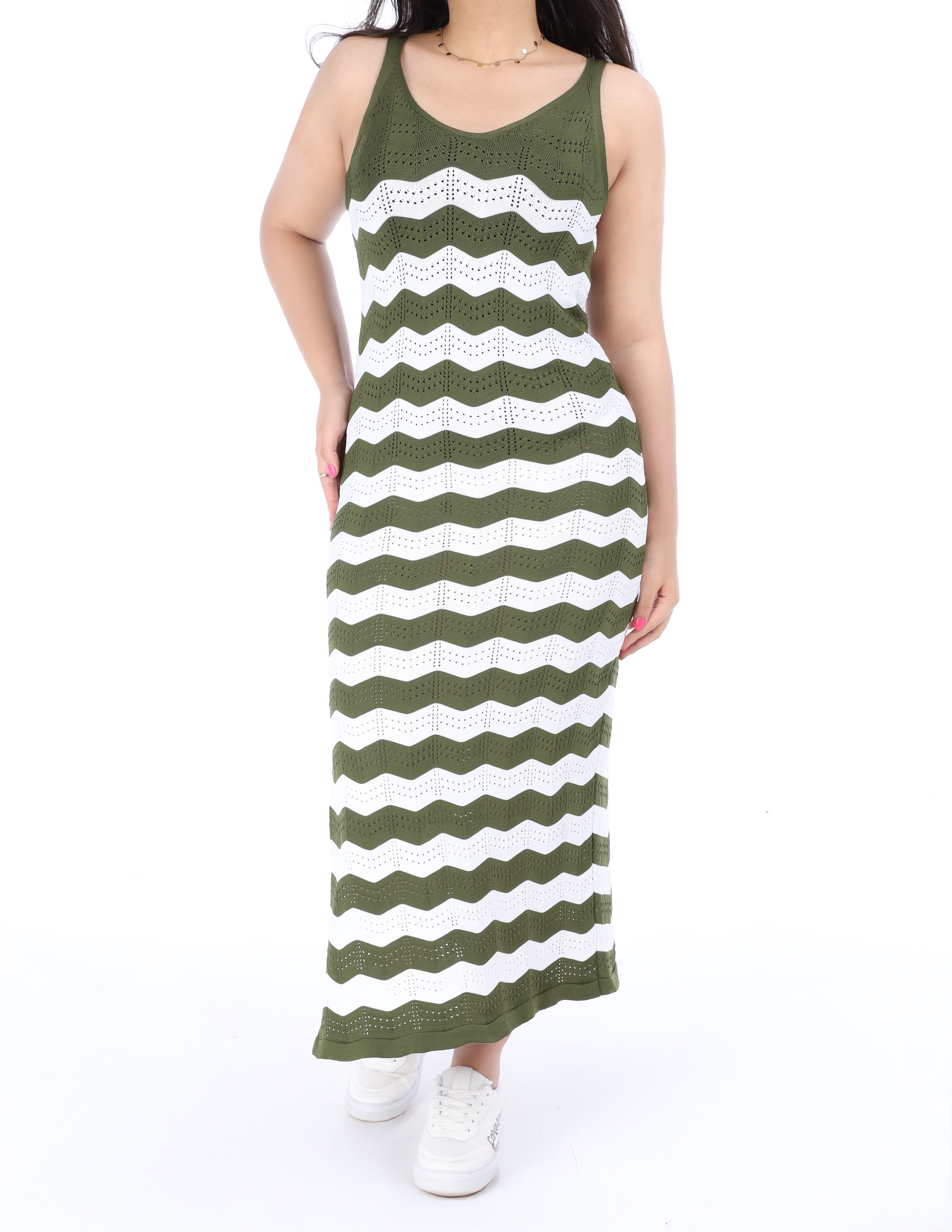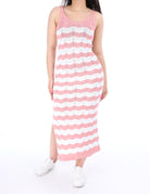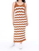 Designed with bold zigzag crochet stripes ,this sleeveless midi dress is the definition of summer chic.