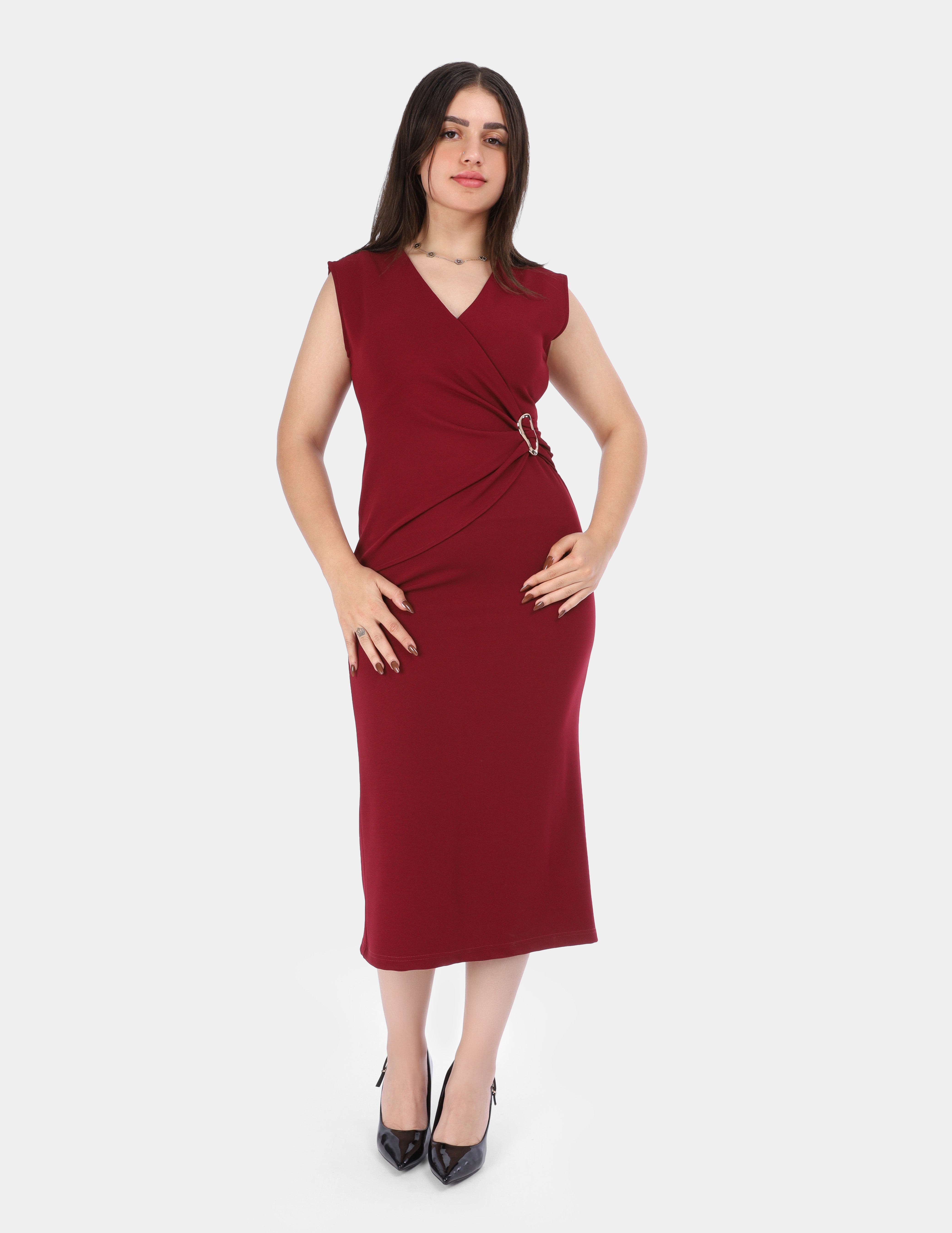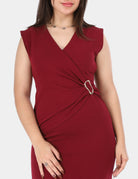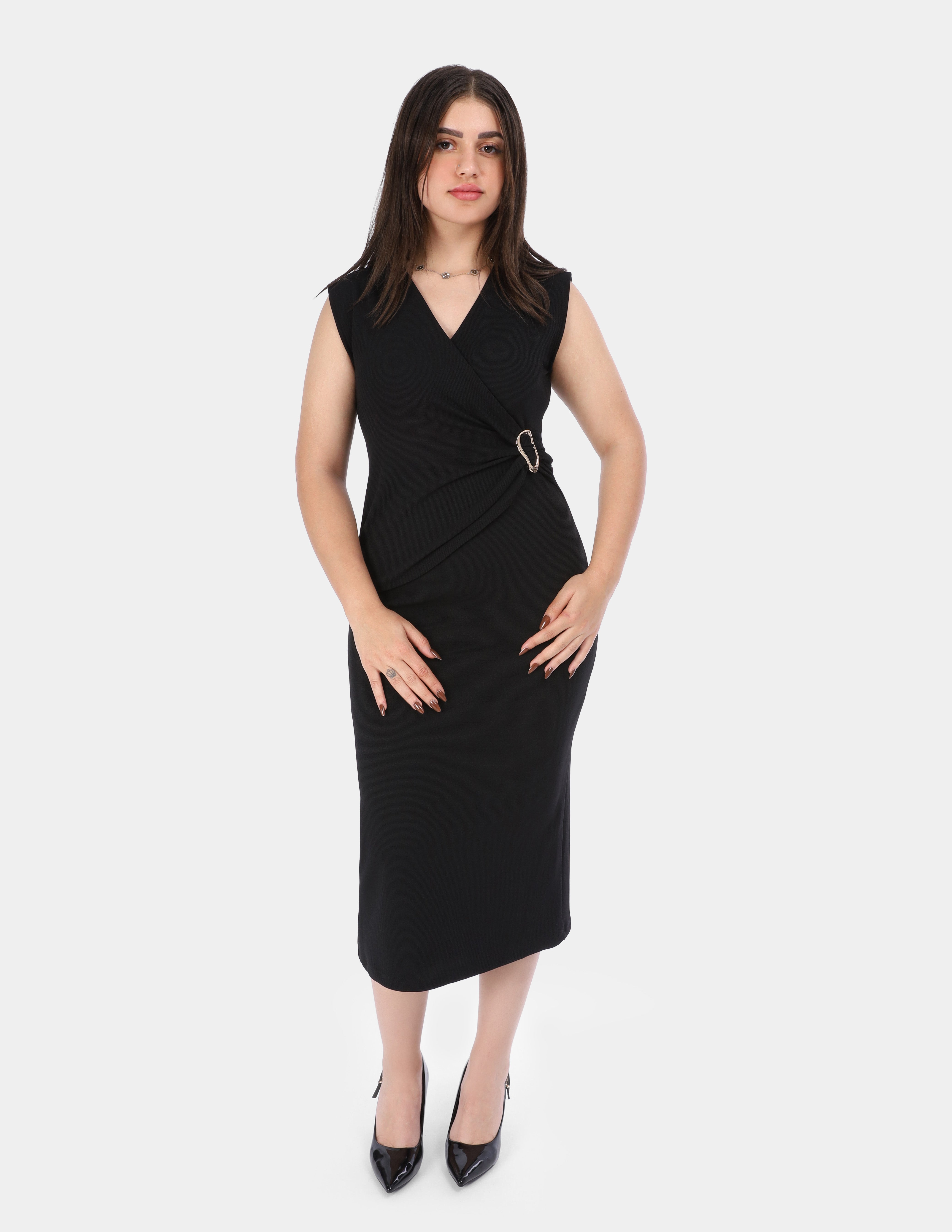 Chic sleeveless wrap dress featuring a ring waist detail for a flattering, elegant silhouette. Perfect for both casual and evening looks.