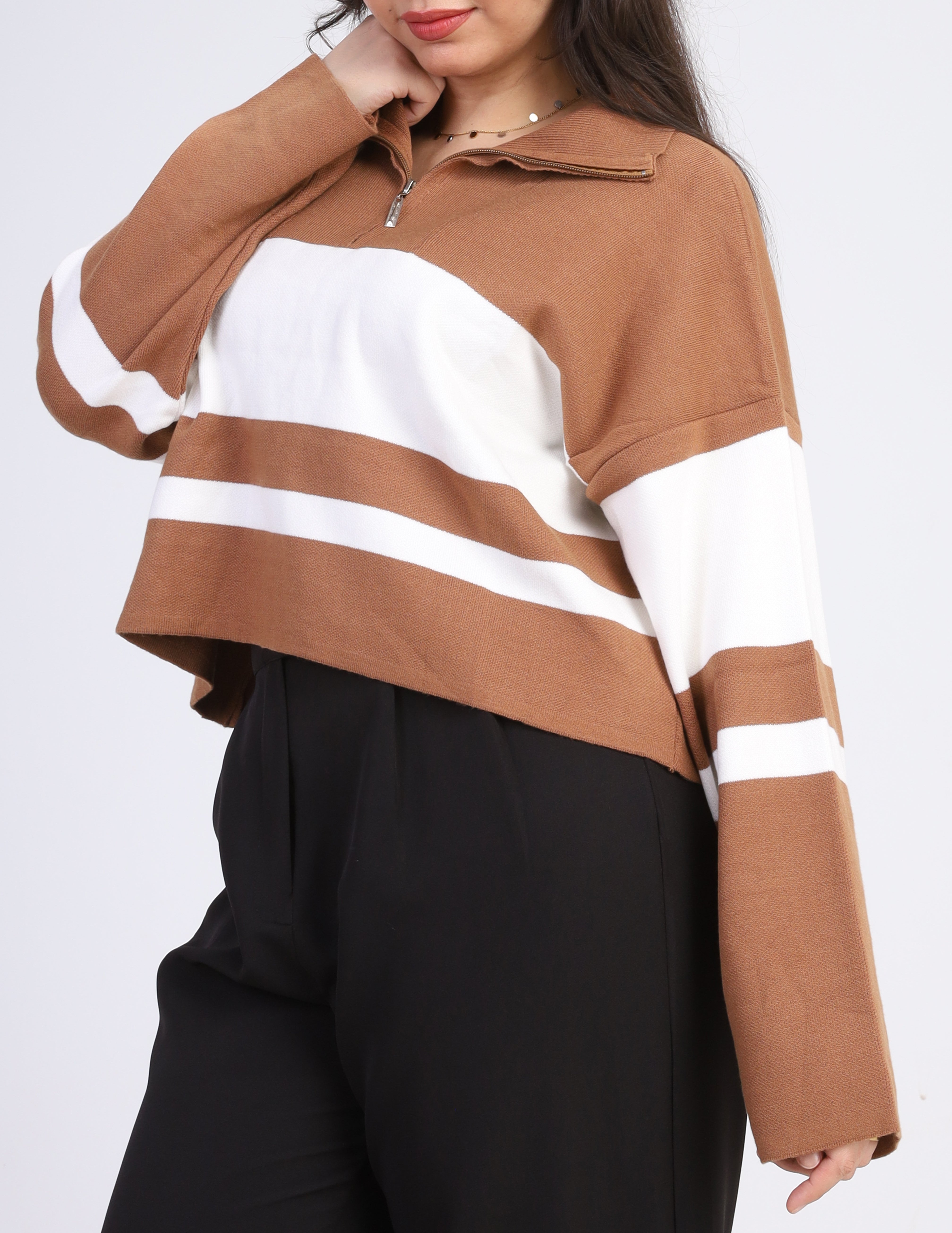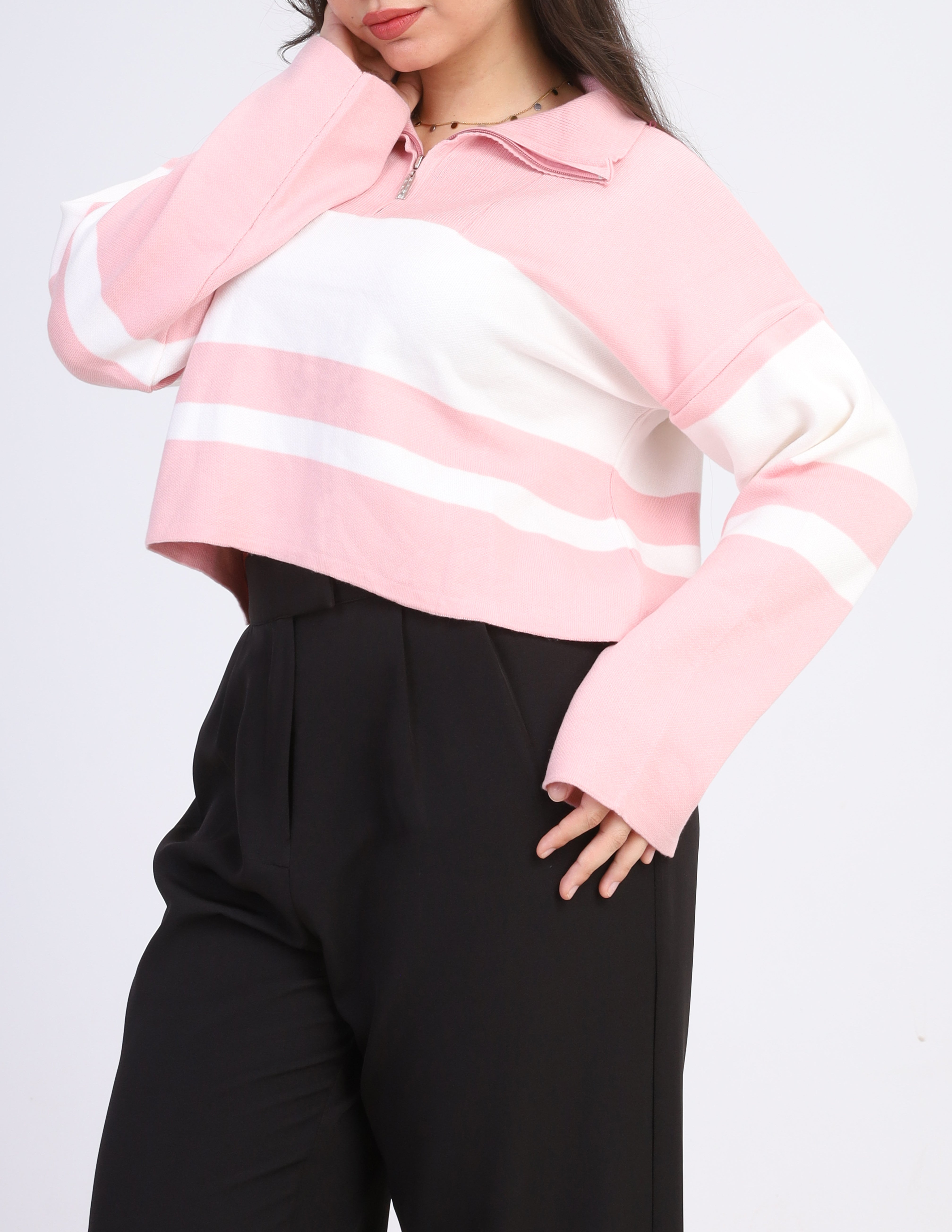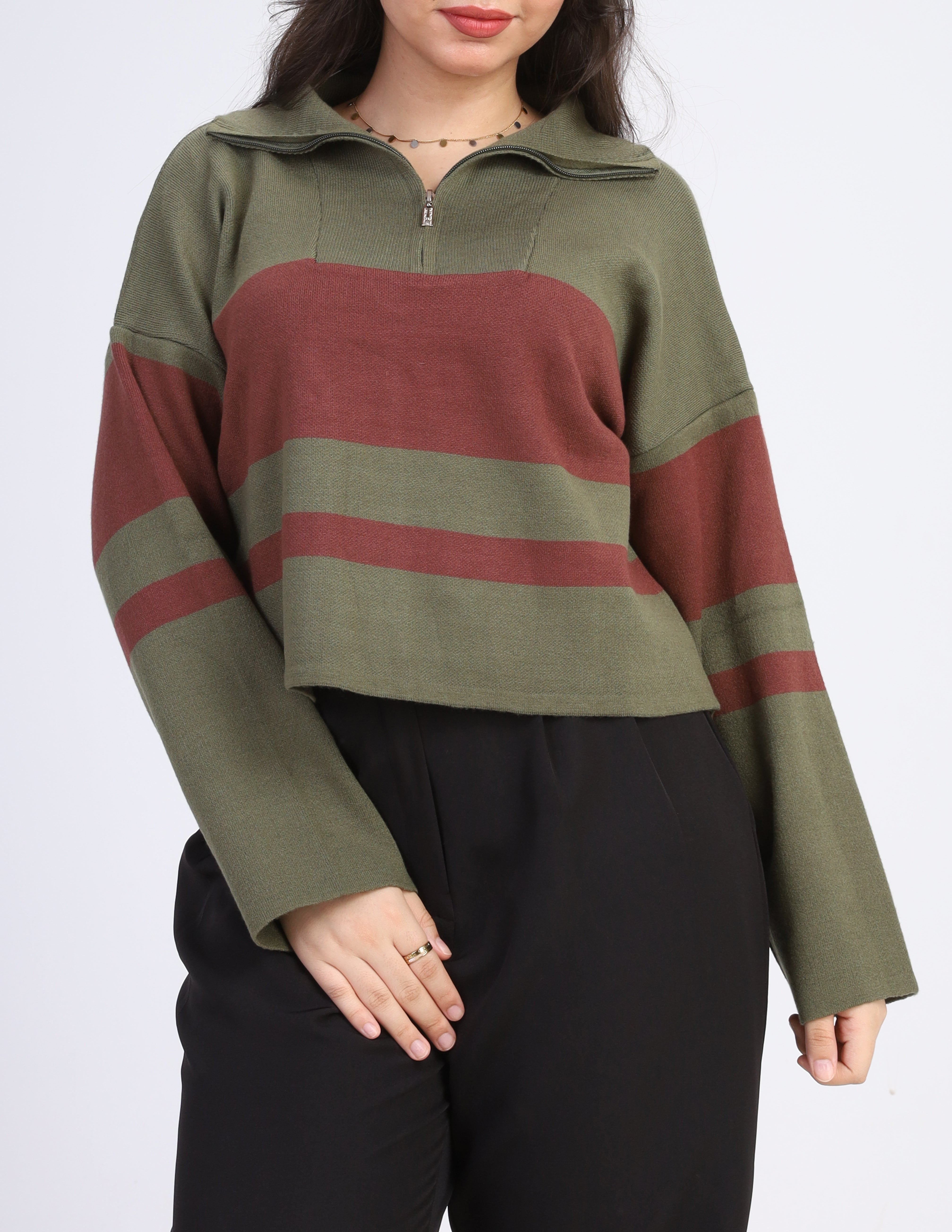 Half-zip pullover crafted from soft knit fabric, designed with a high neckline.