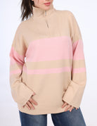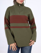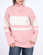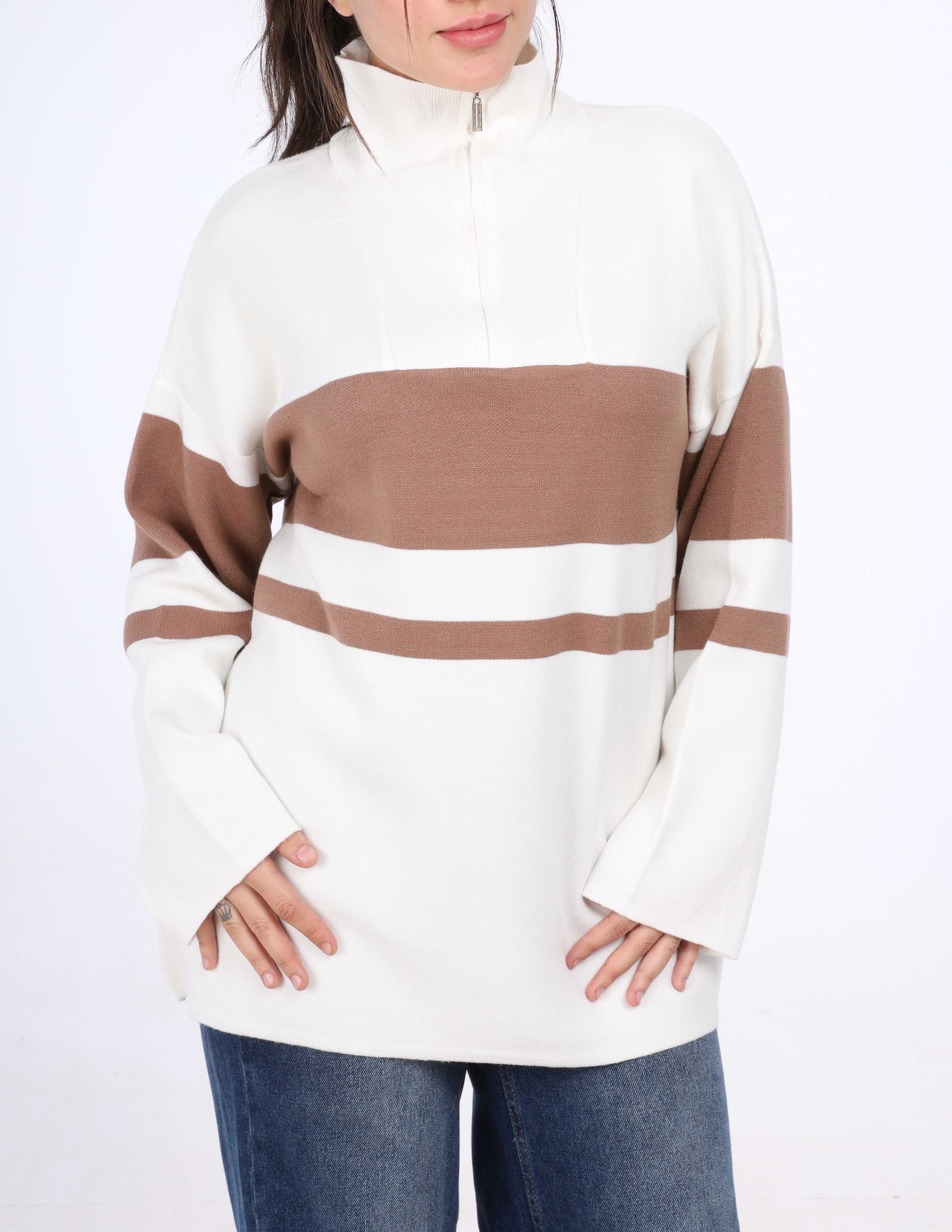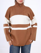 Soft striped knit pullover with a cozy feel and relaxed fit , perfect for everyday winter style.