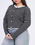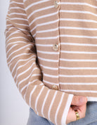 Soft striped cardigan with front buttons and a relaxed fit , perfect for layering and adding a cozy touch to your look