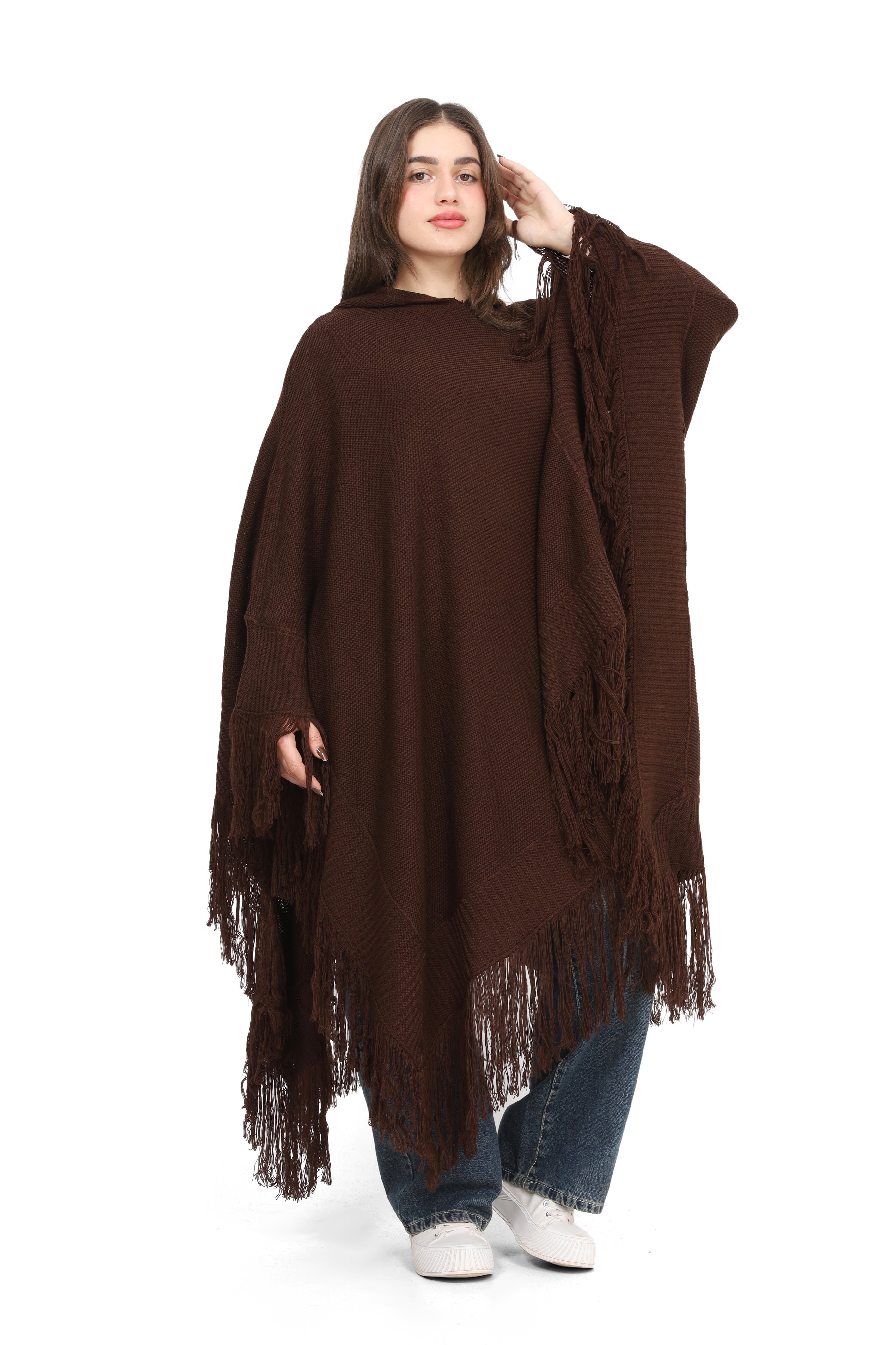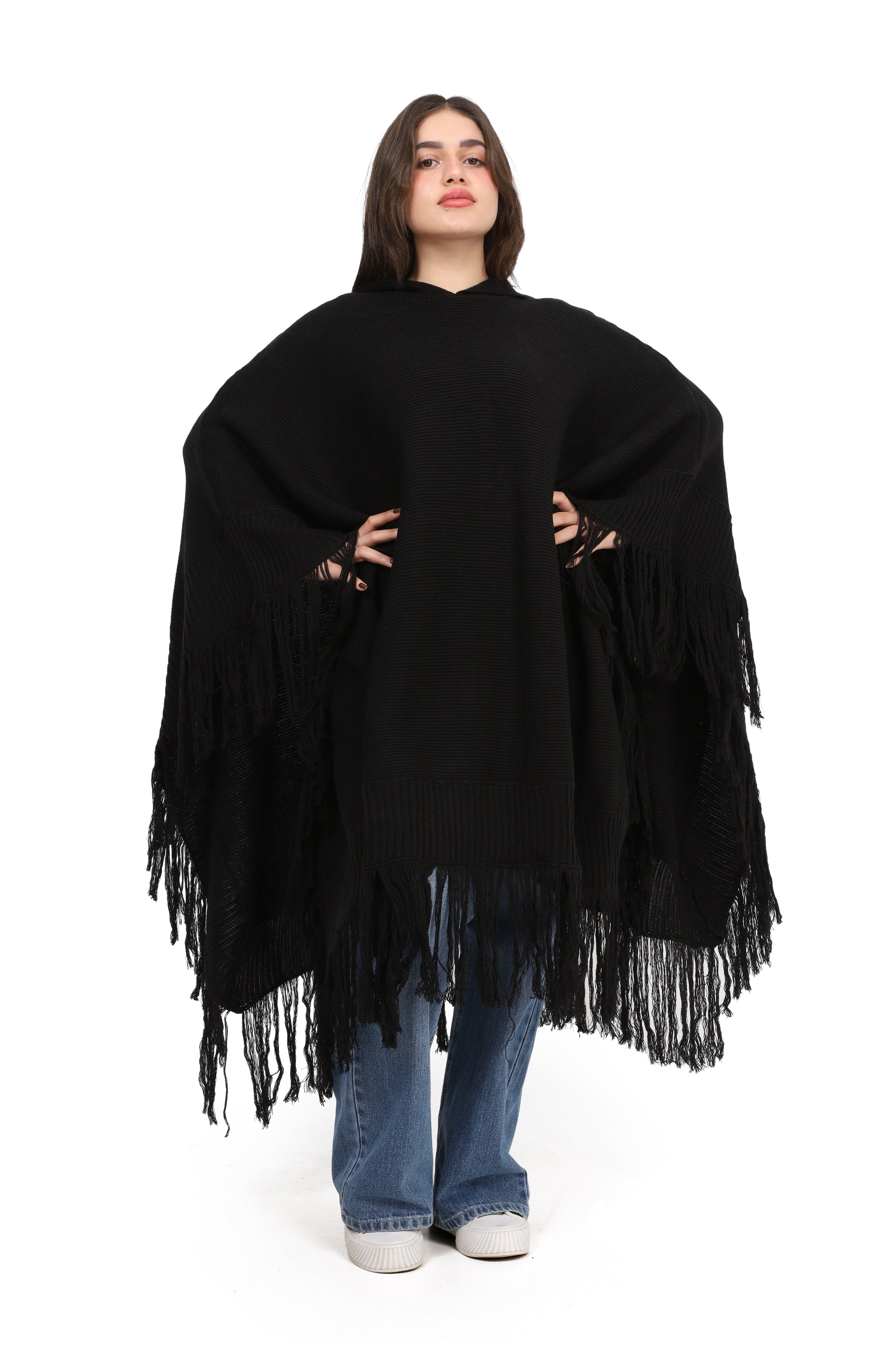 Knitted Fringe Poncho 172201029