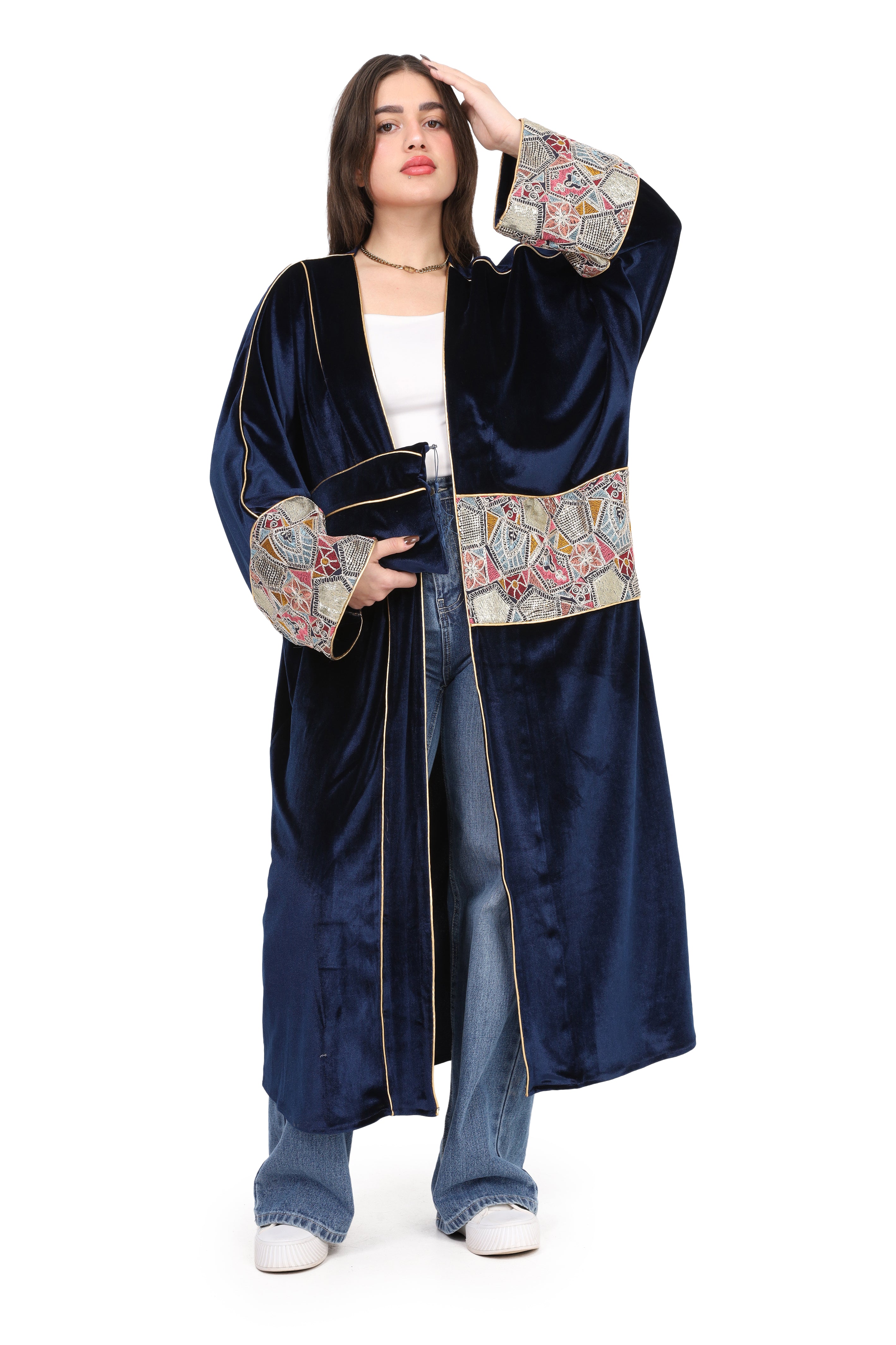 Velvet Kimono With Embroidered Patchwork Sleeves w17206039