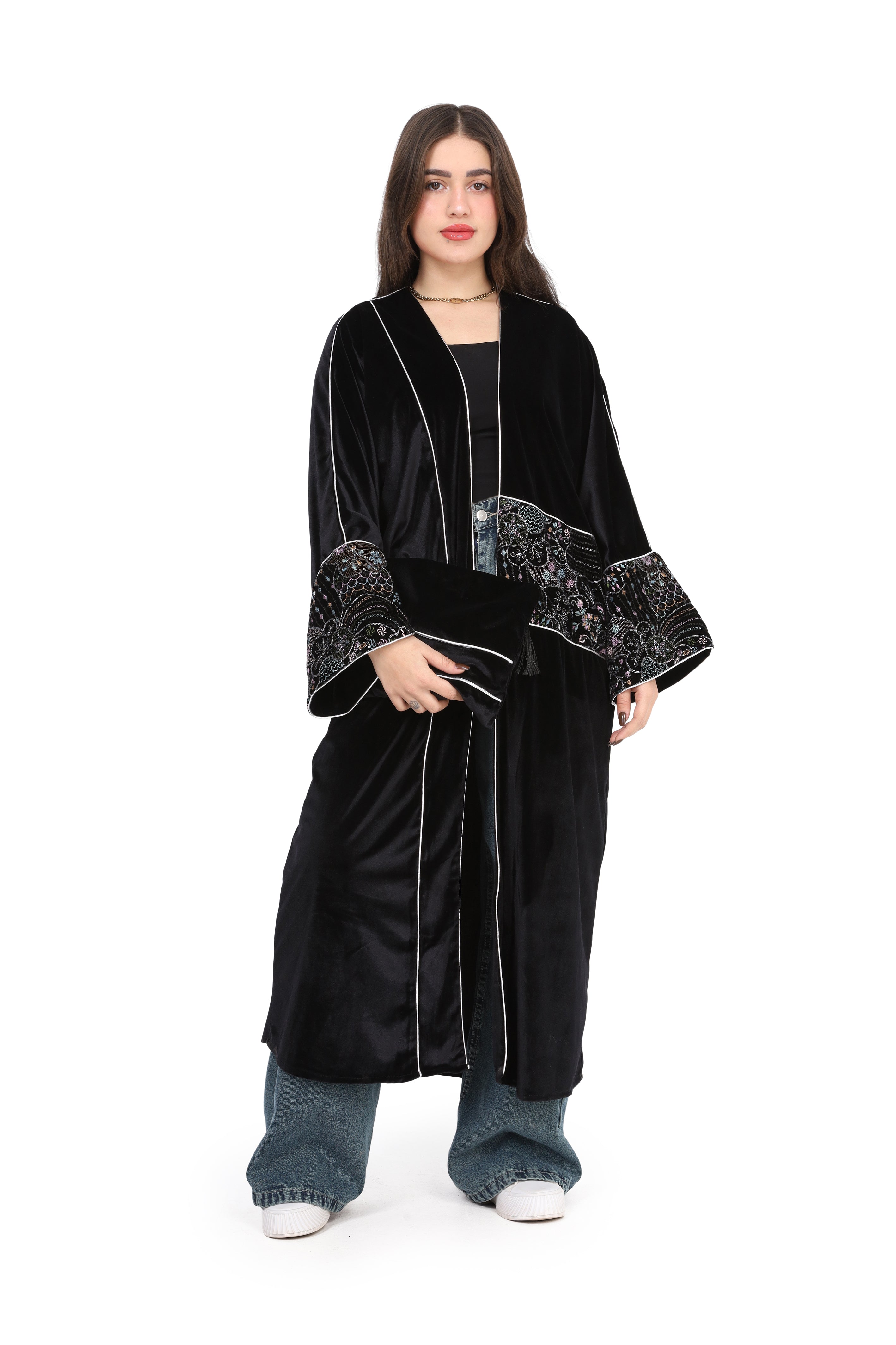 Velvet Kimono With Embroidered Patchwork Sleeves w17206043