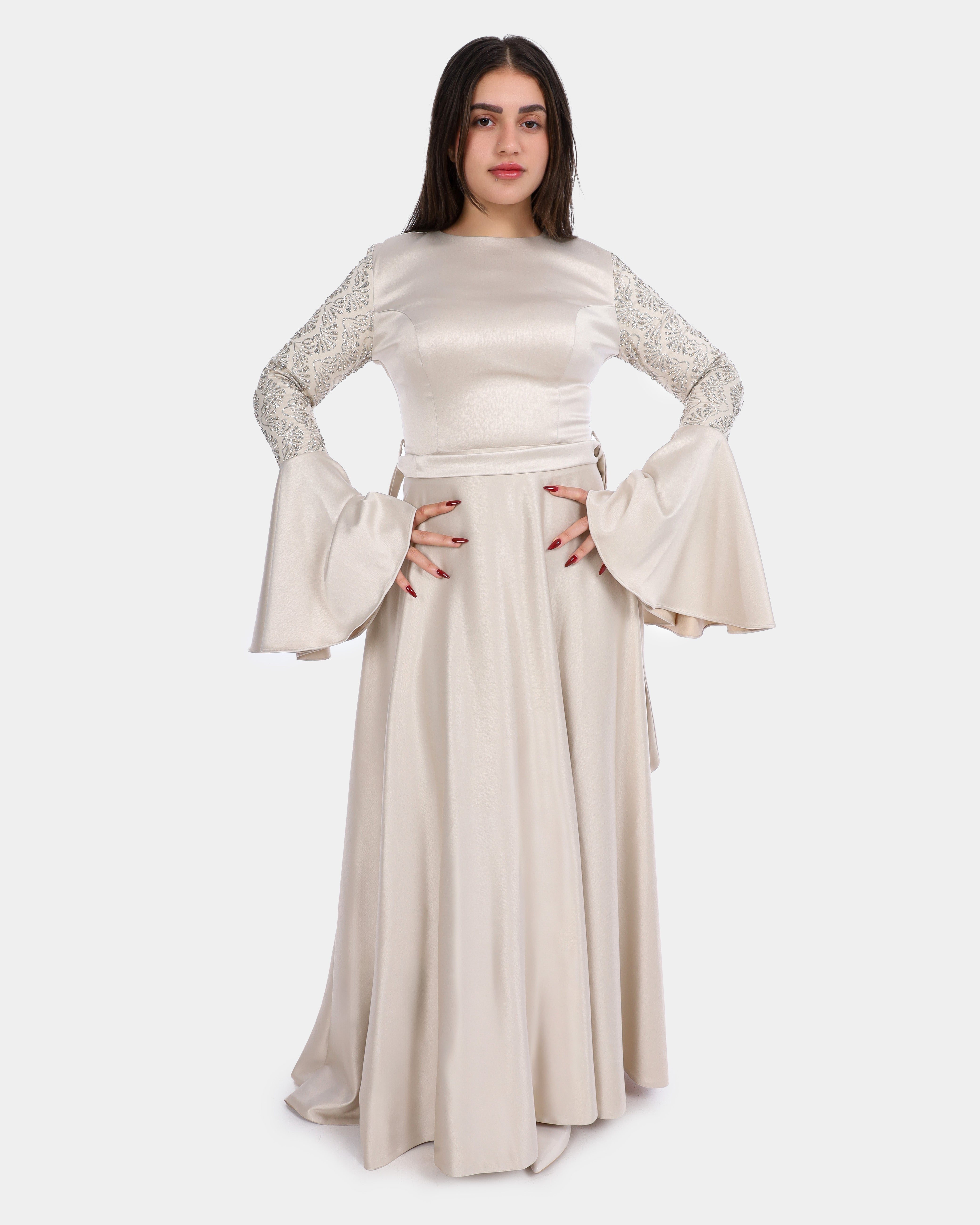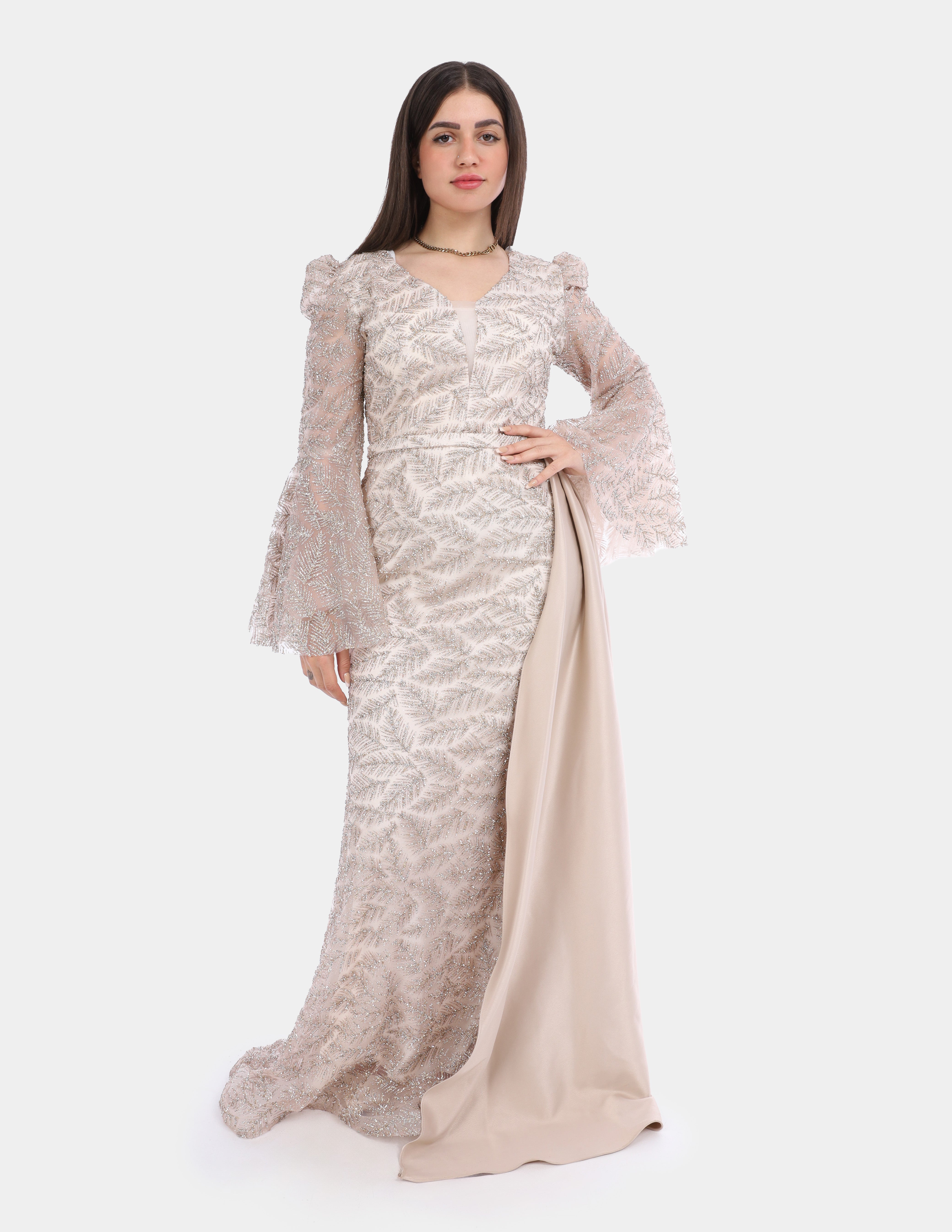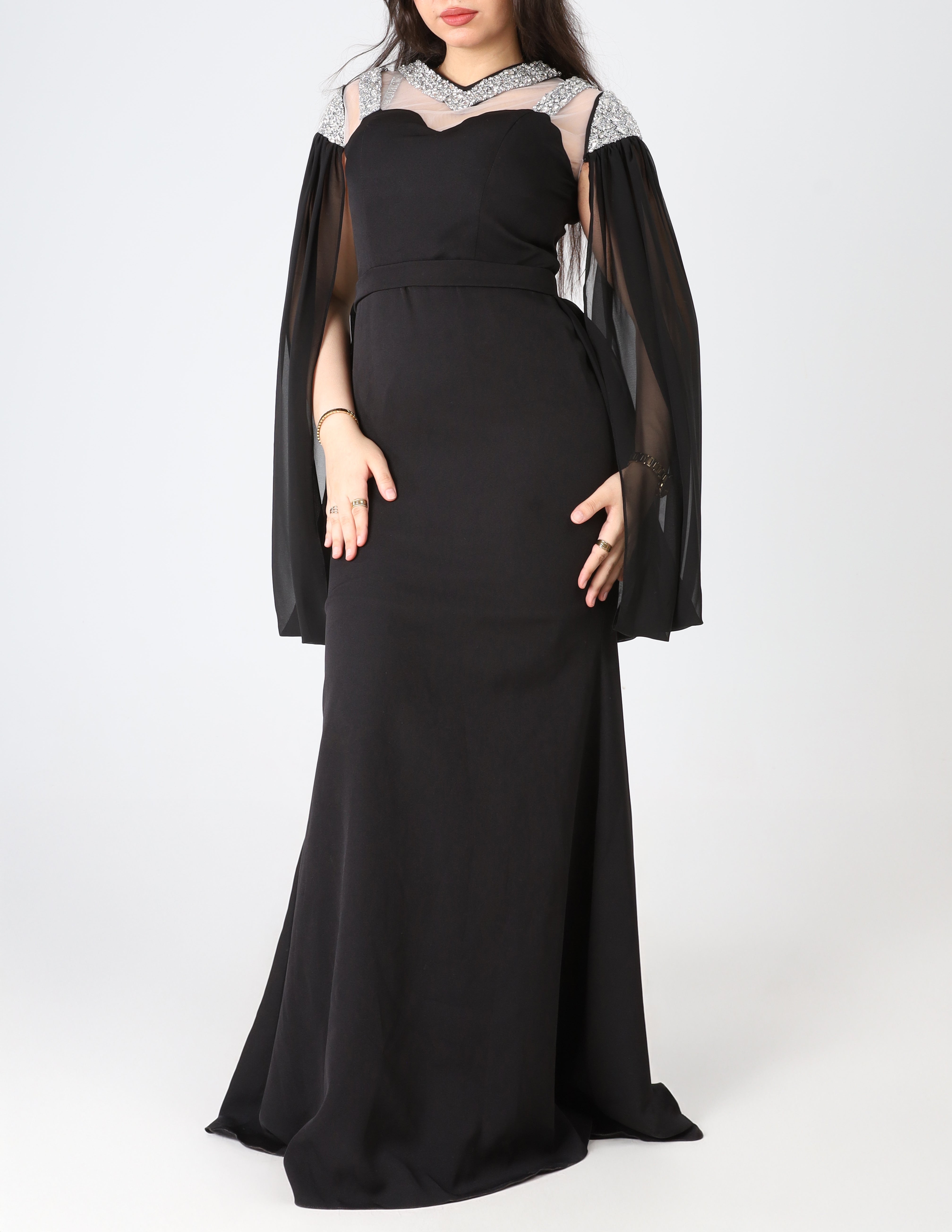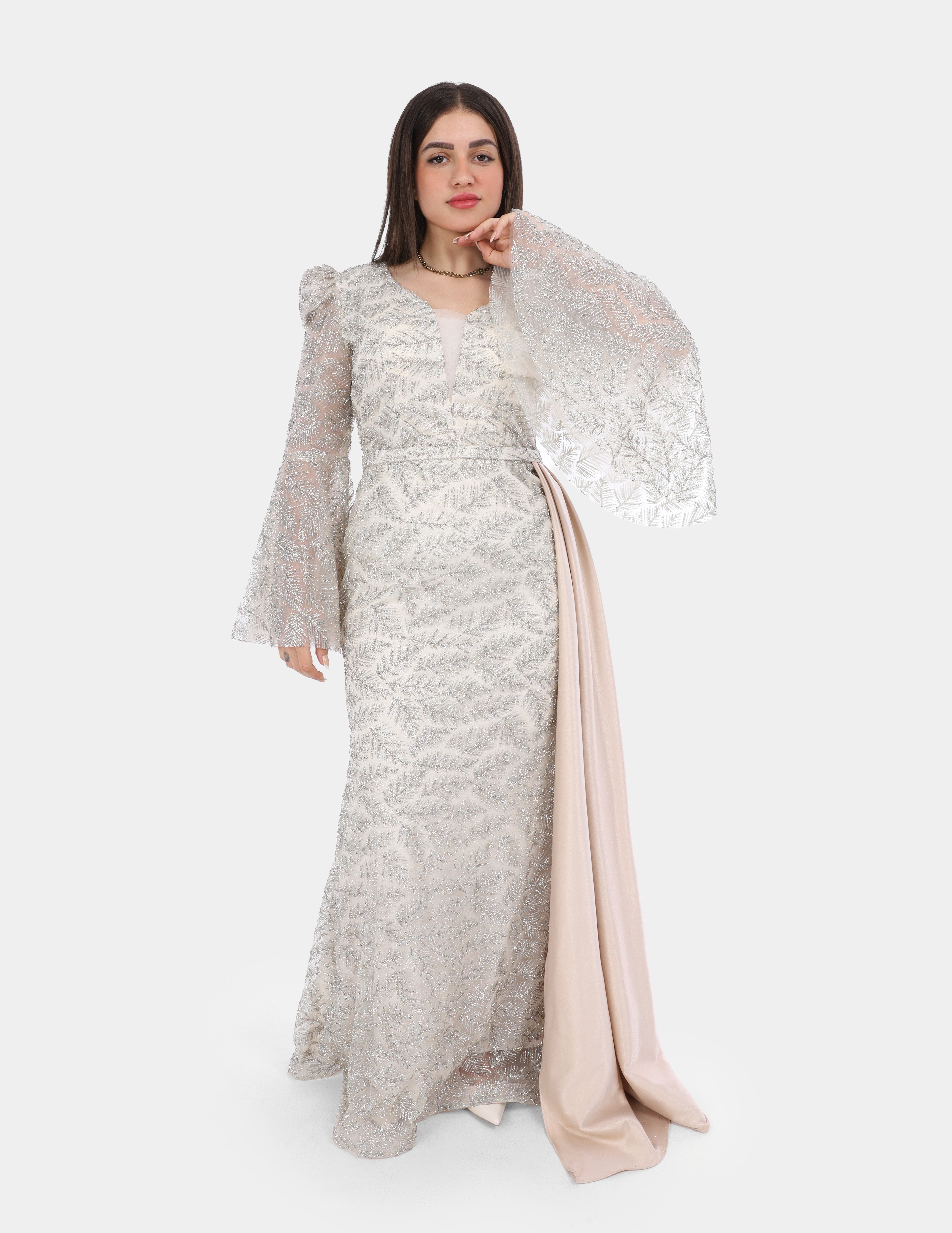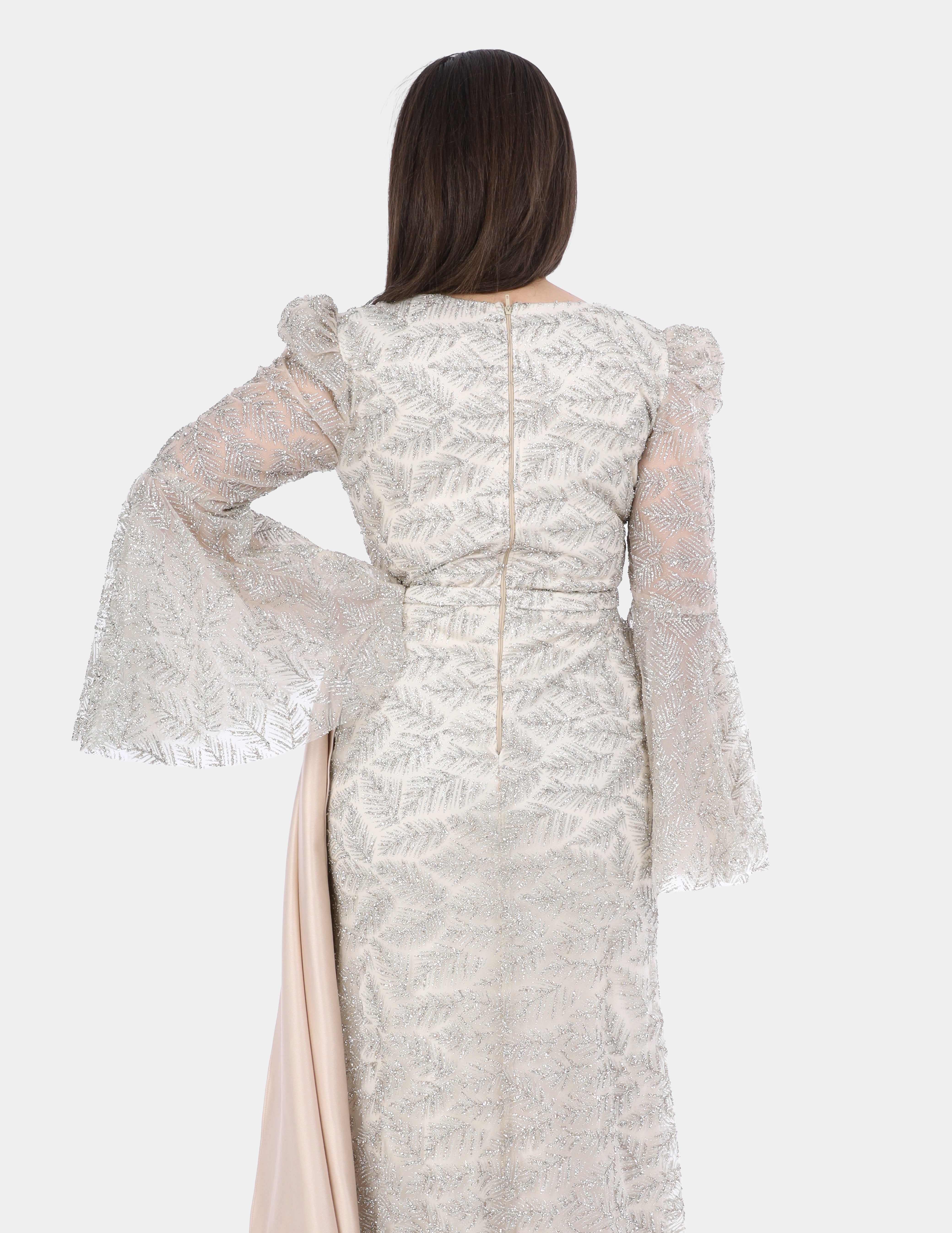 Elegant Evening Dress with Embroidered Sleeves w941700/3