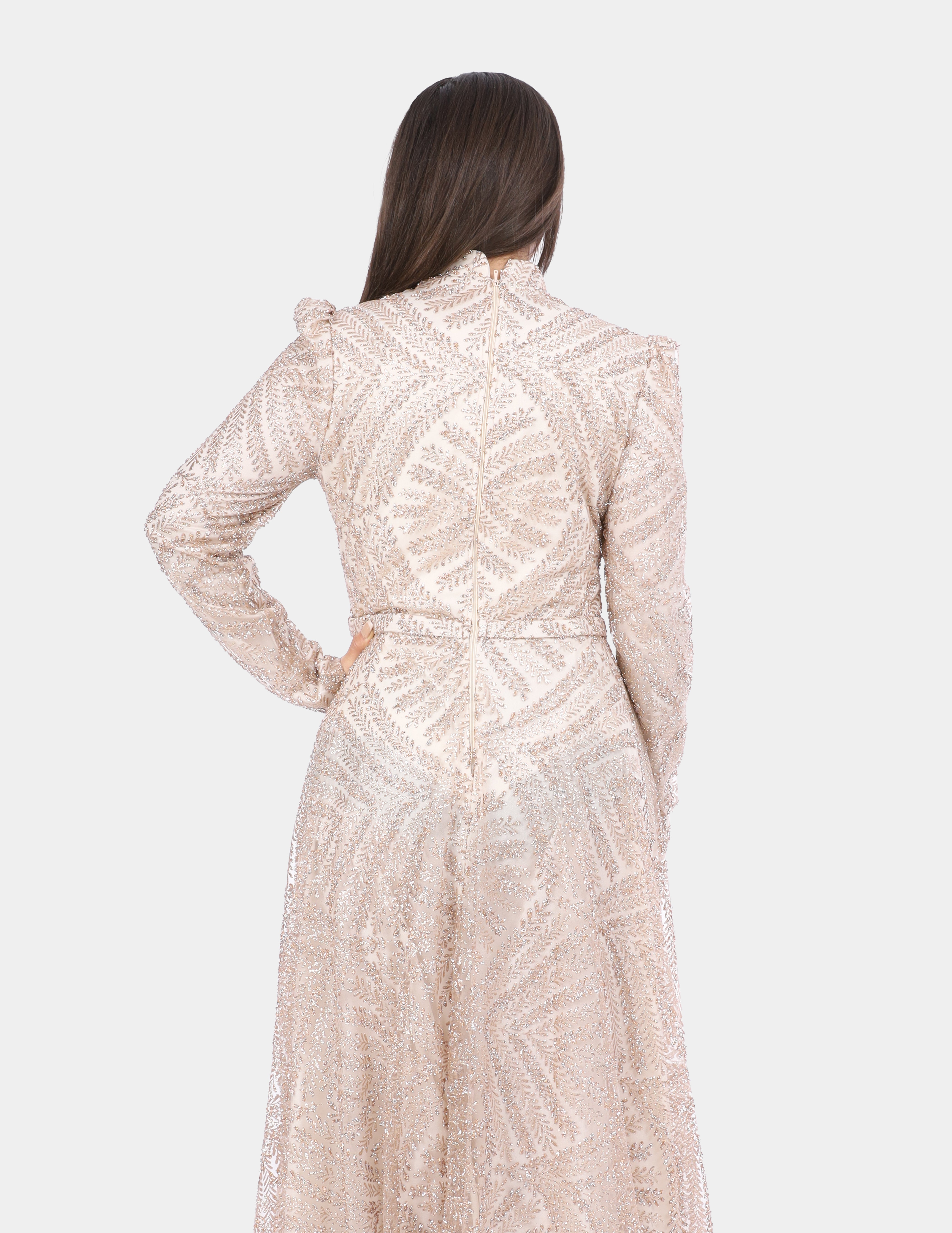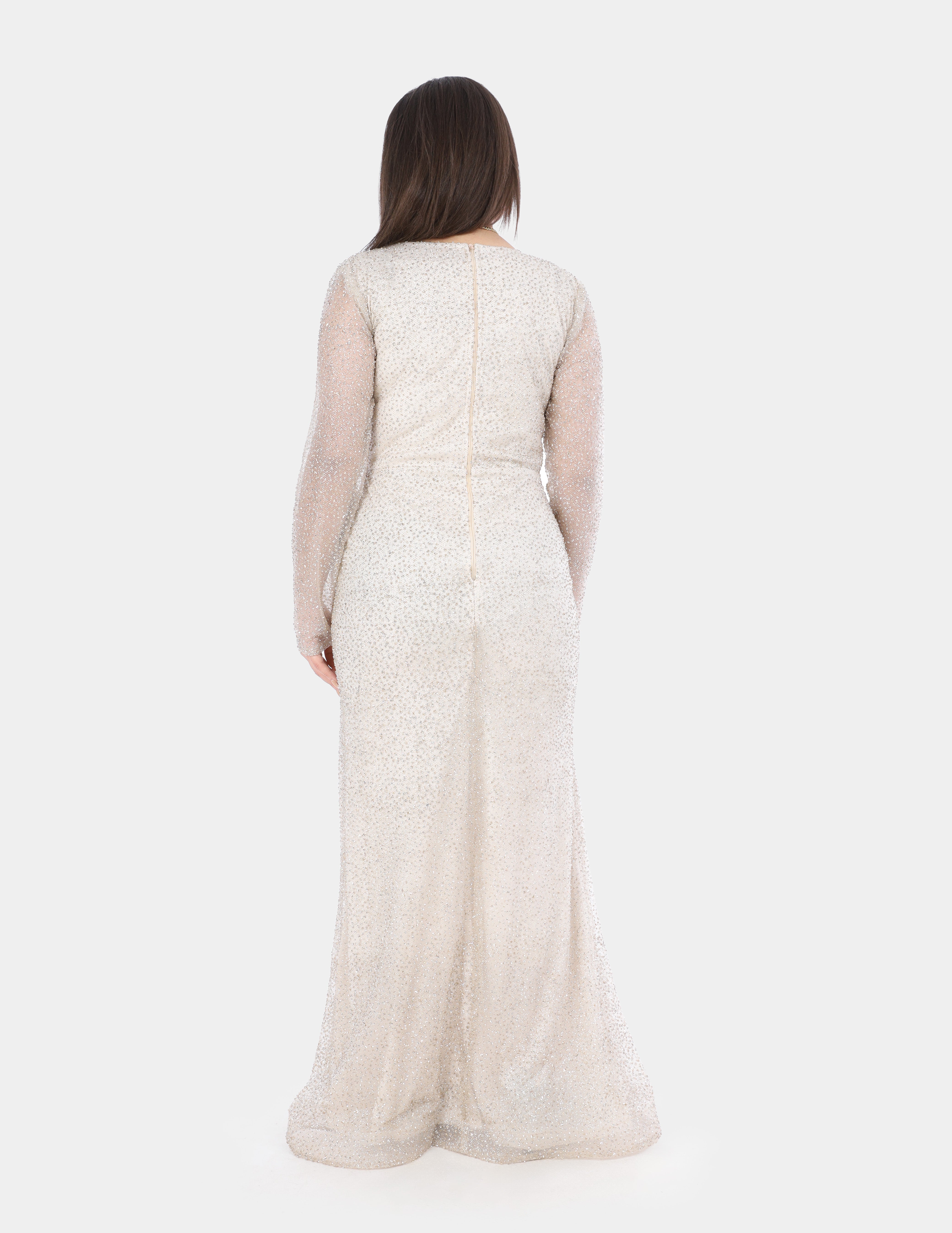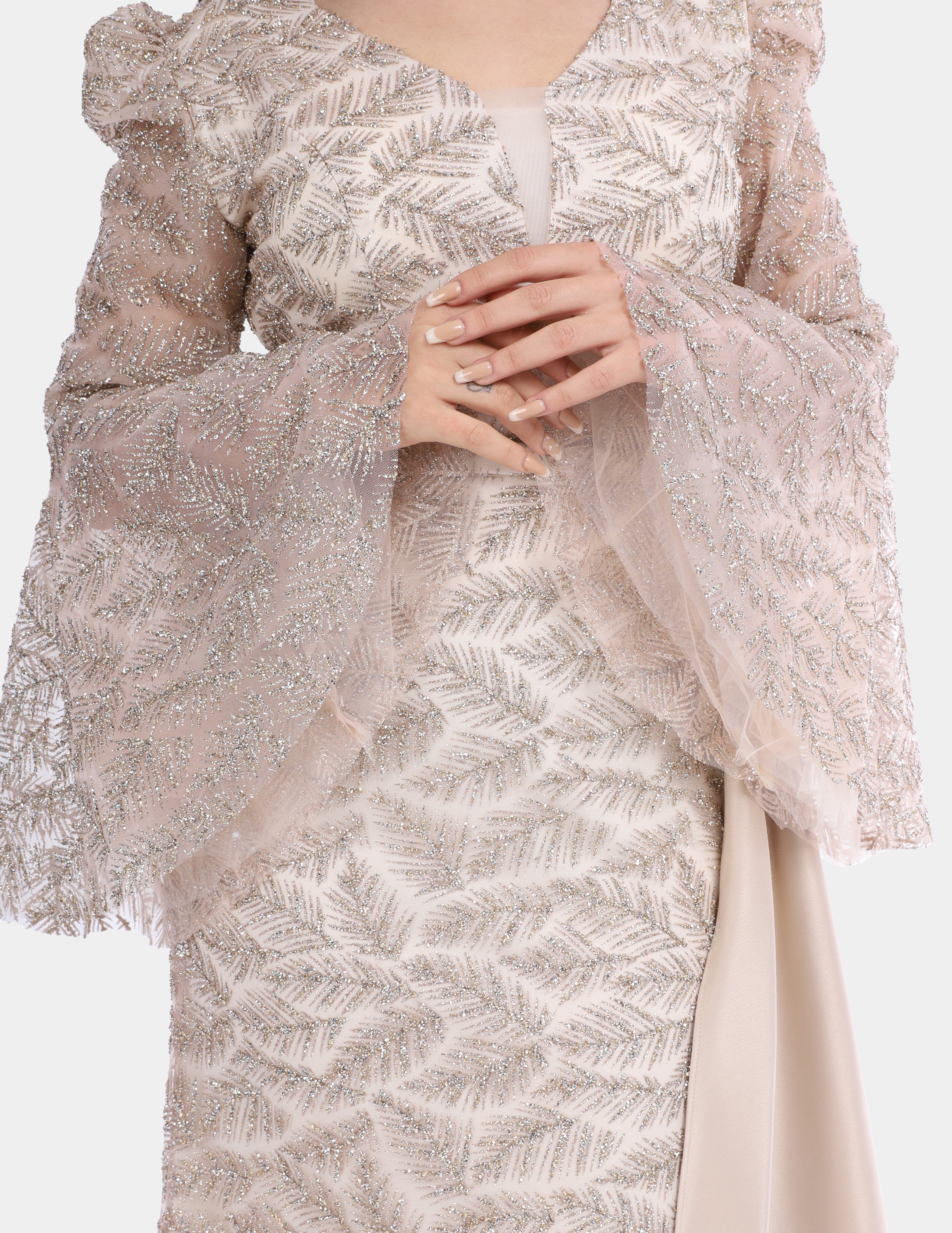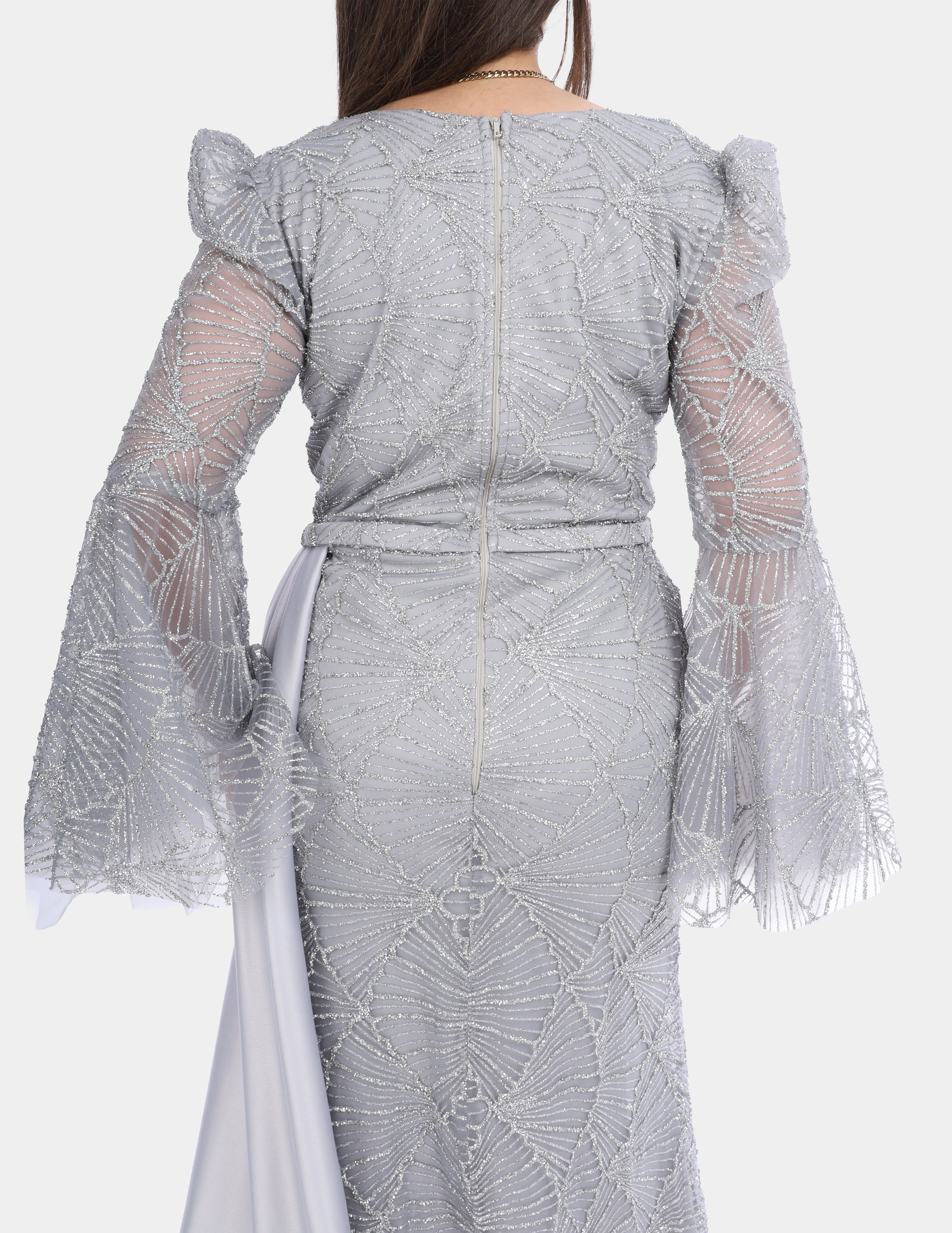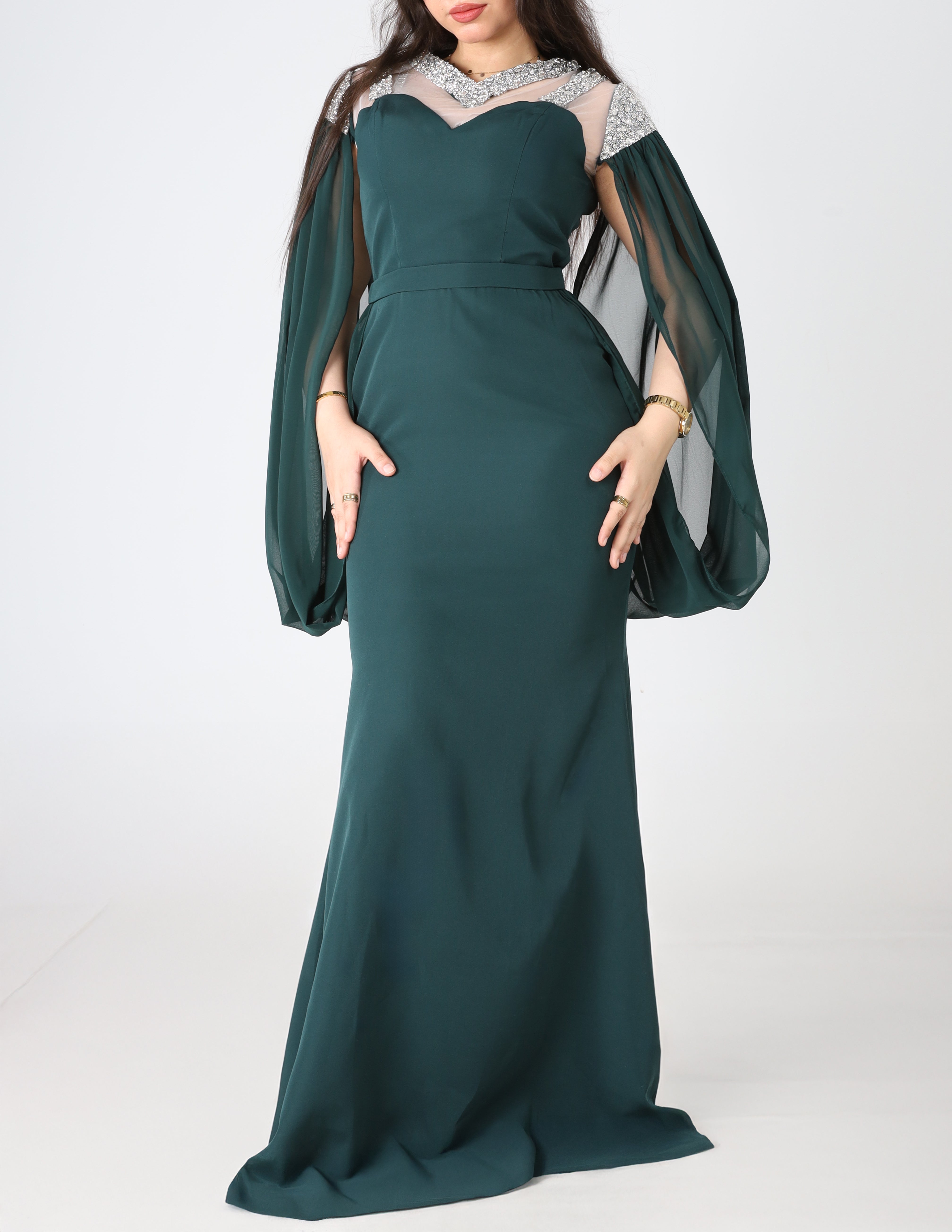 Elegant Evening Dress with Embroidered Sleeves w941700/3