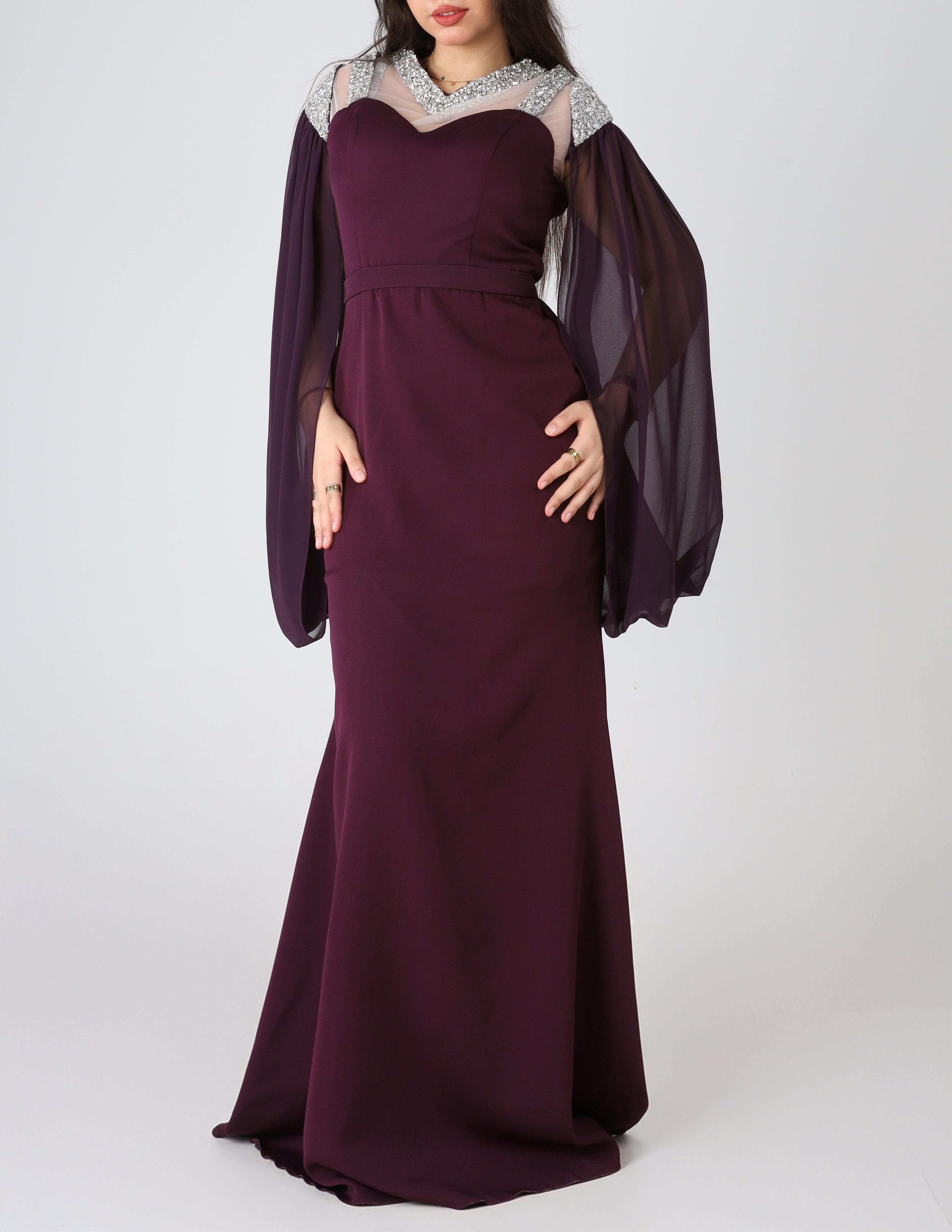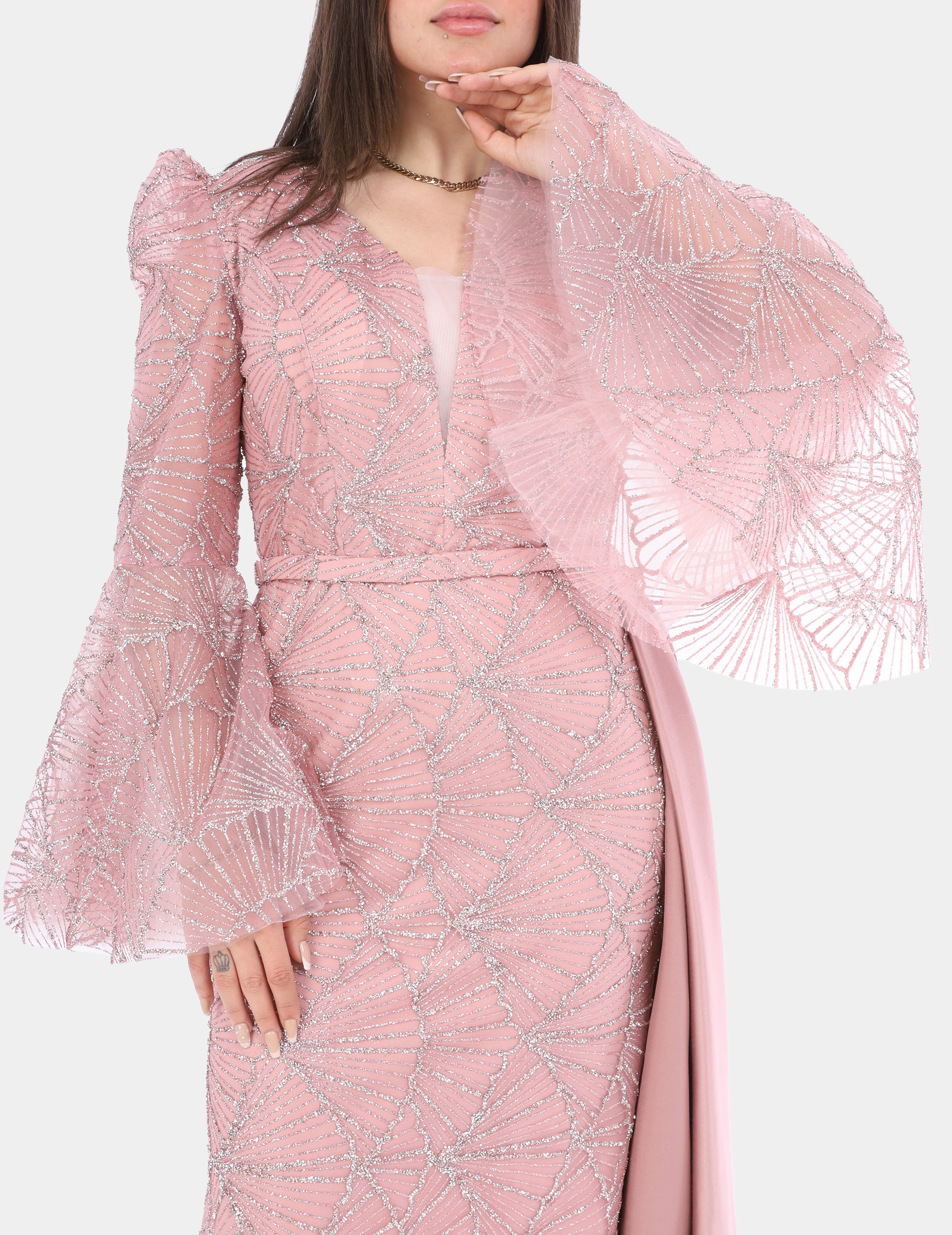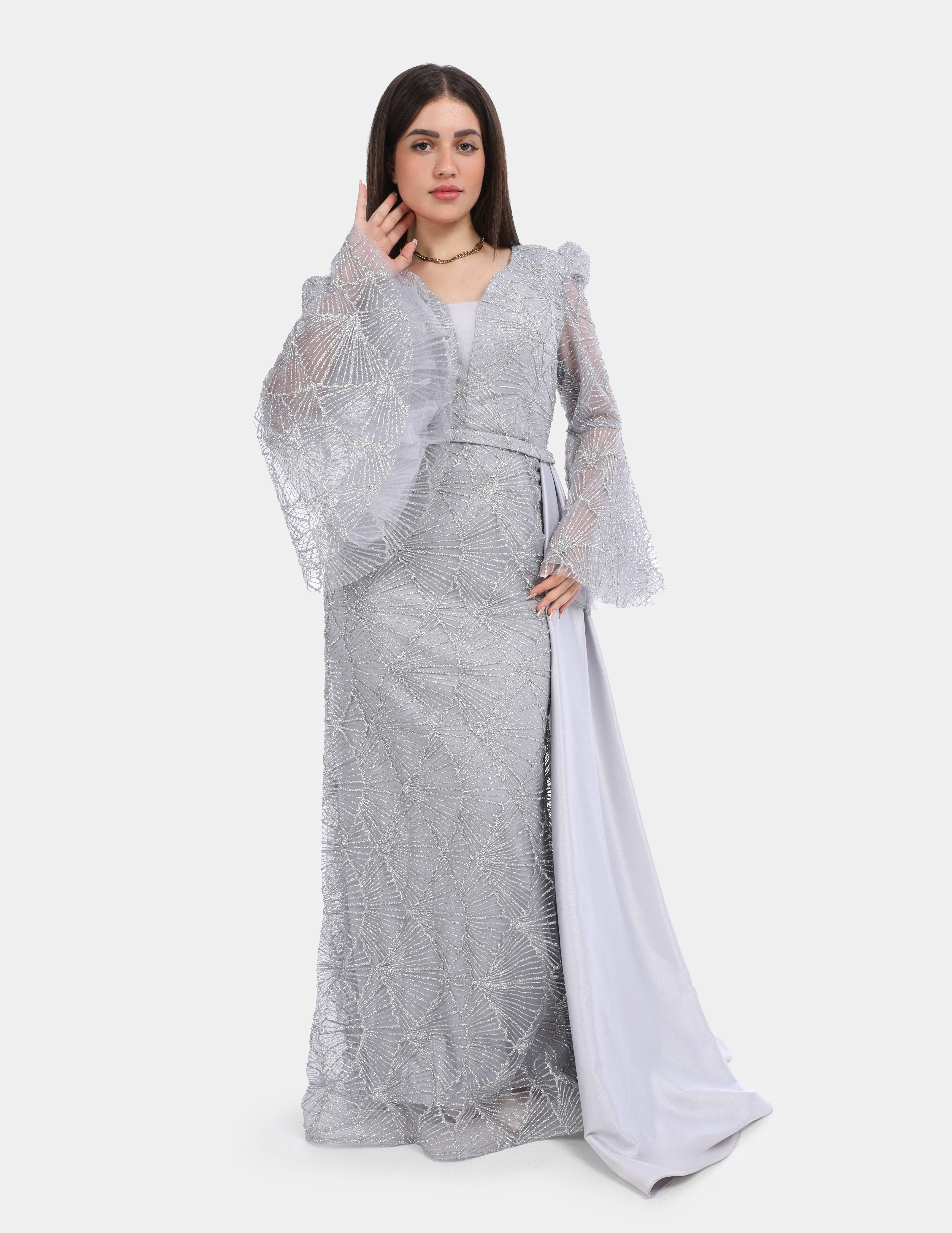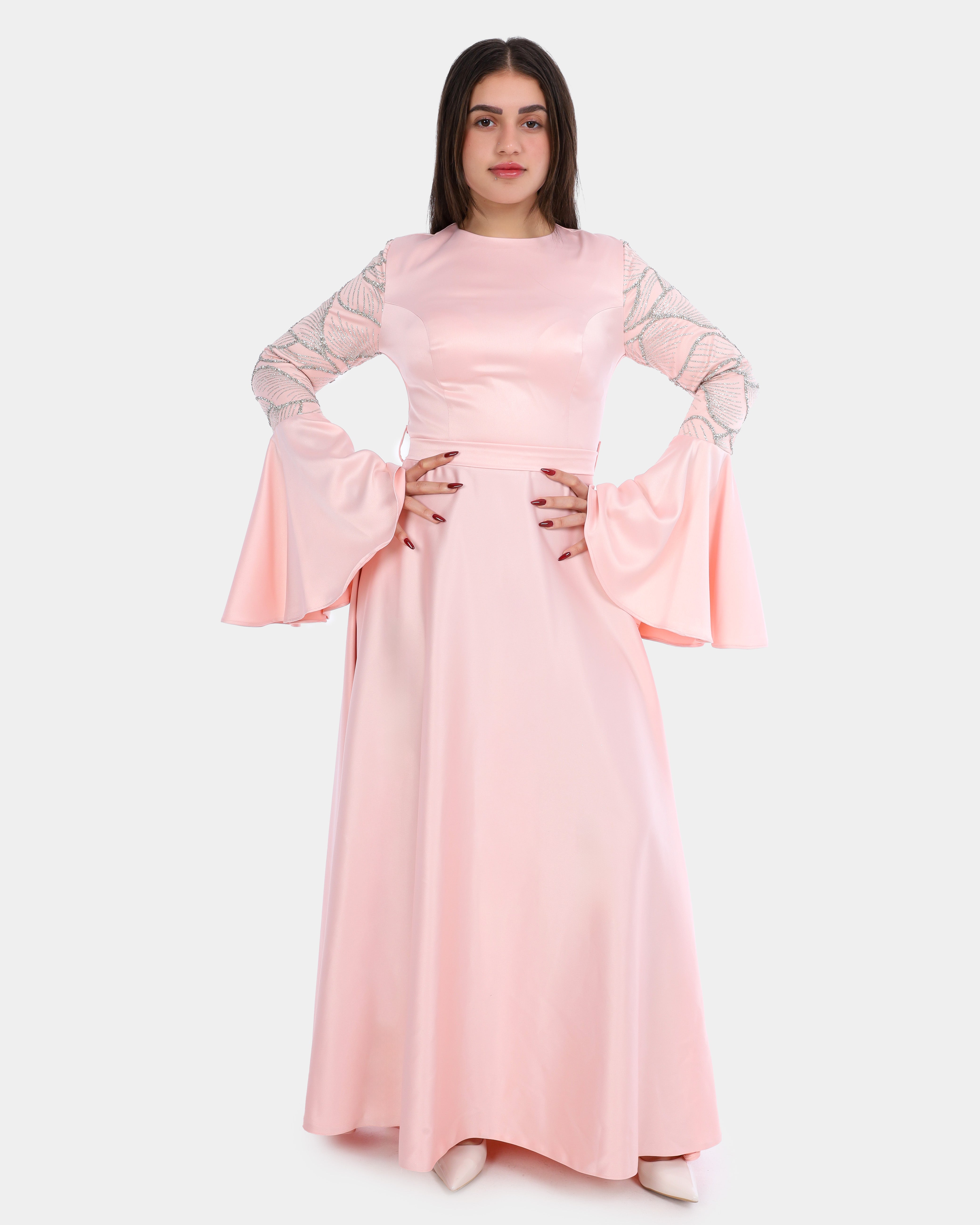 Elegant Evening Dress with Embroidered Sleeves w941700/3