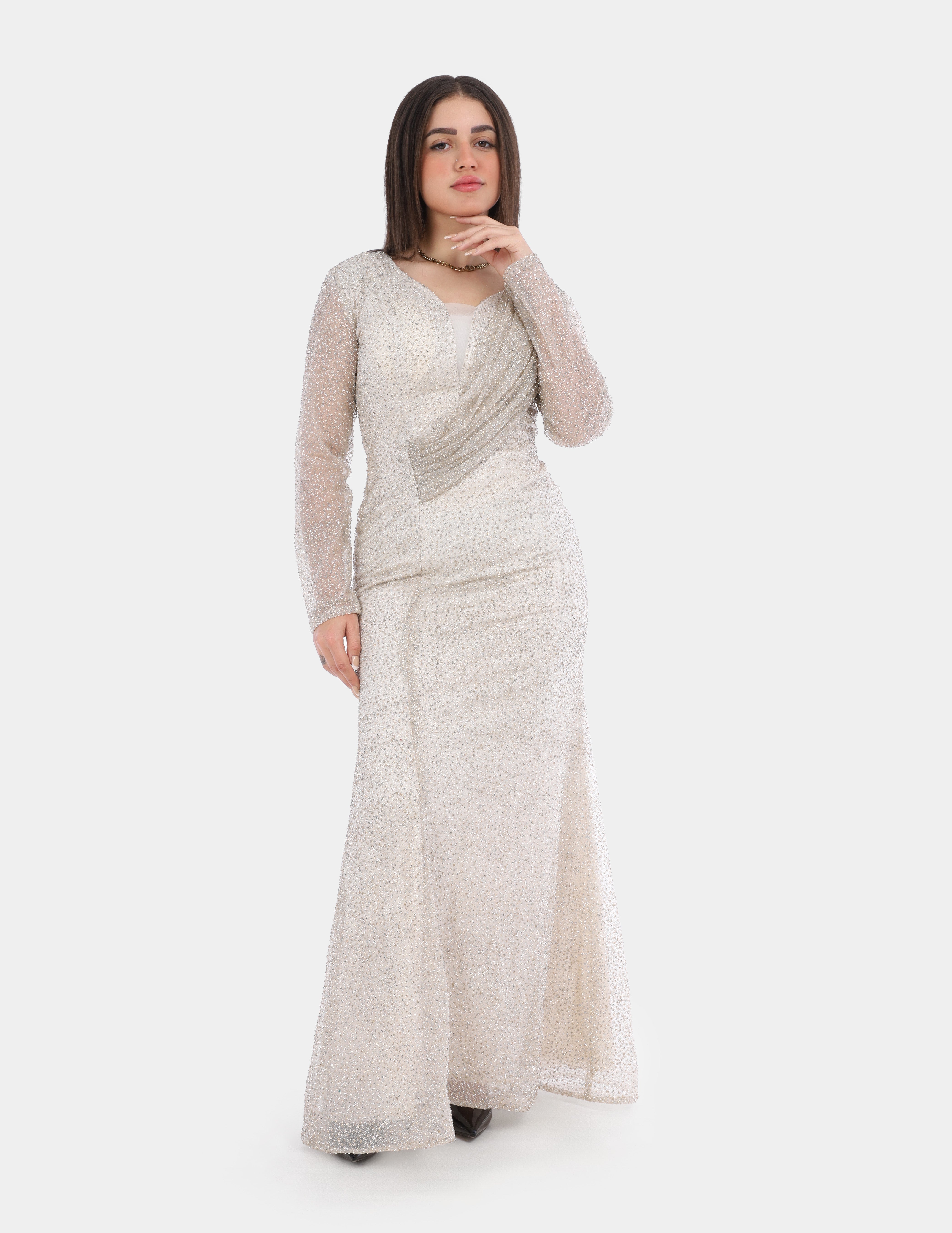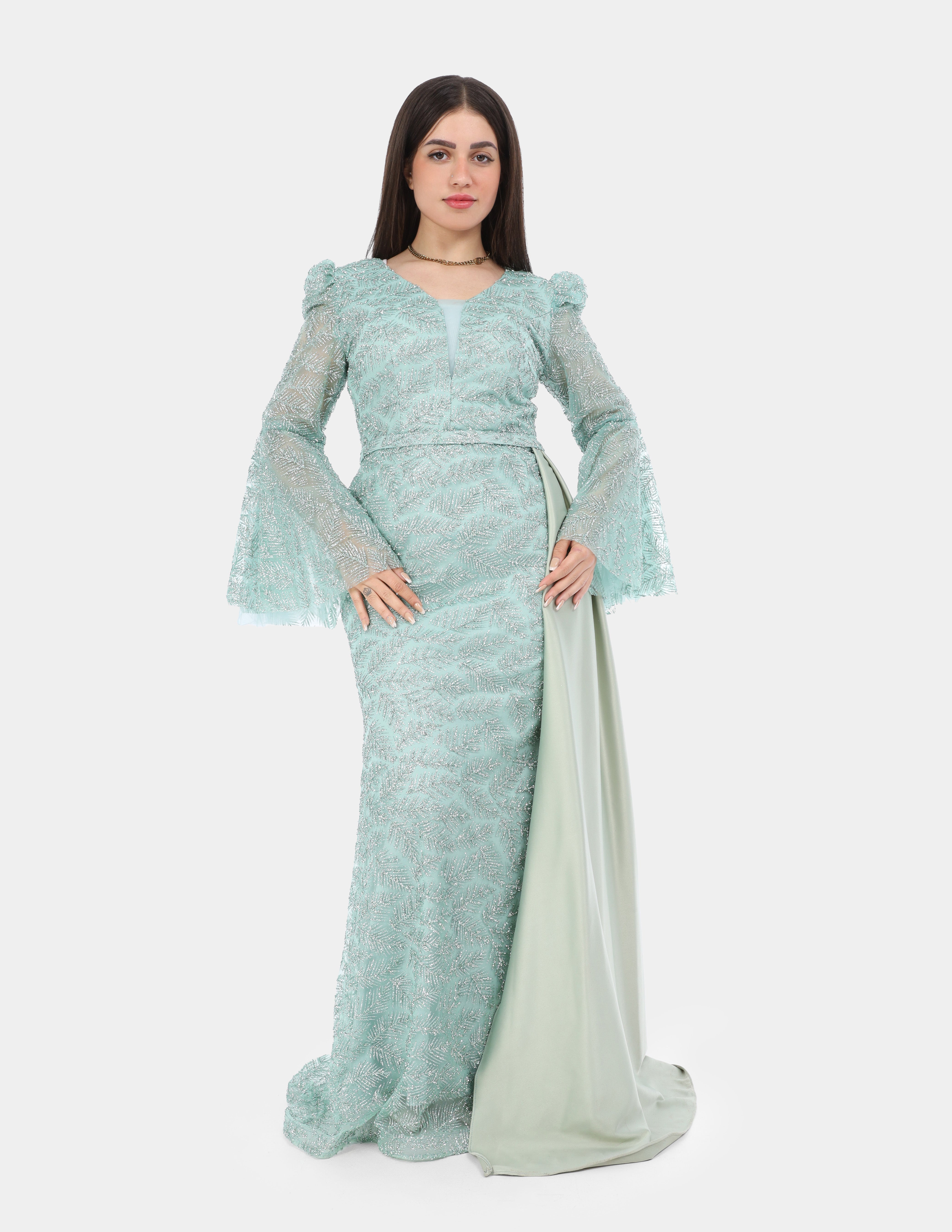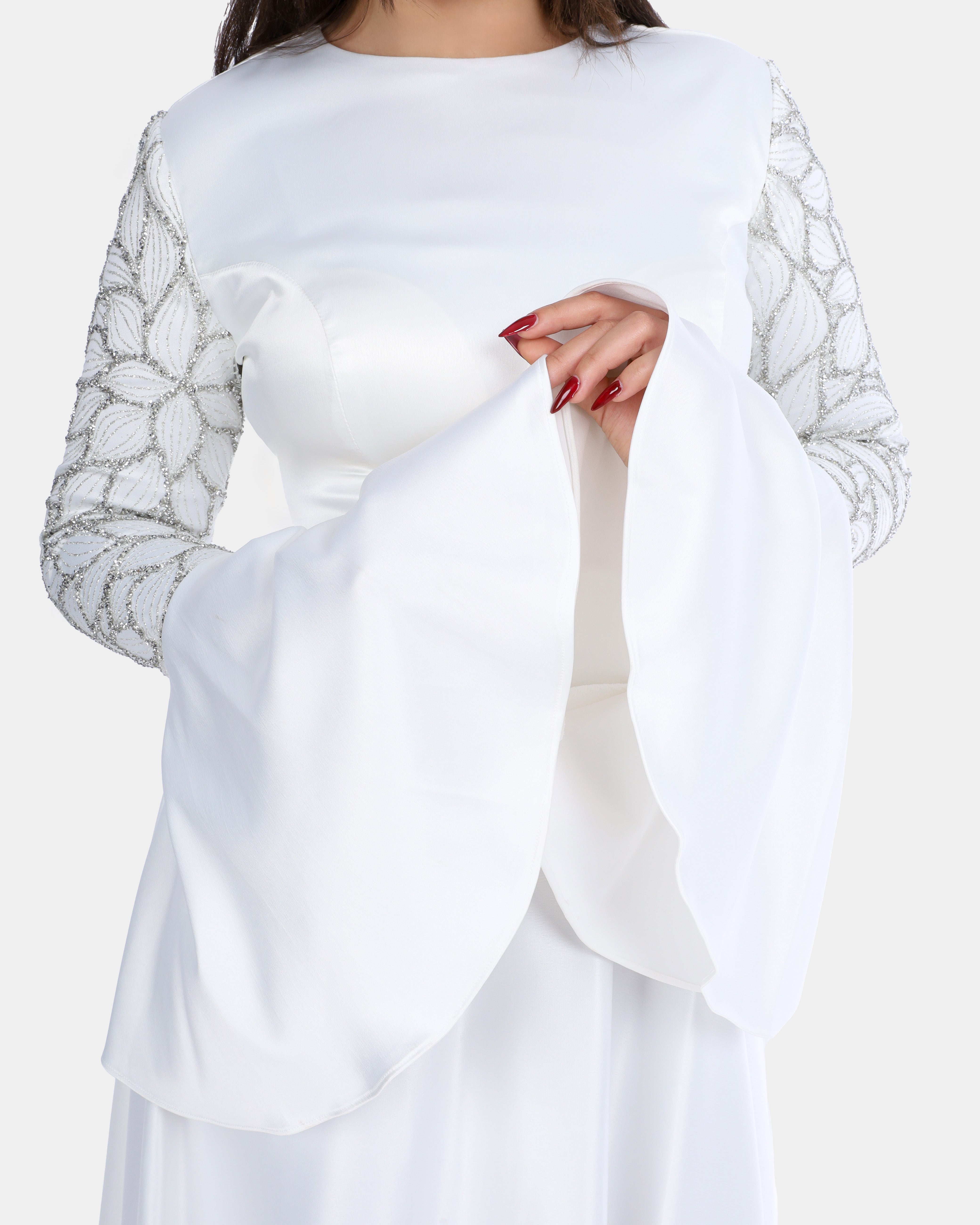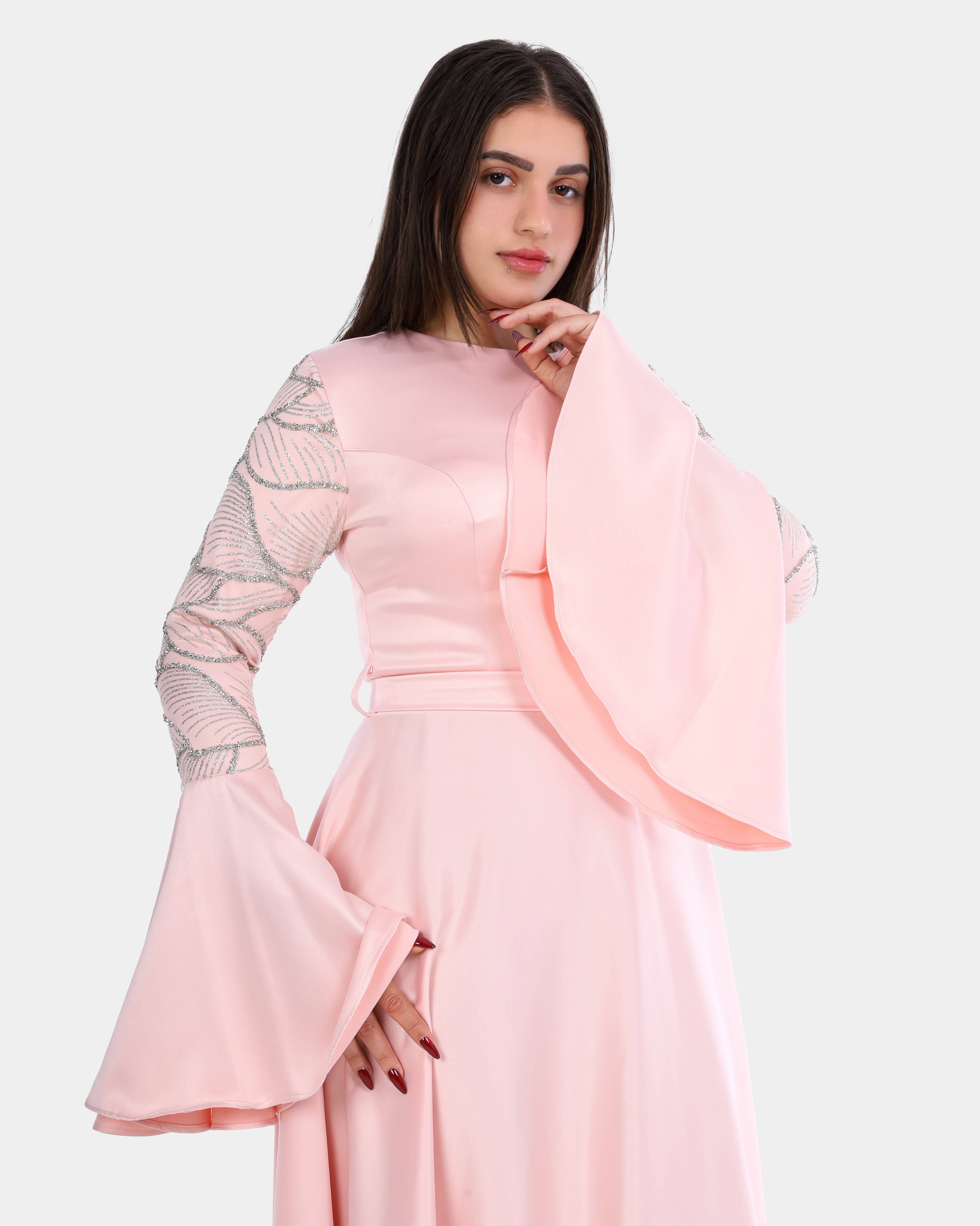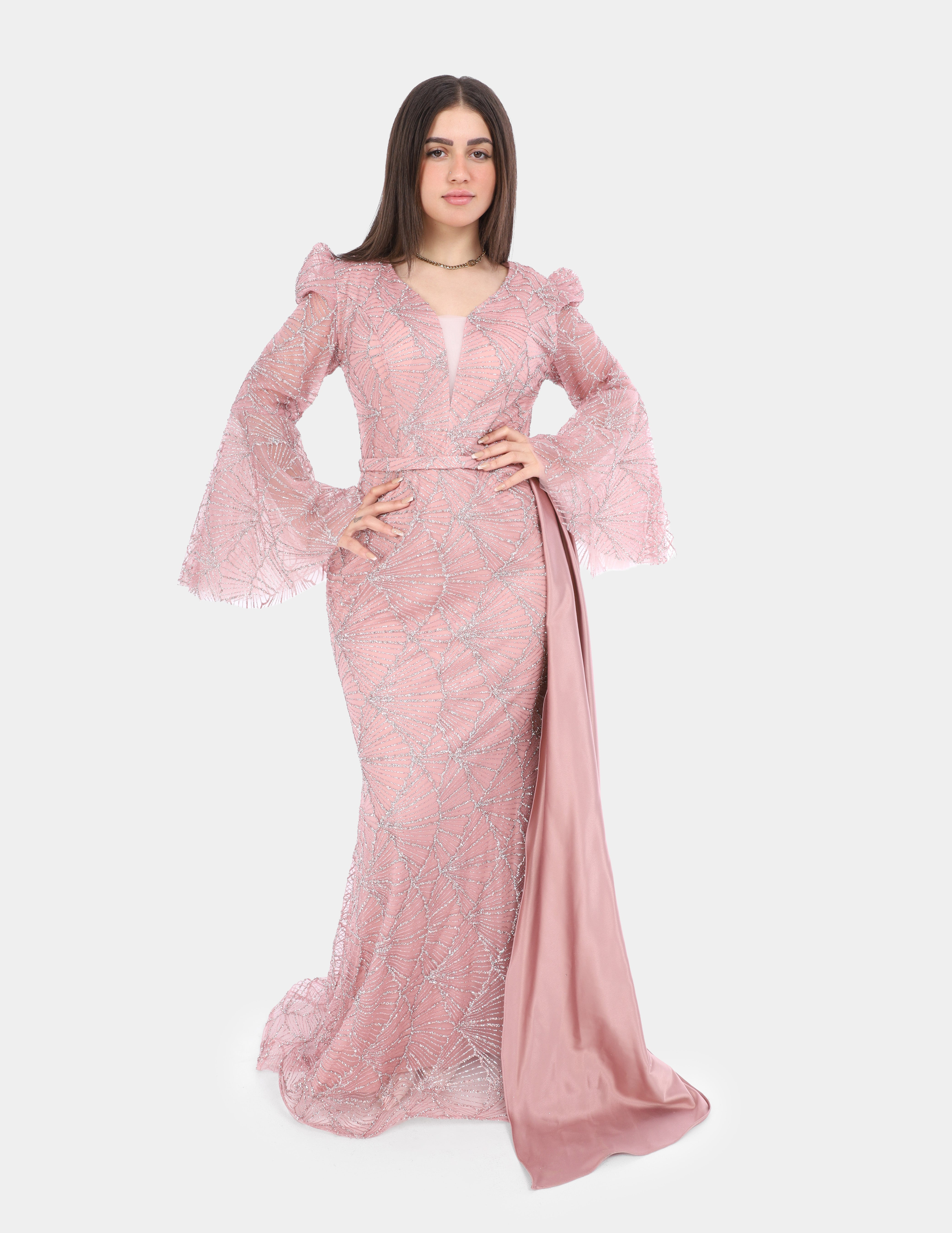 Elegant Evening Dress with Embroidered Sleeves w941700/3