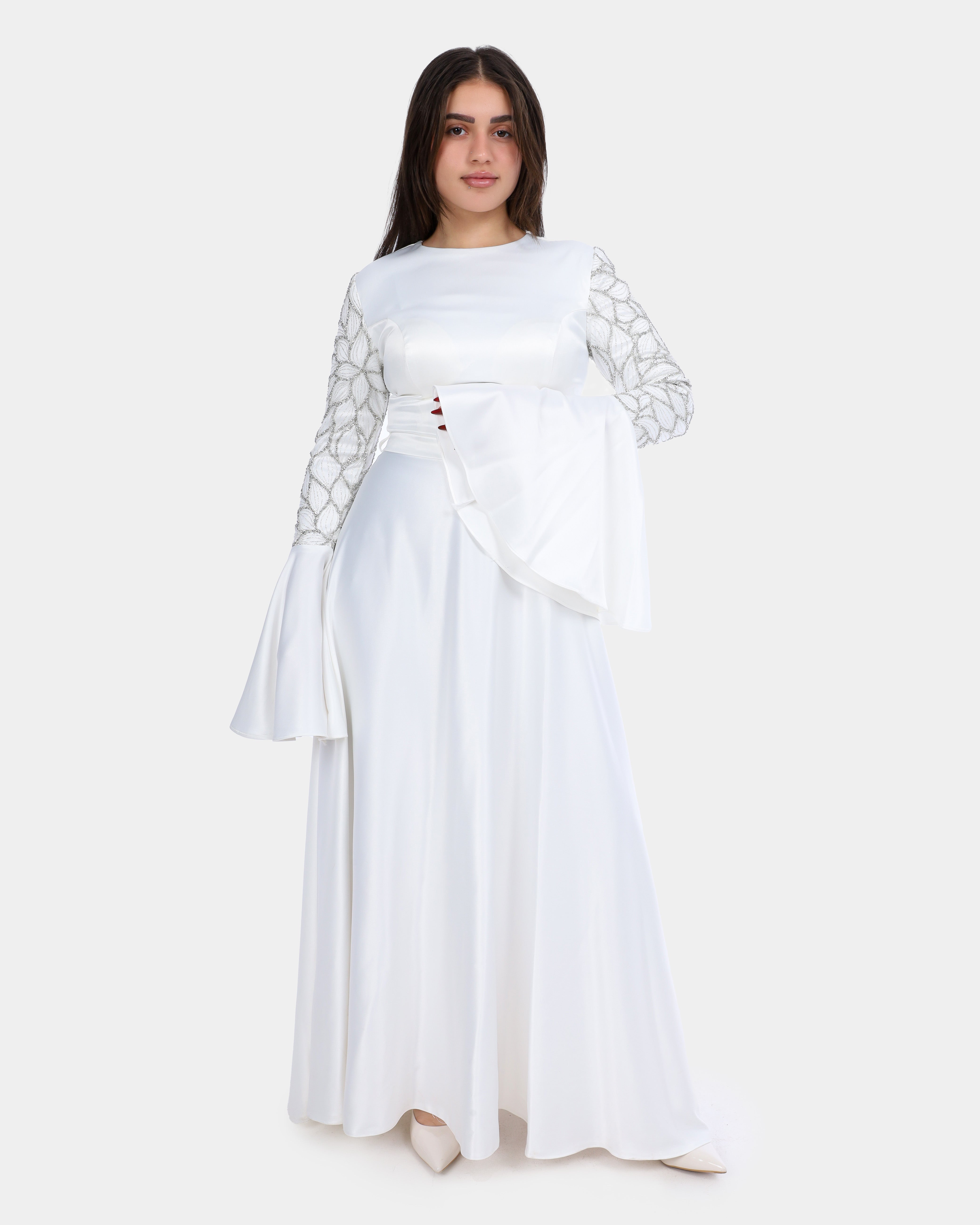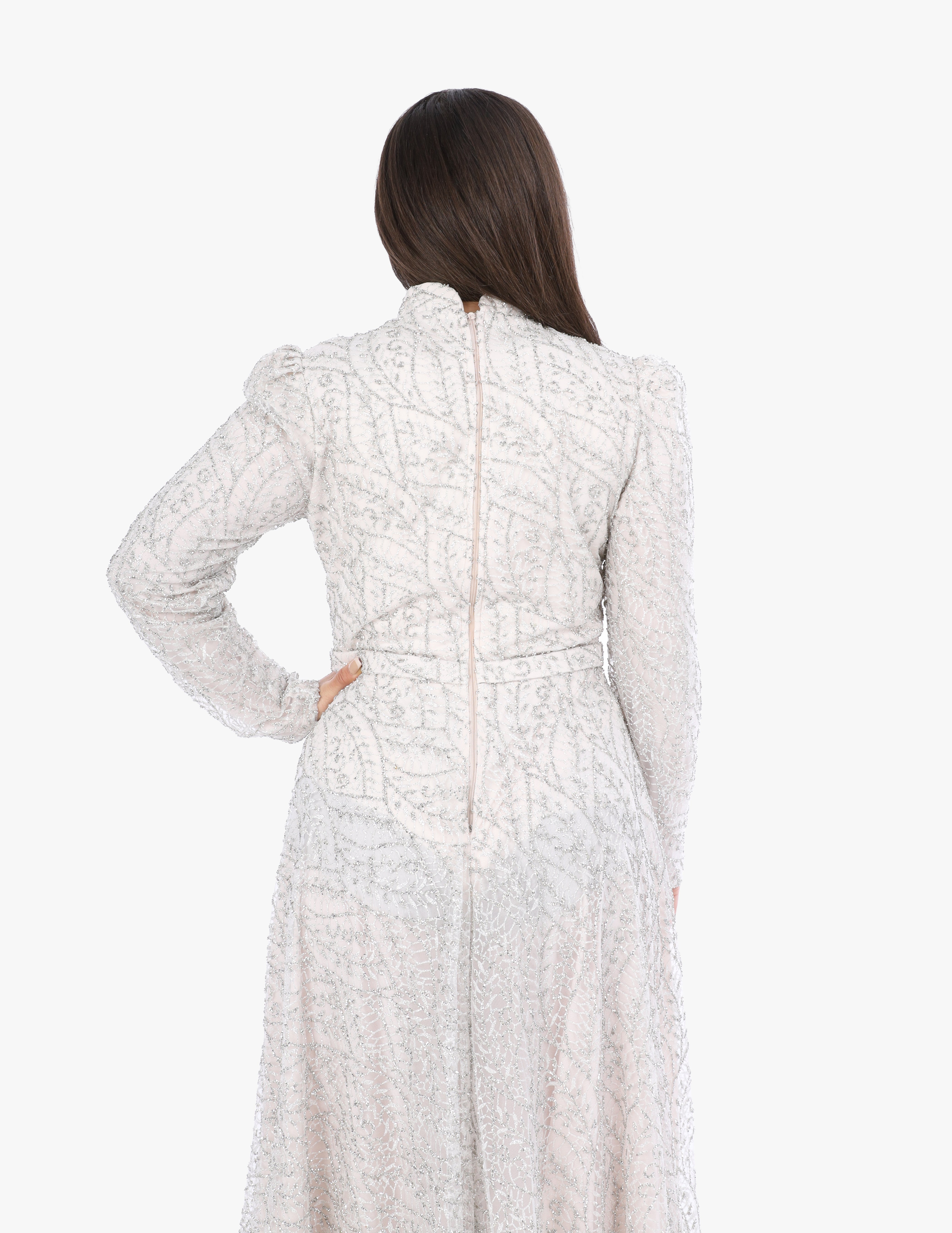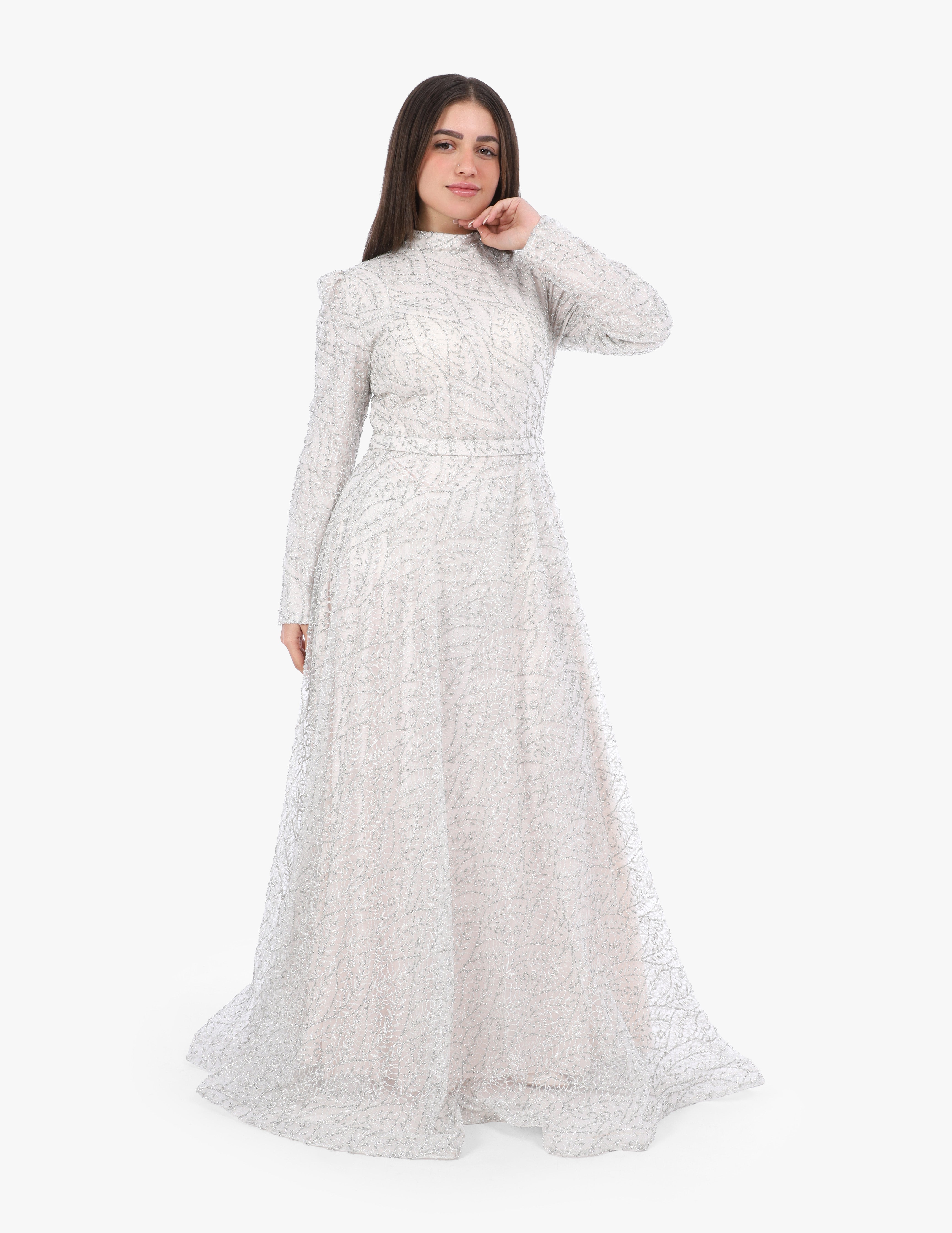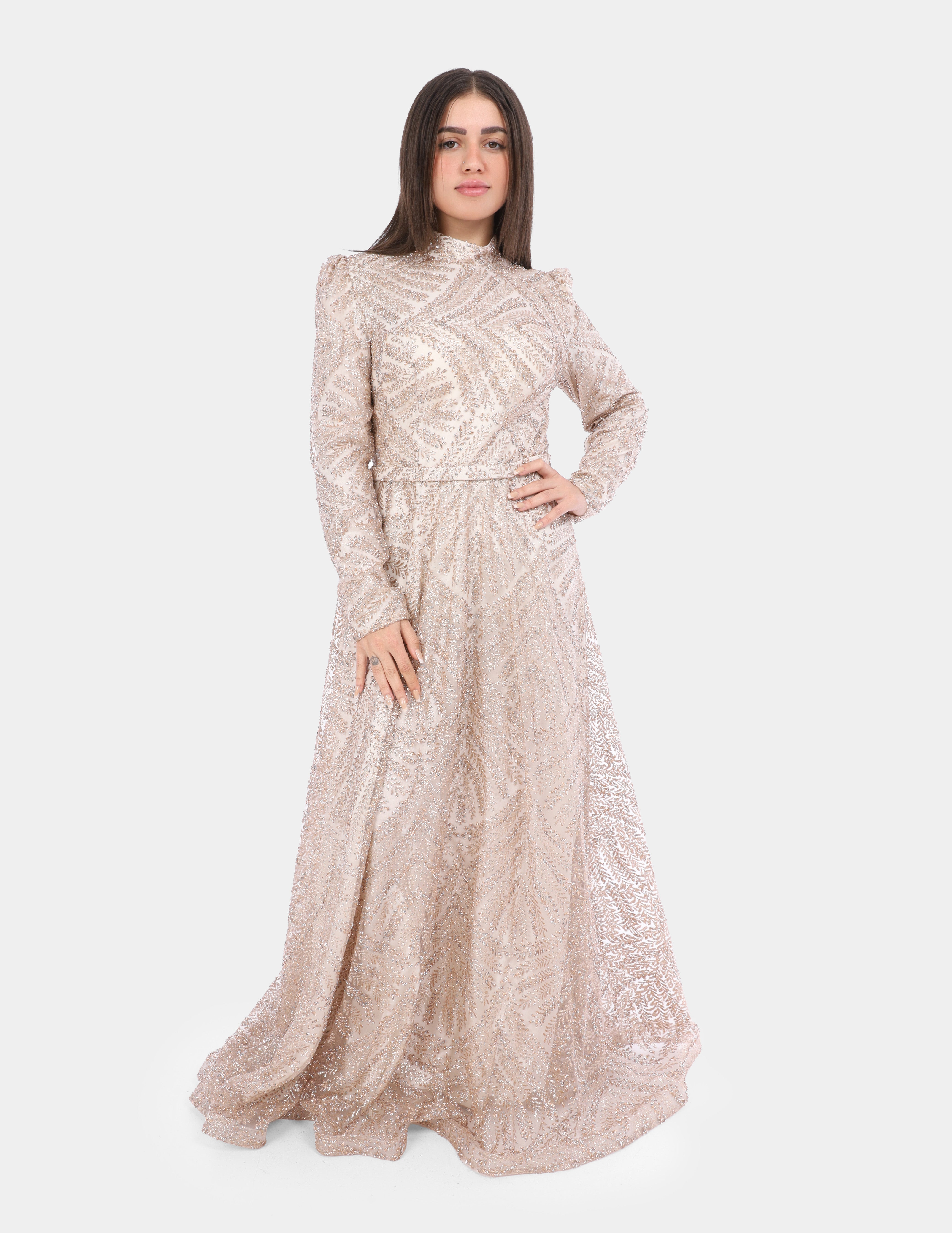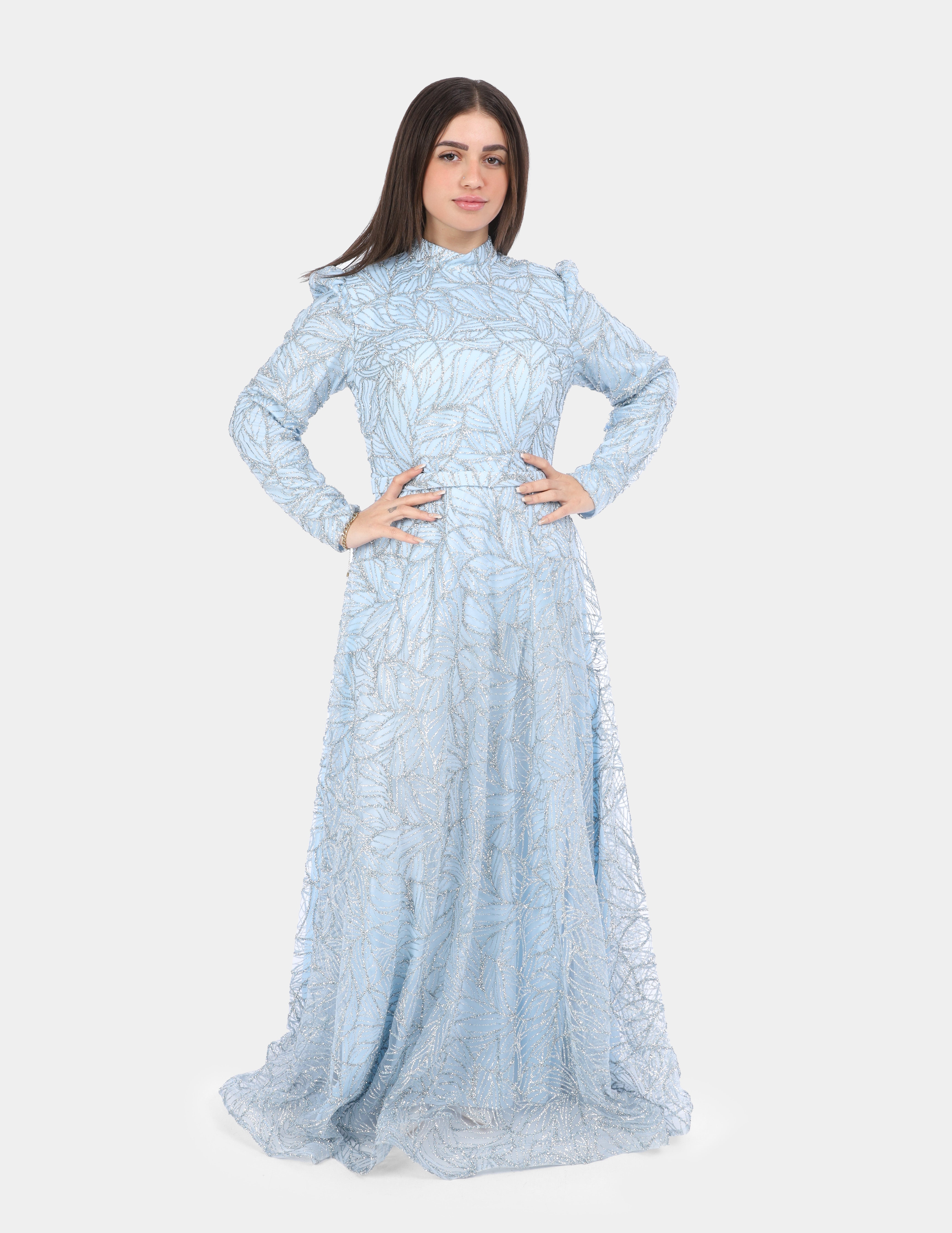 Elegant Evening Dress with Embroidered Sleeves w941700/3
