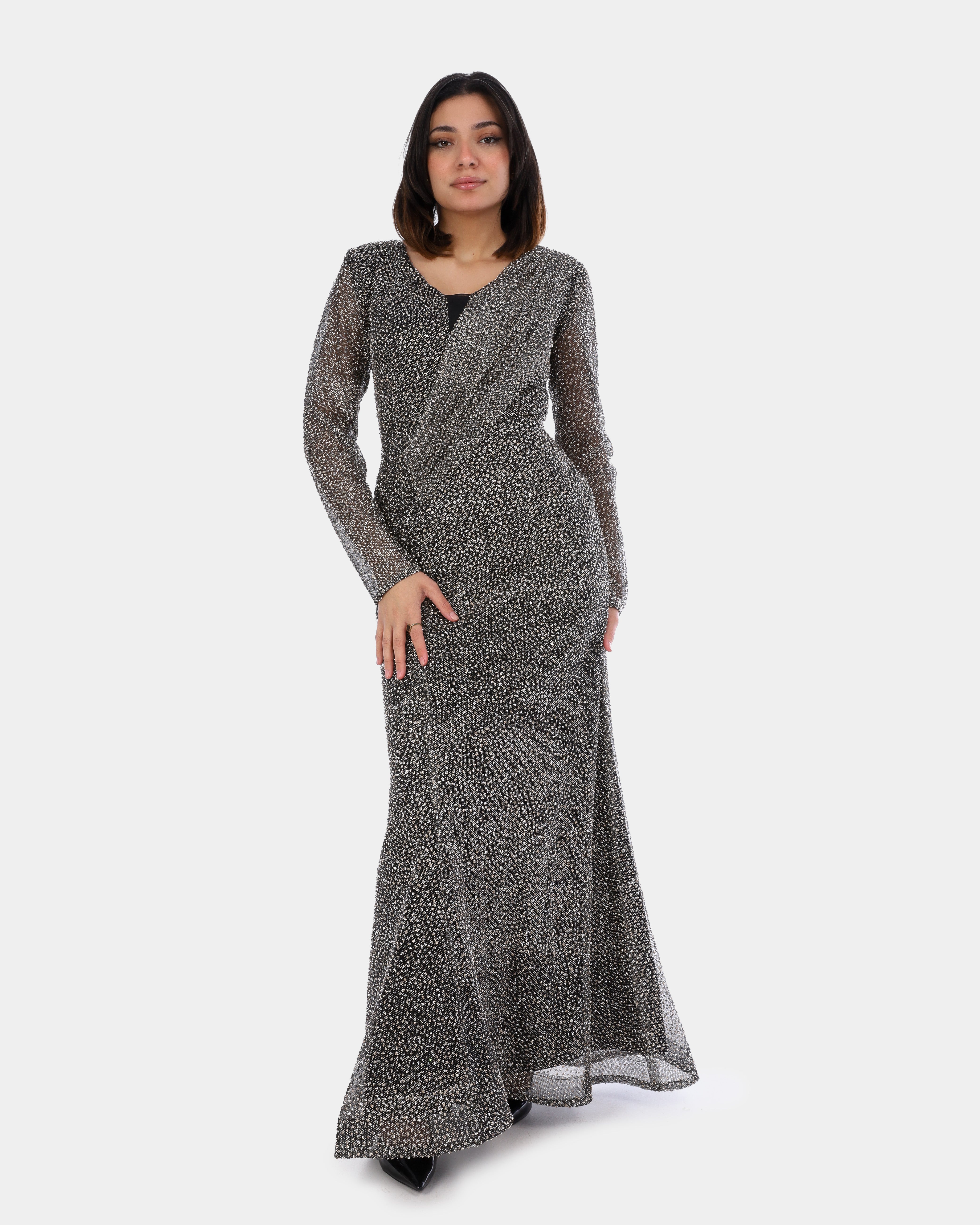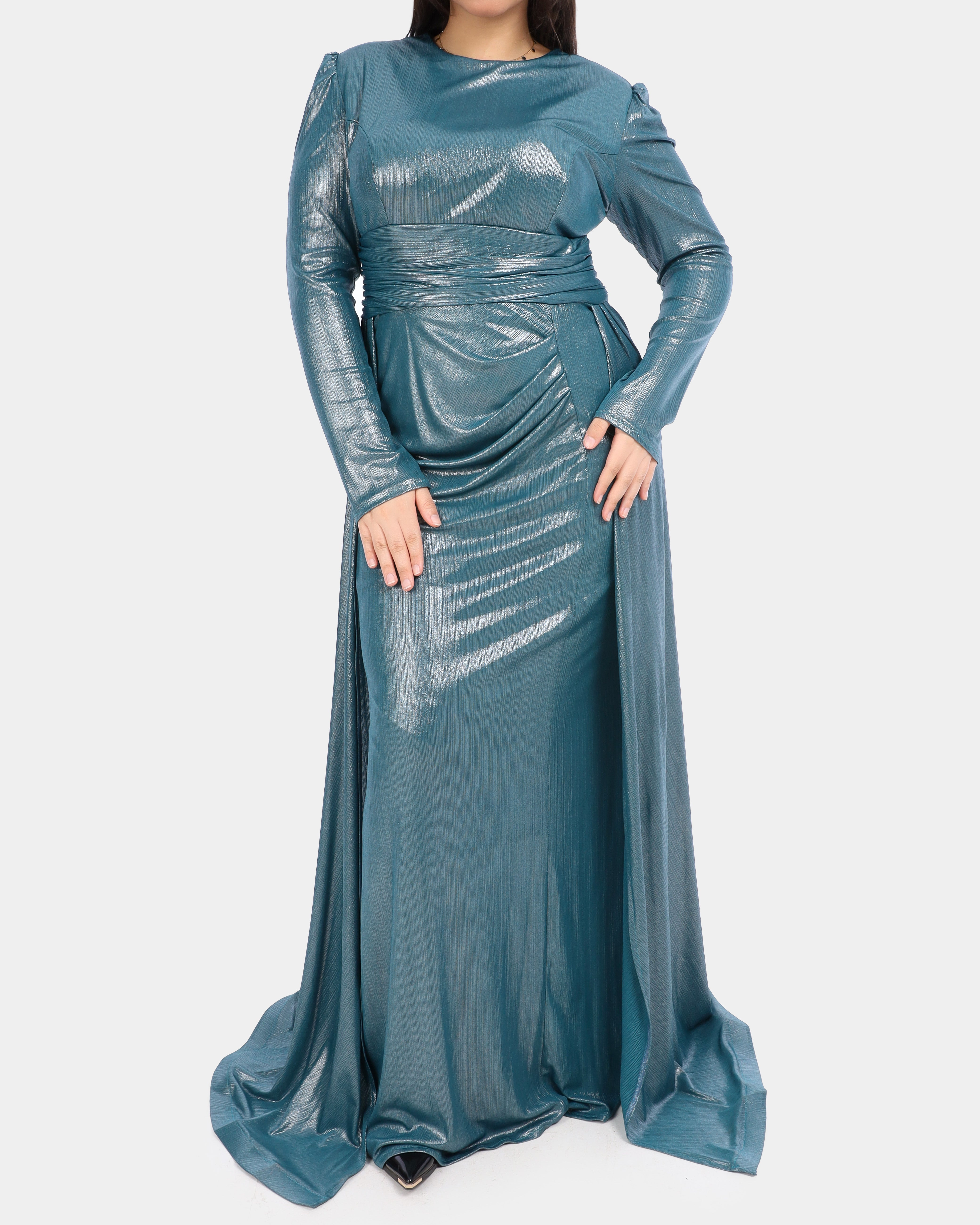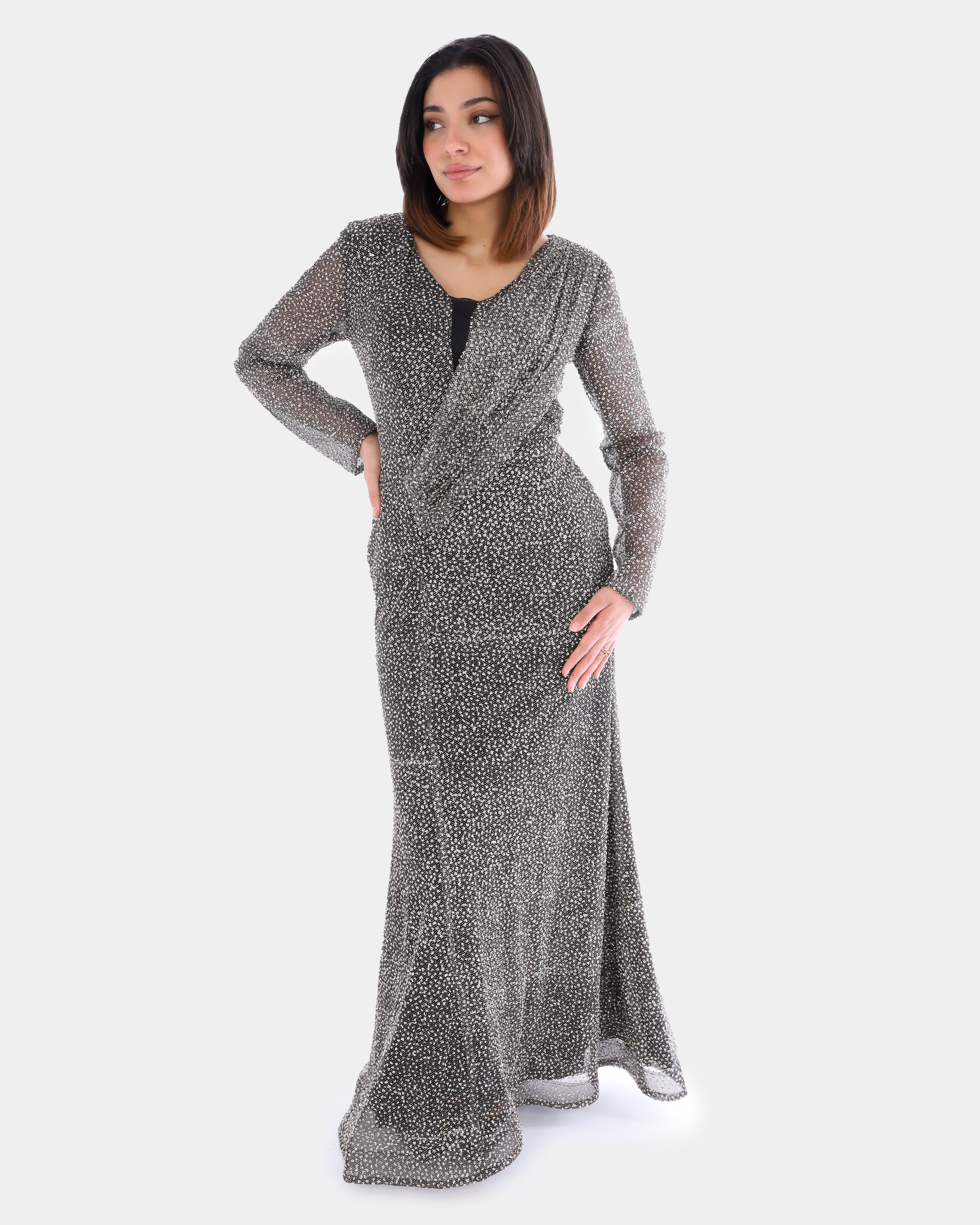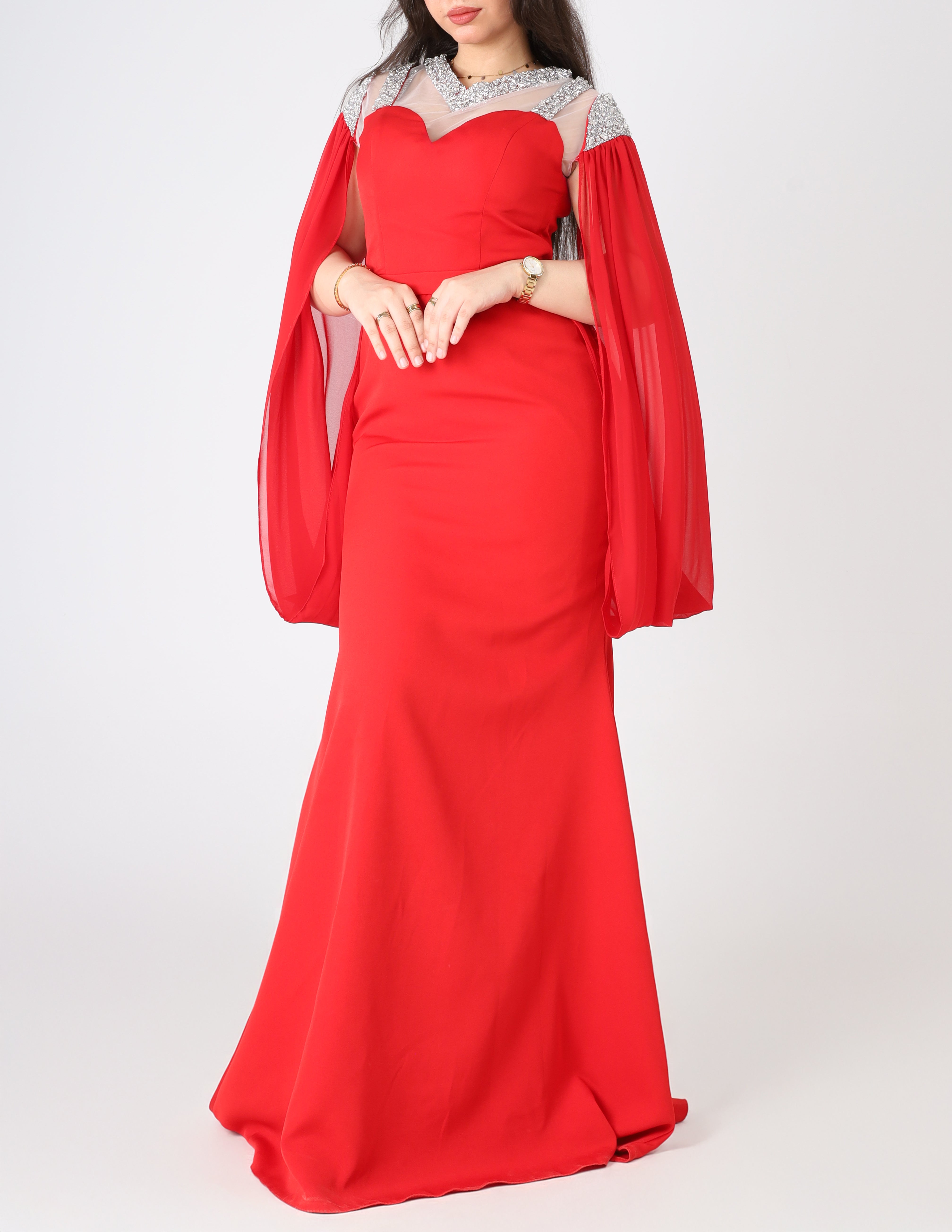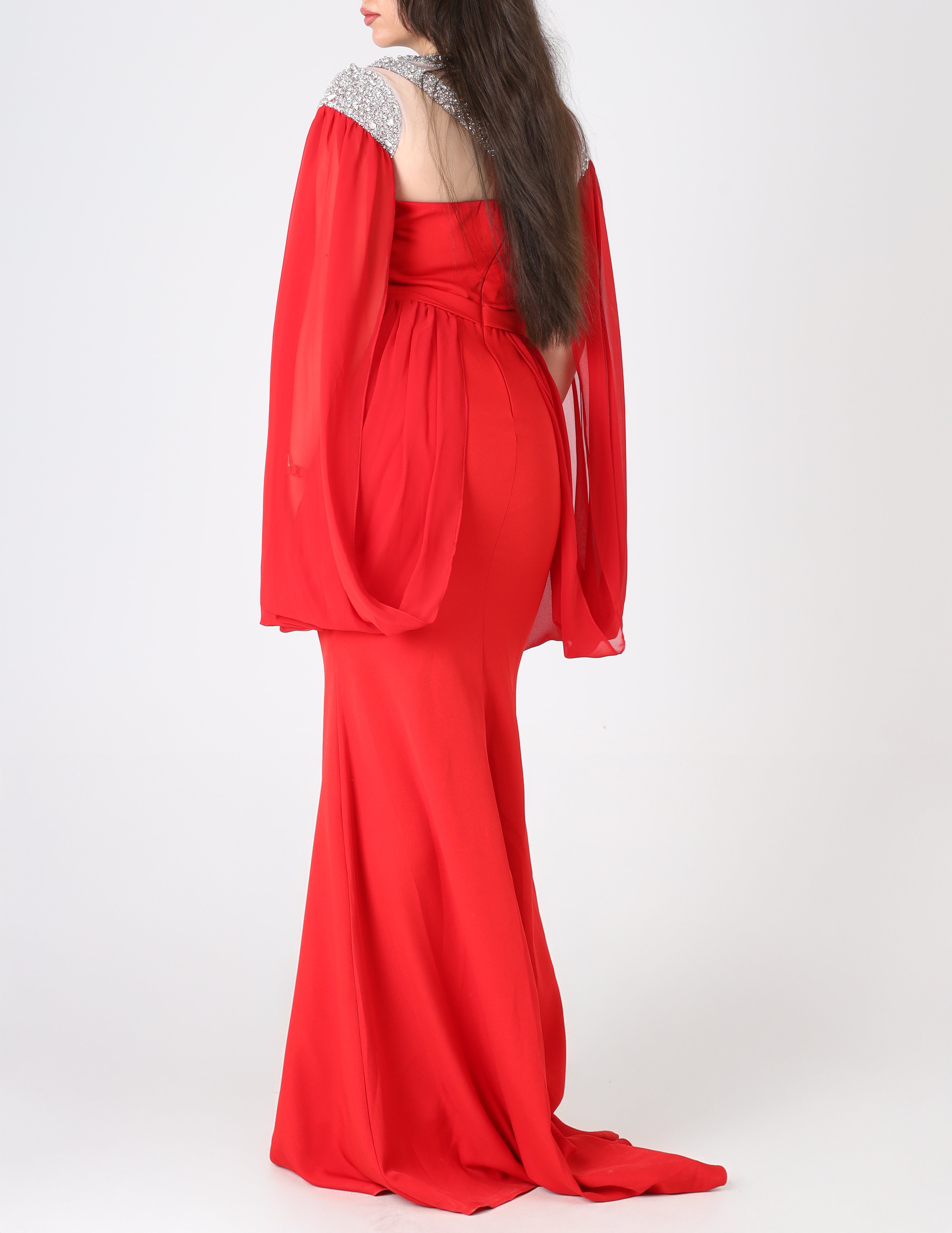 Elegant Evening Dress with Embroidered Sleeves w941700/3