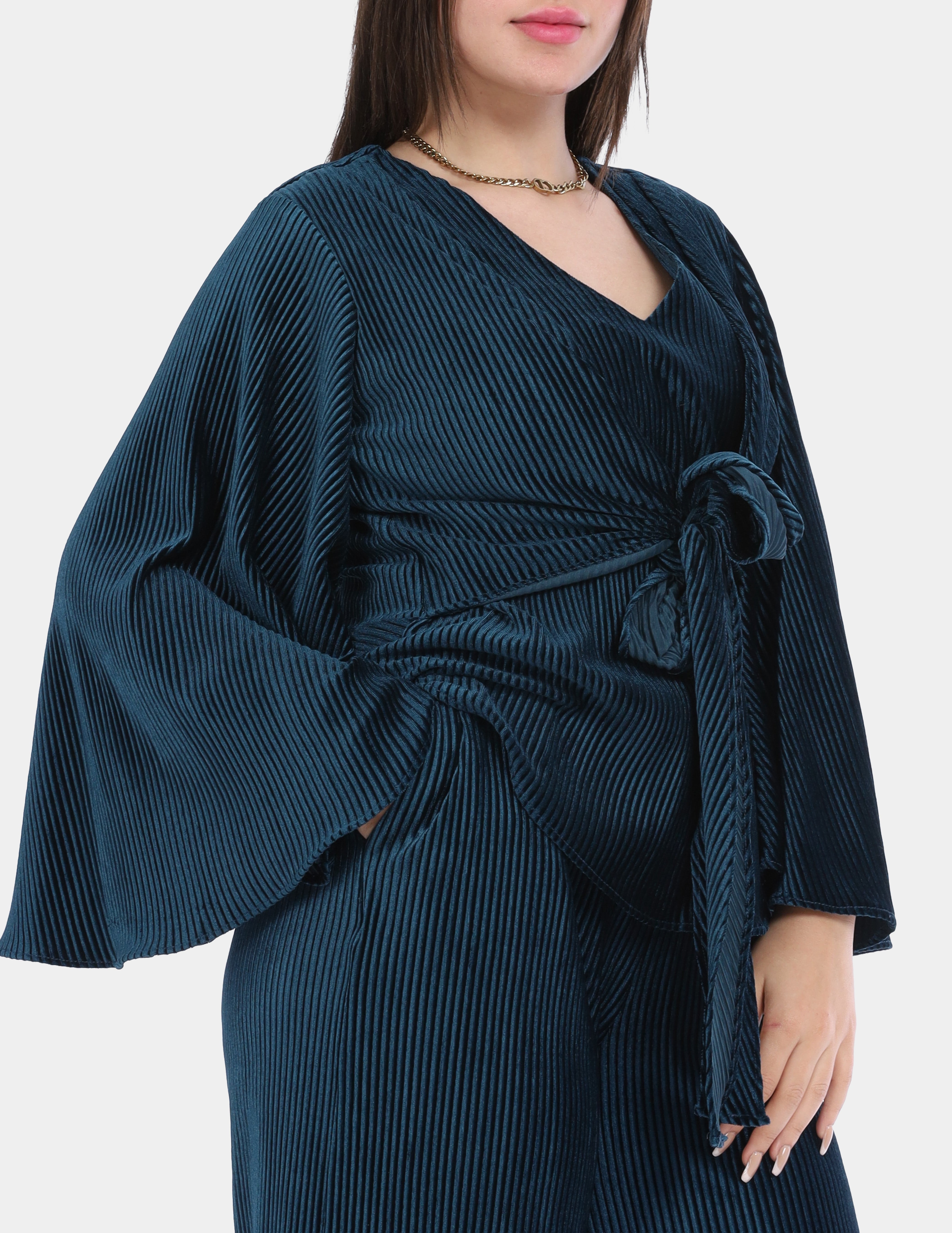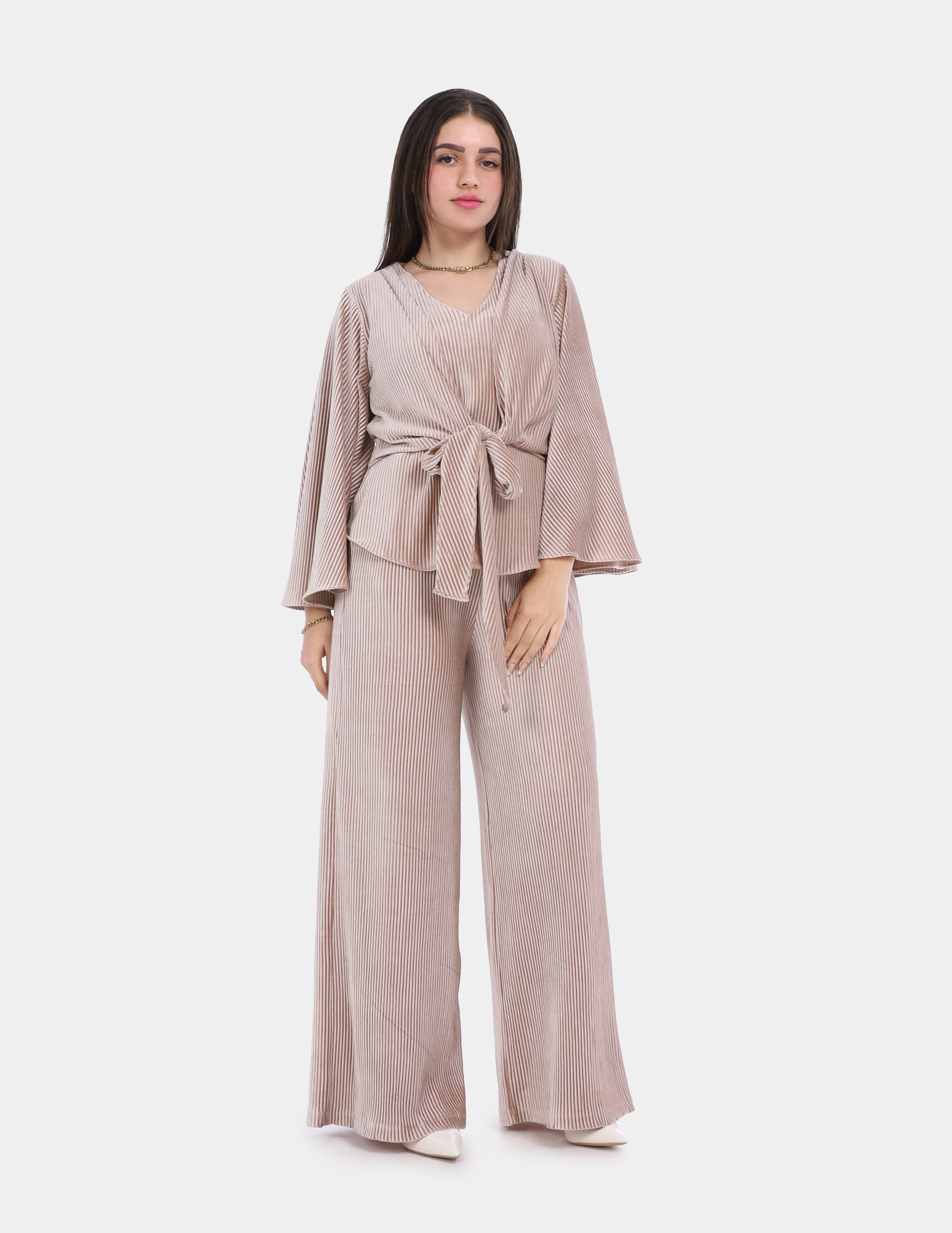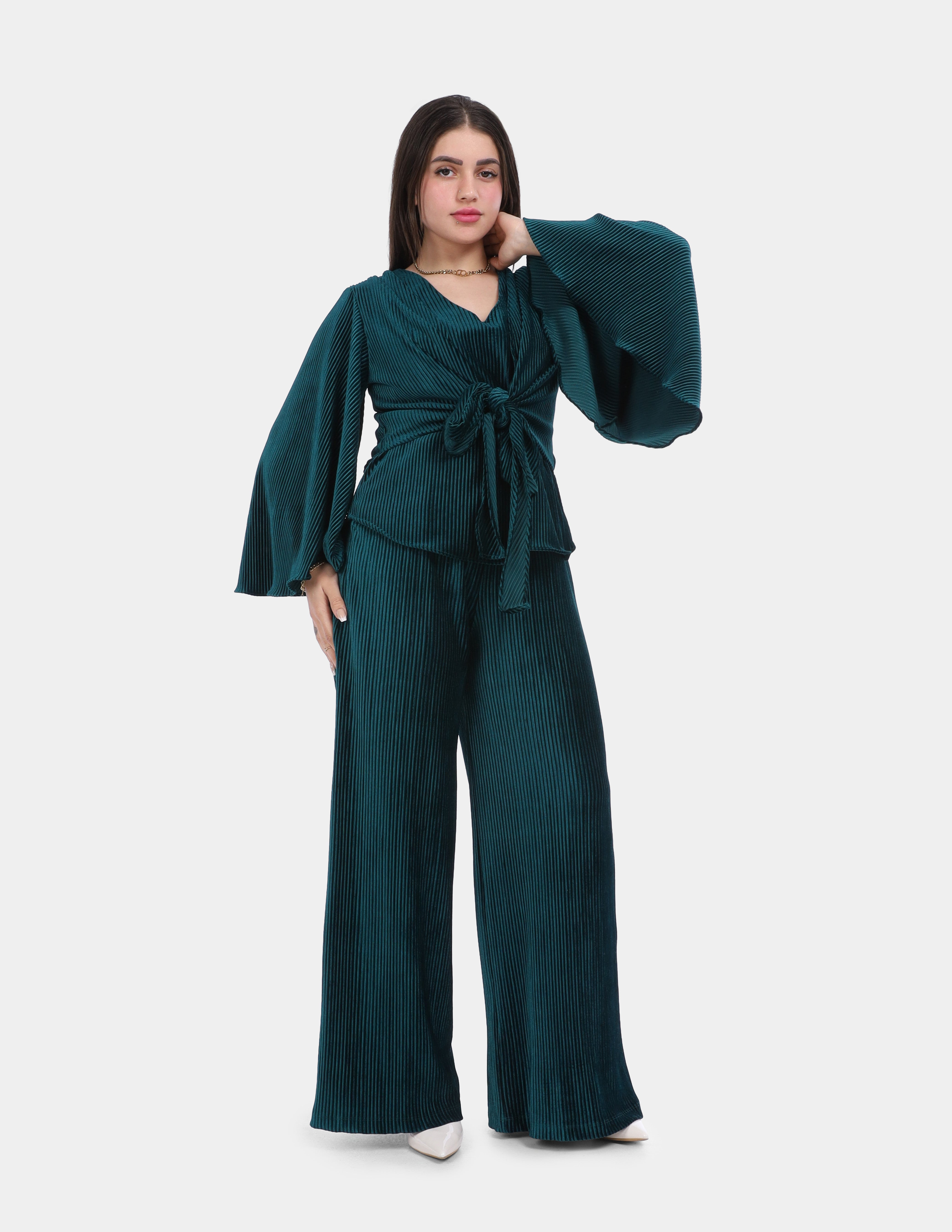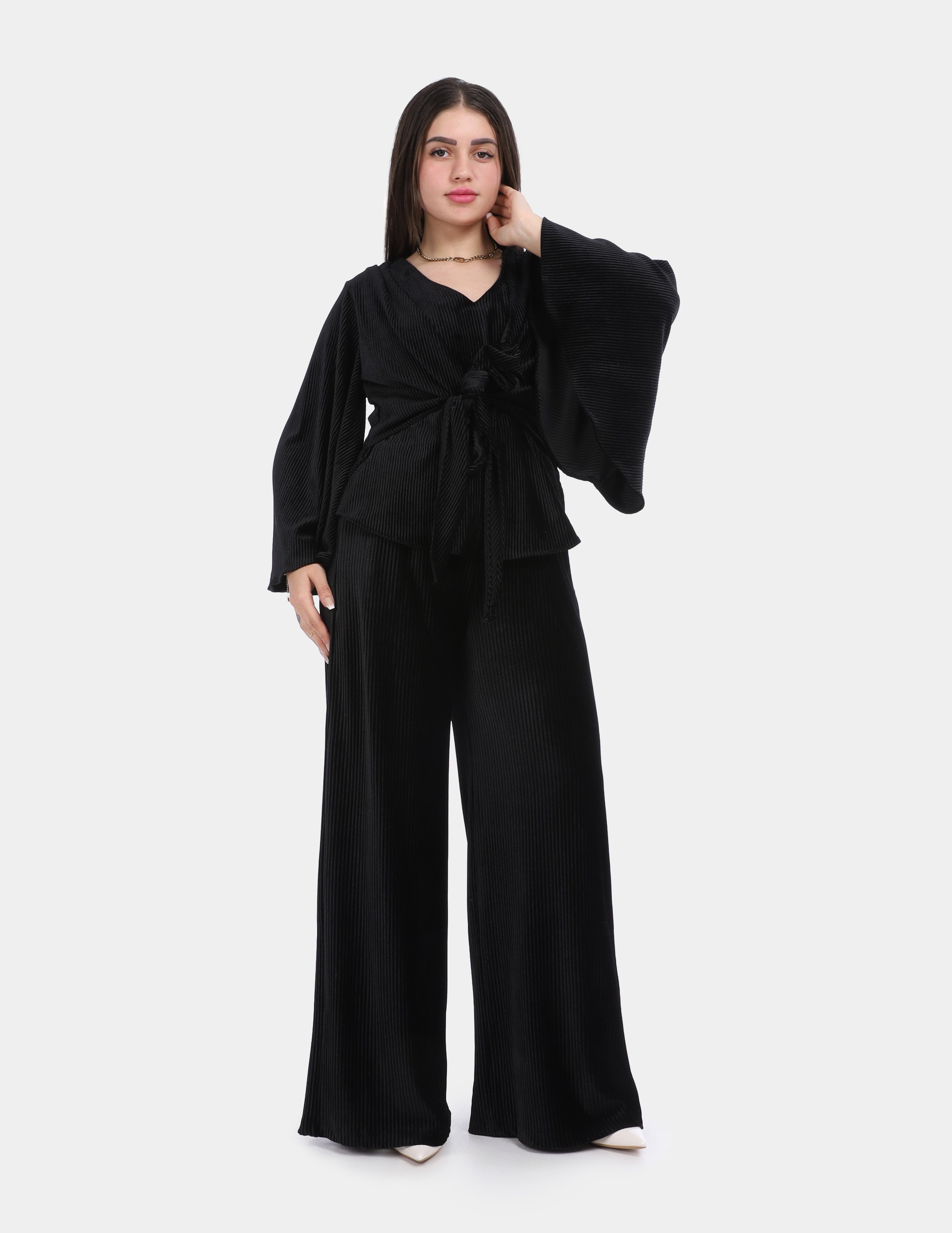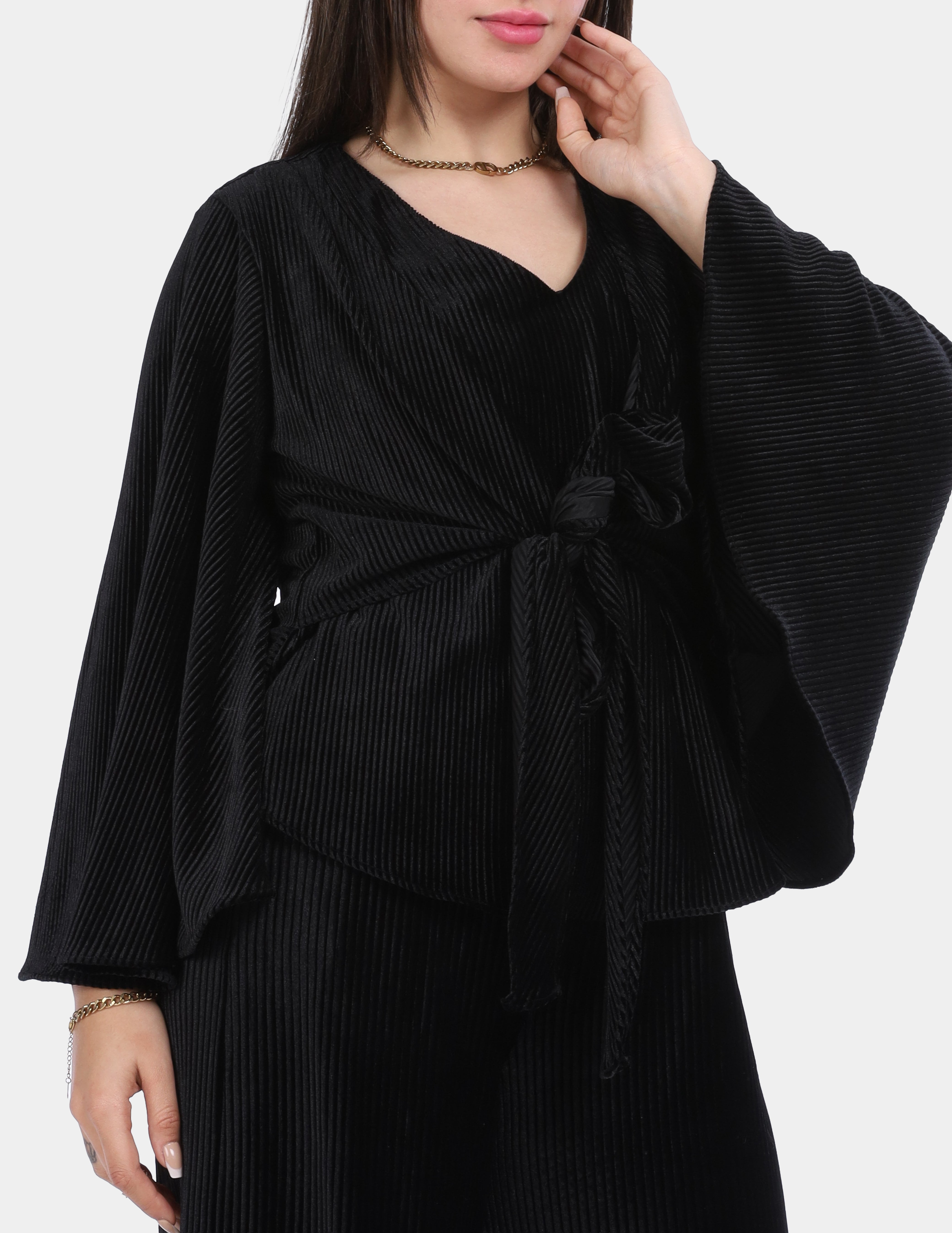 Beaded Tie-Front Elegant Set with Wide Sleeves w1649300
