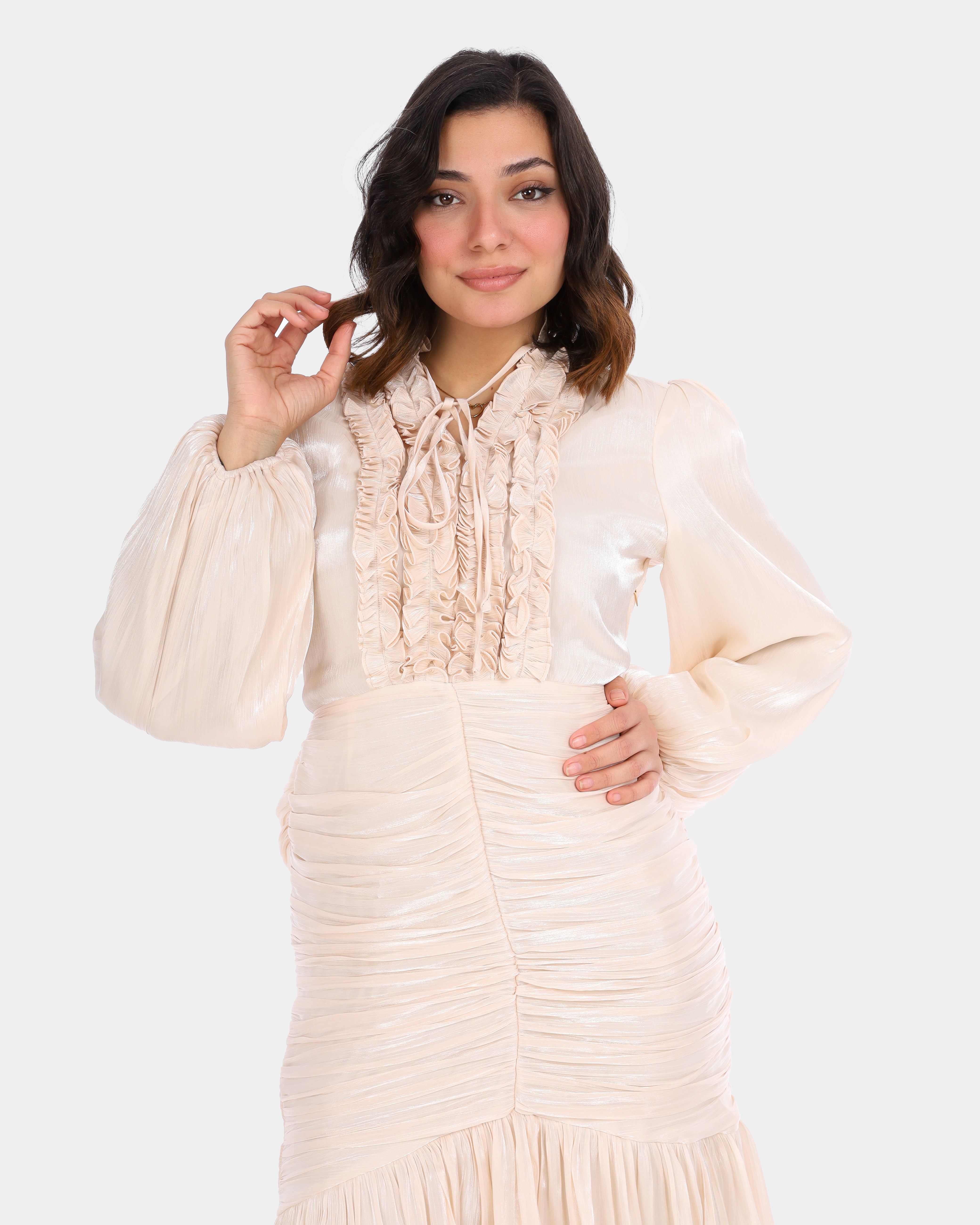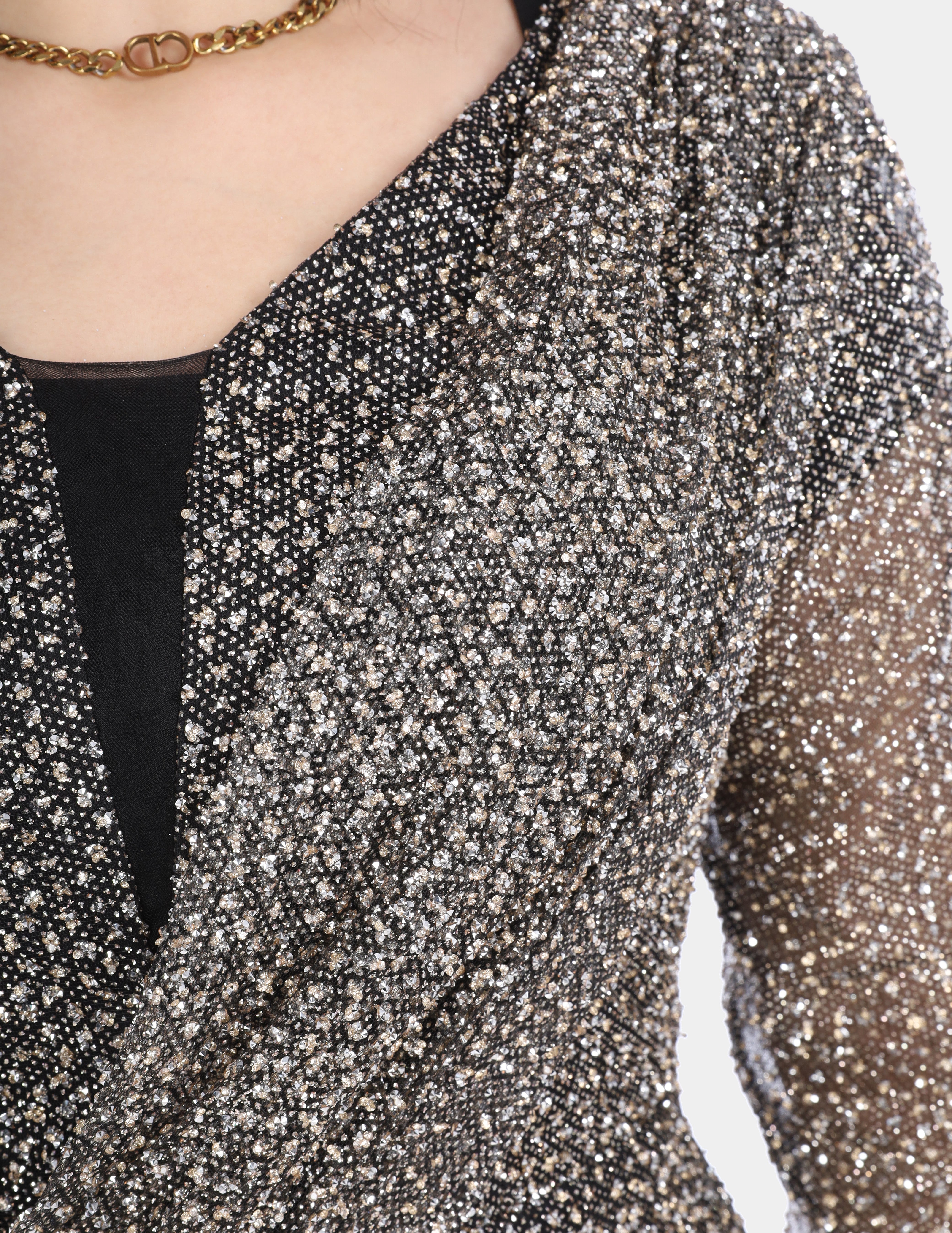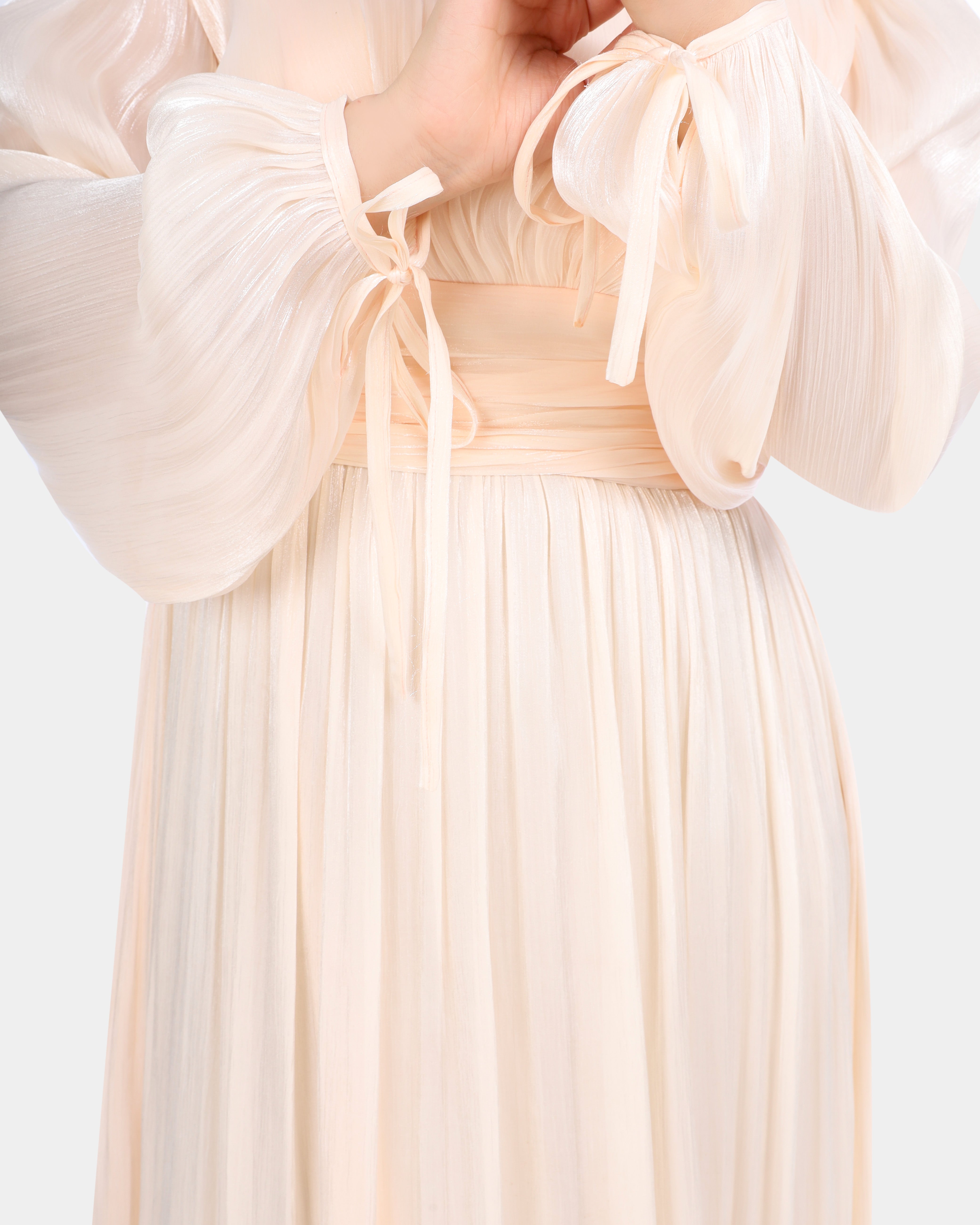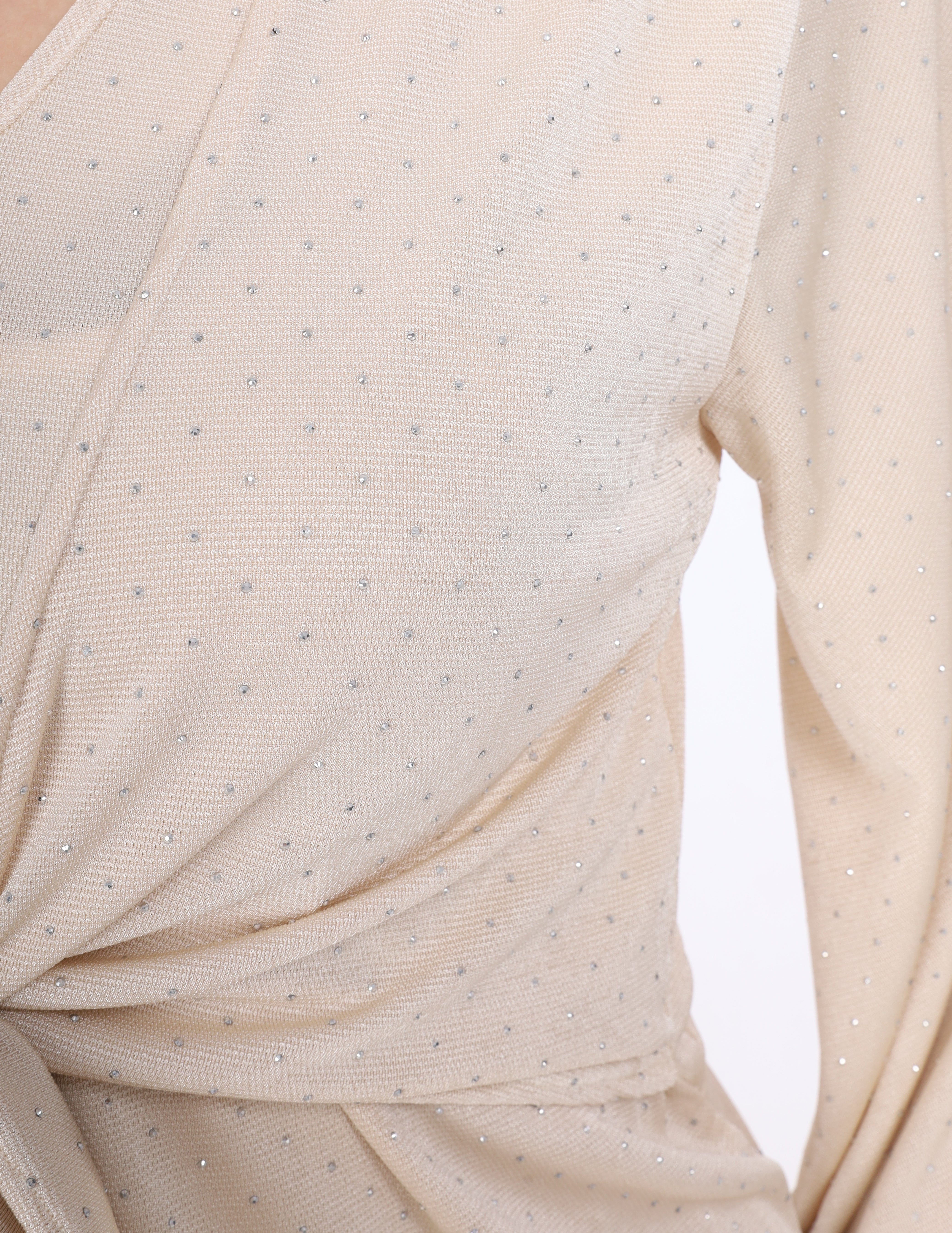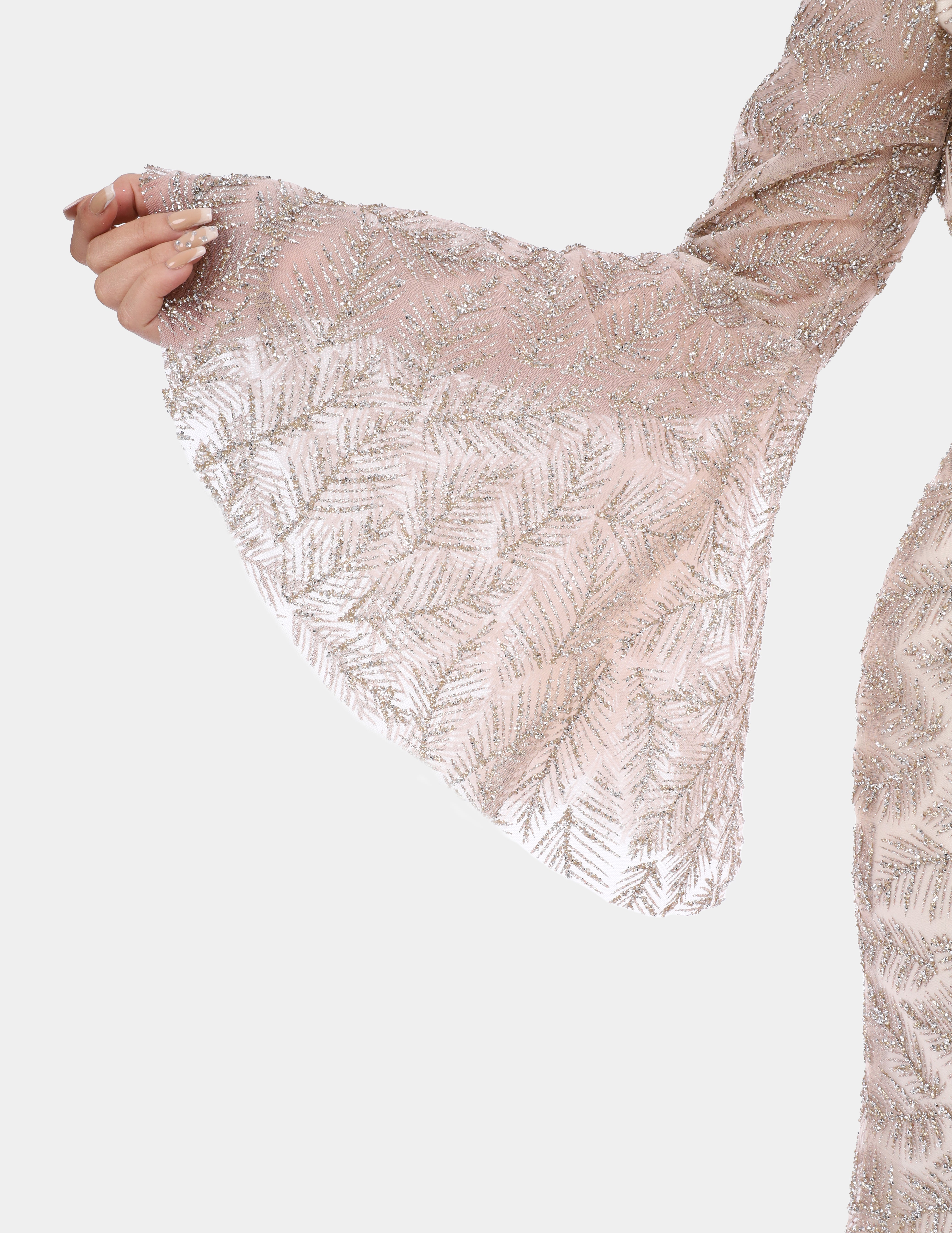 Beaded Tie-Front Elegant Set with Wide Sleeves w1649300