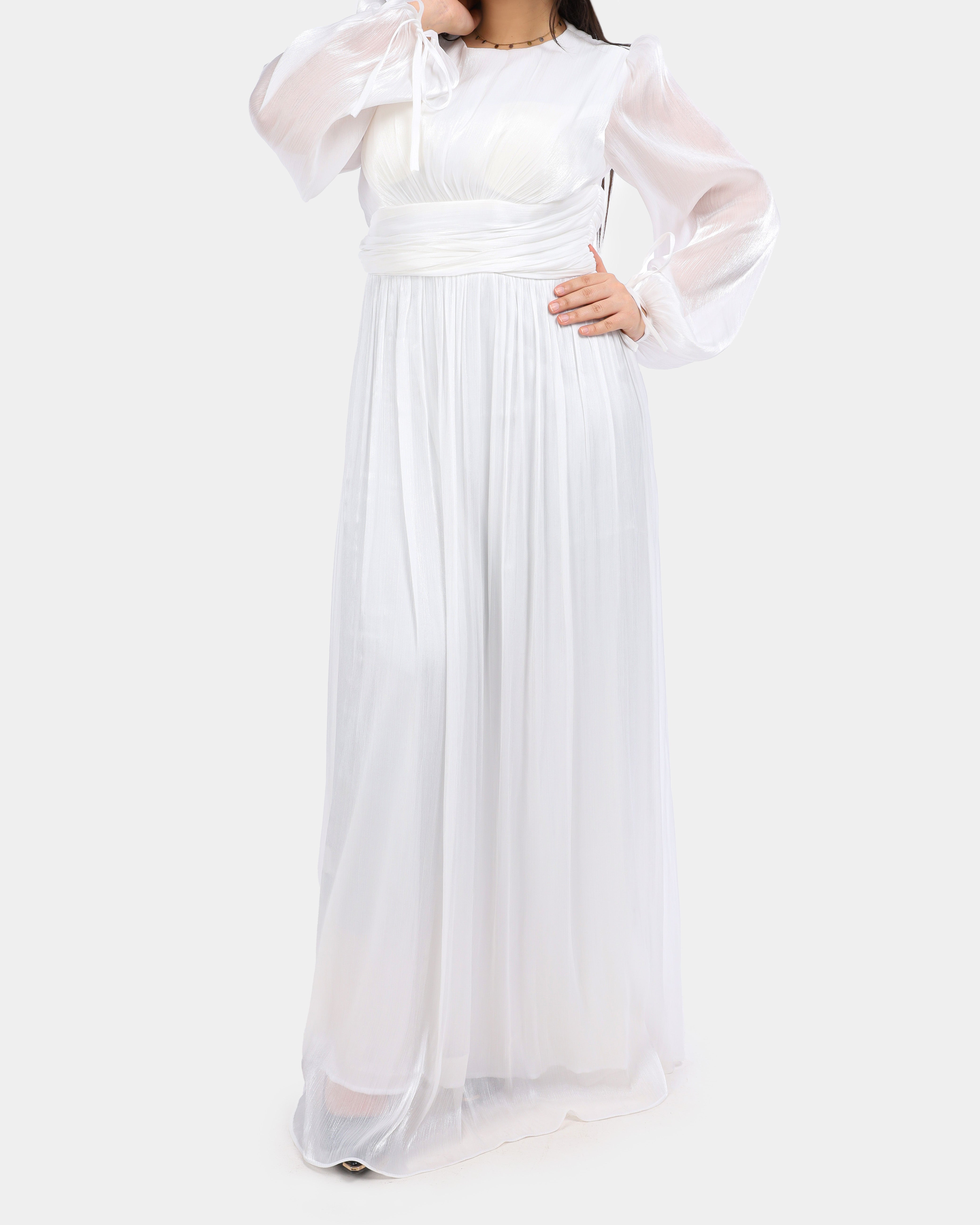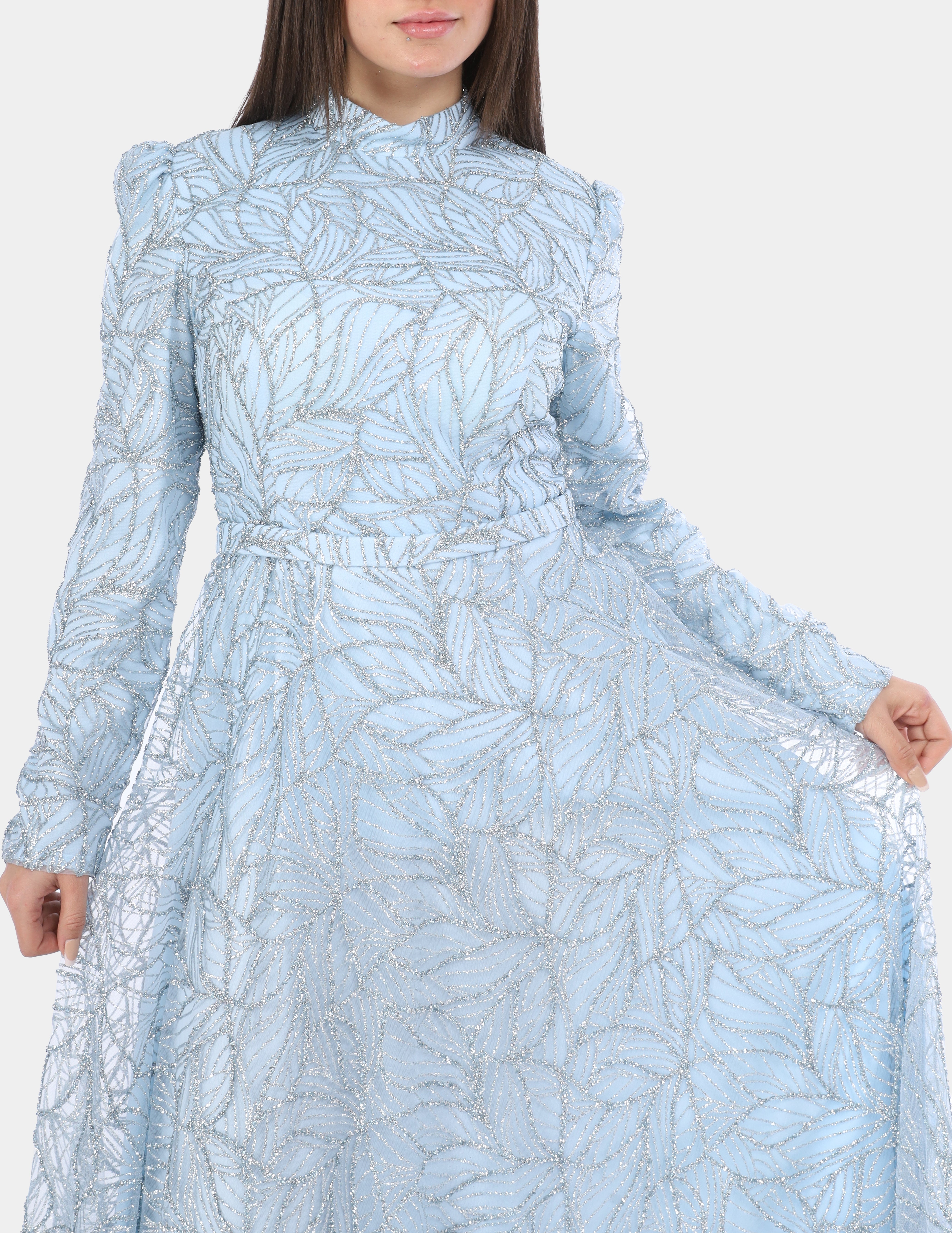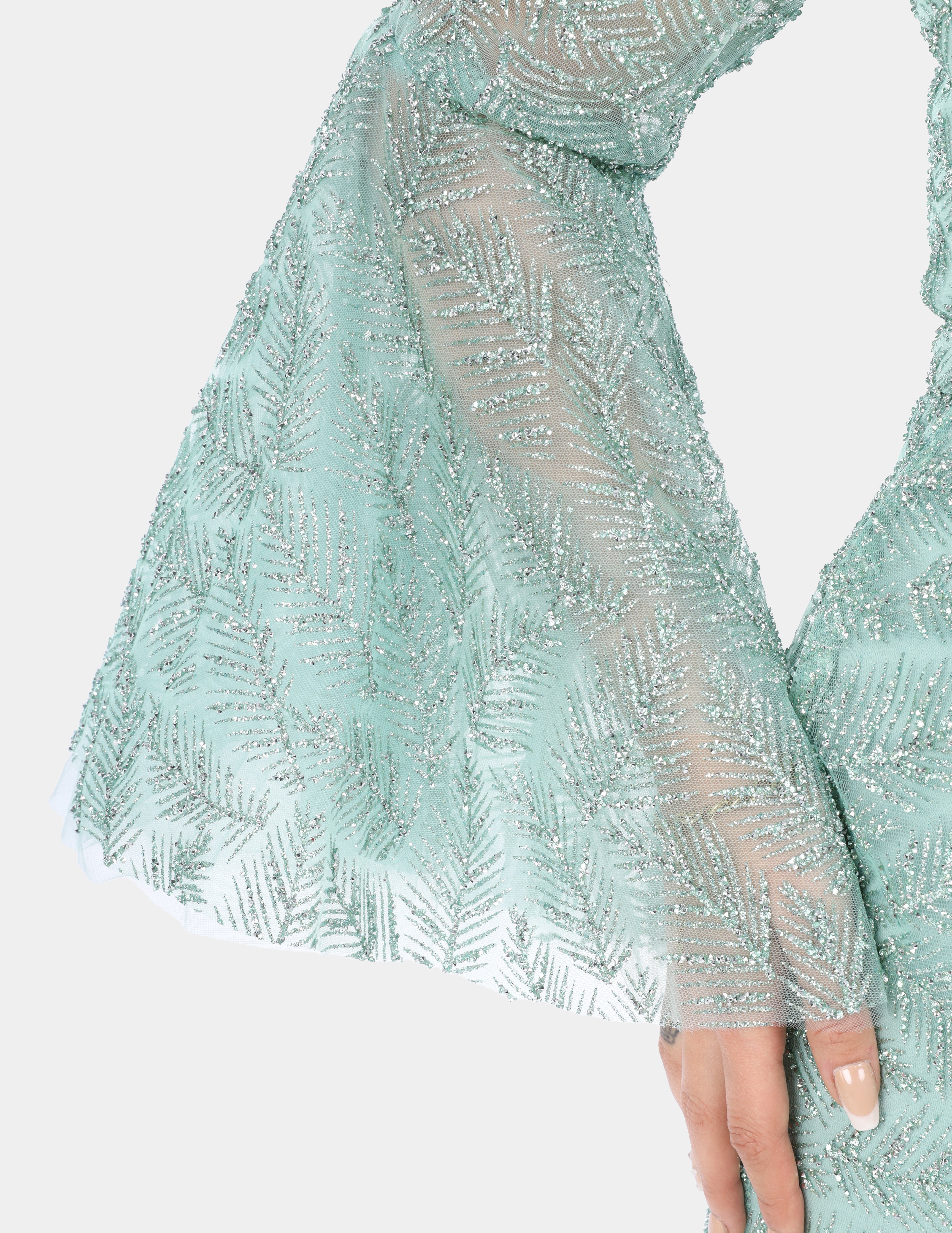 Elegant Evening Dress with Embroidered Sleeves w941700