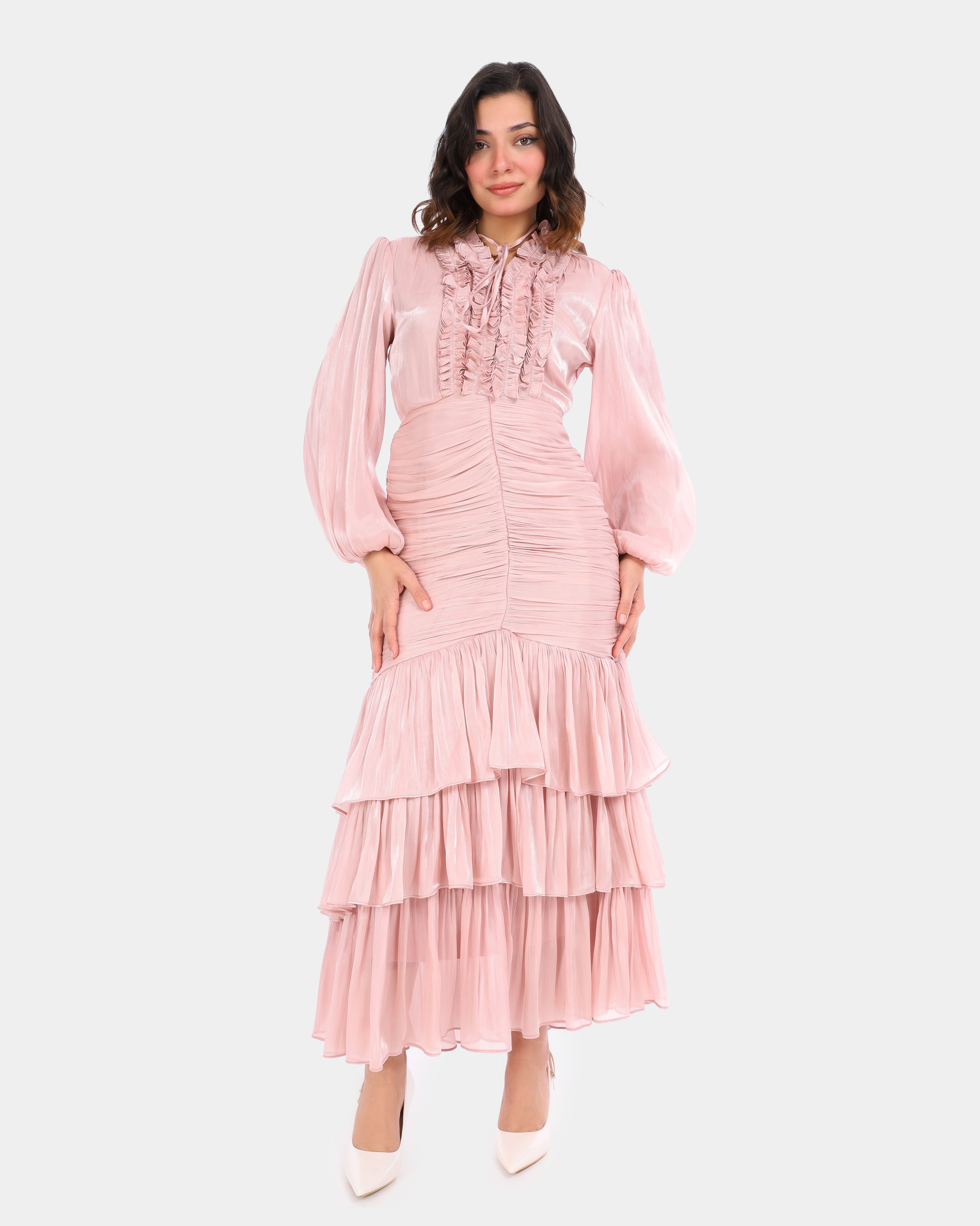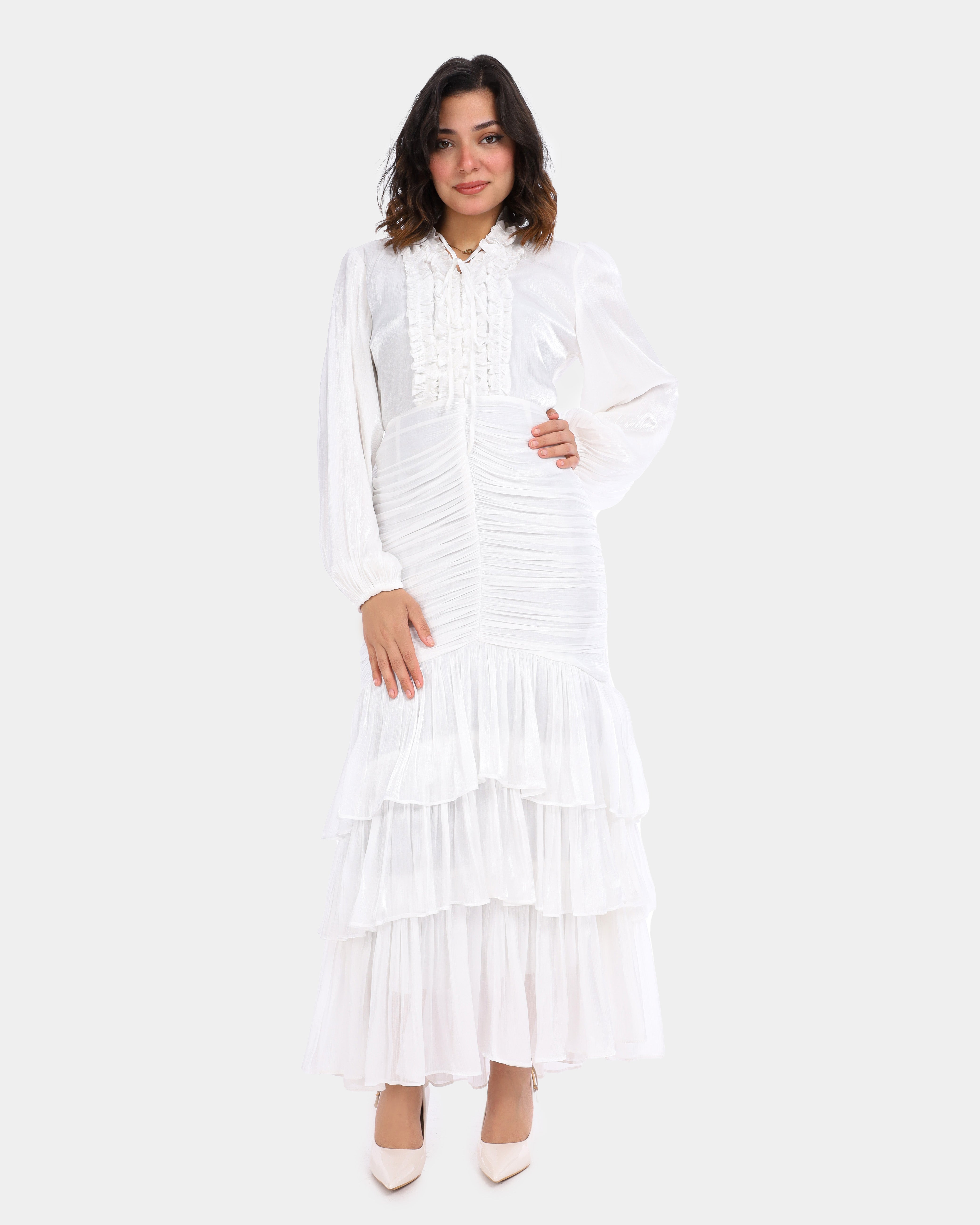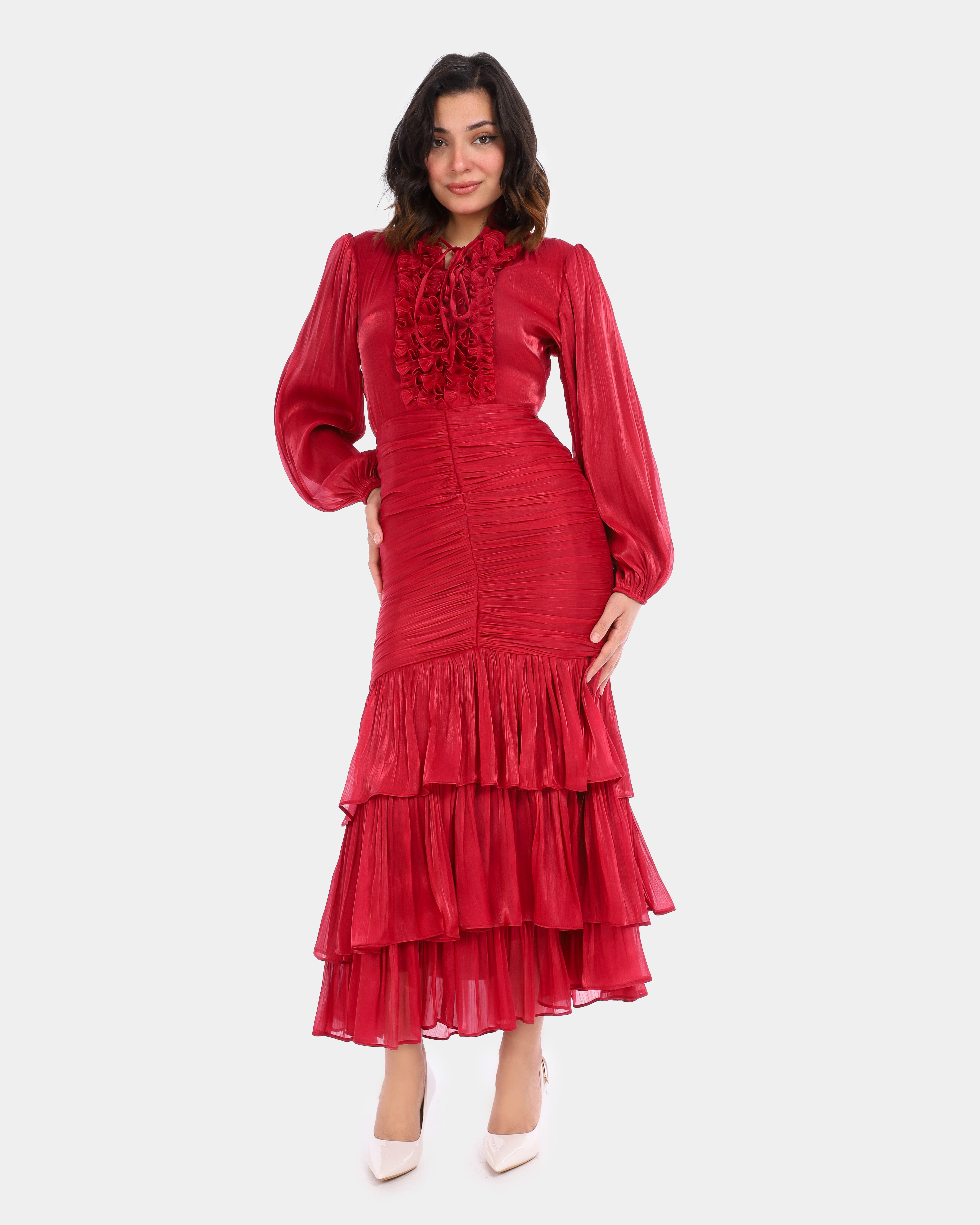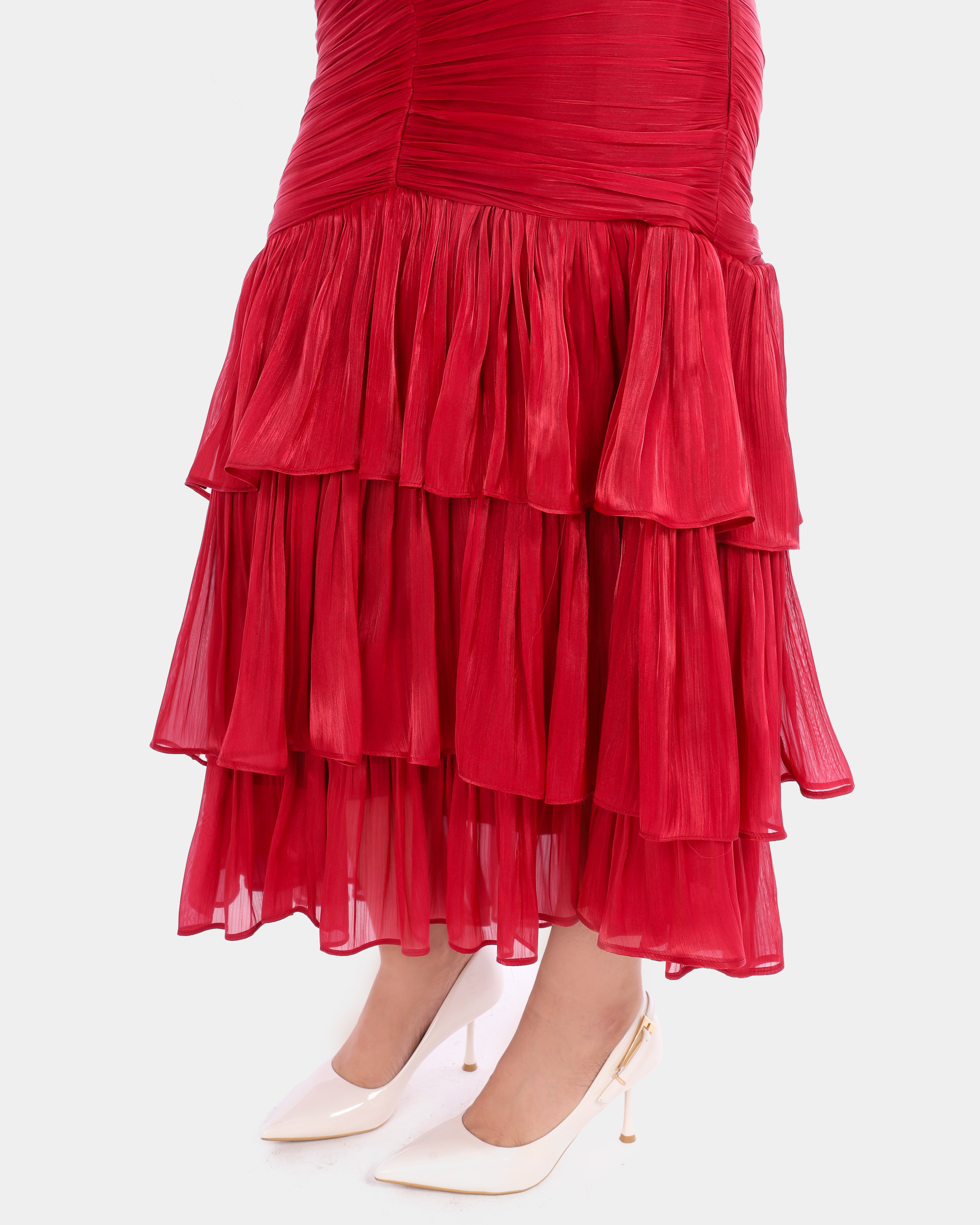 Elegant Ruffled Tiered Chiffon Midi Dress w16381001
