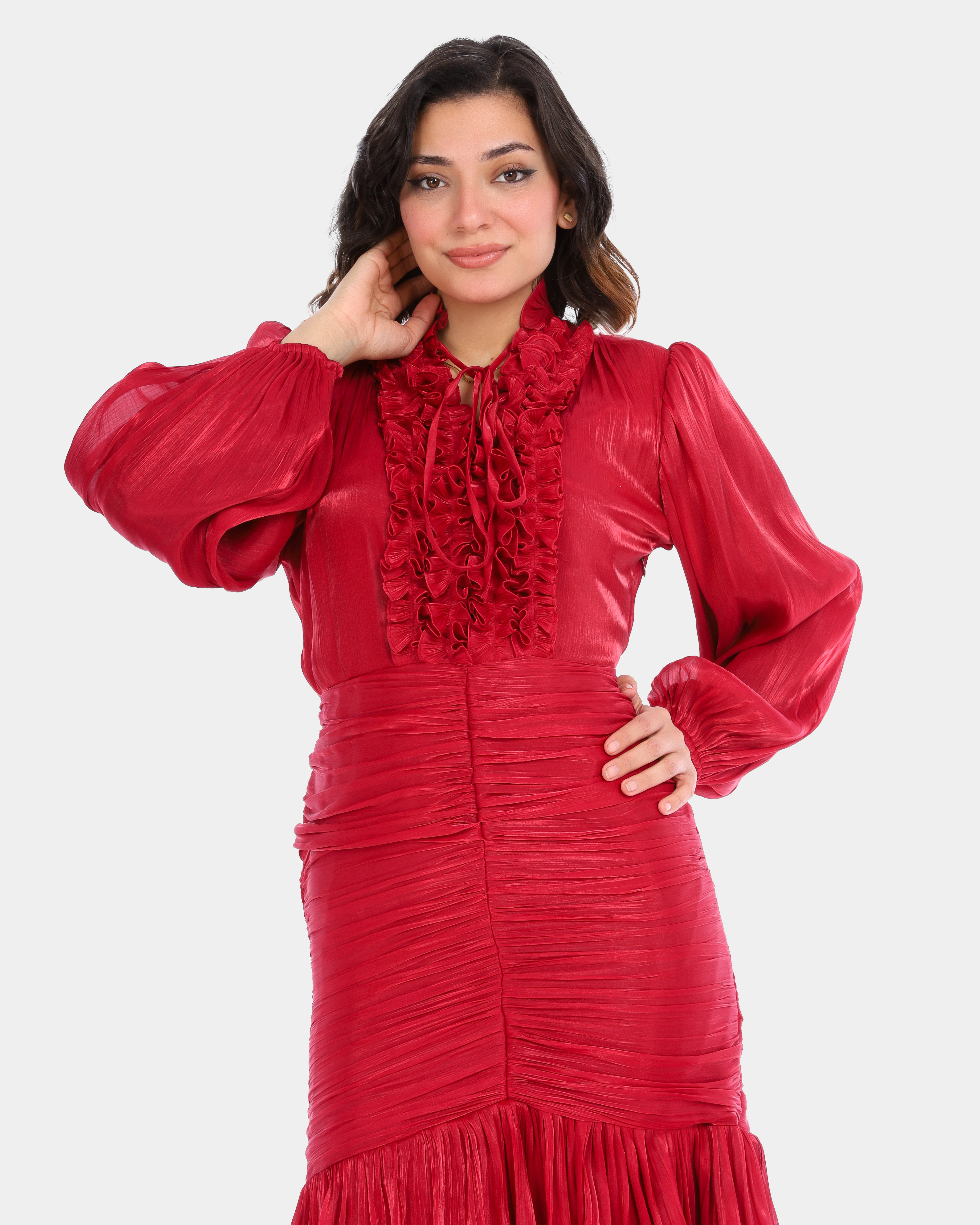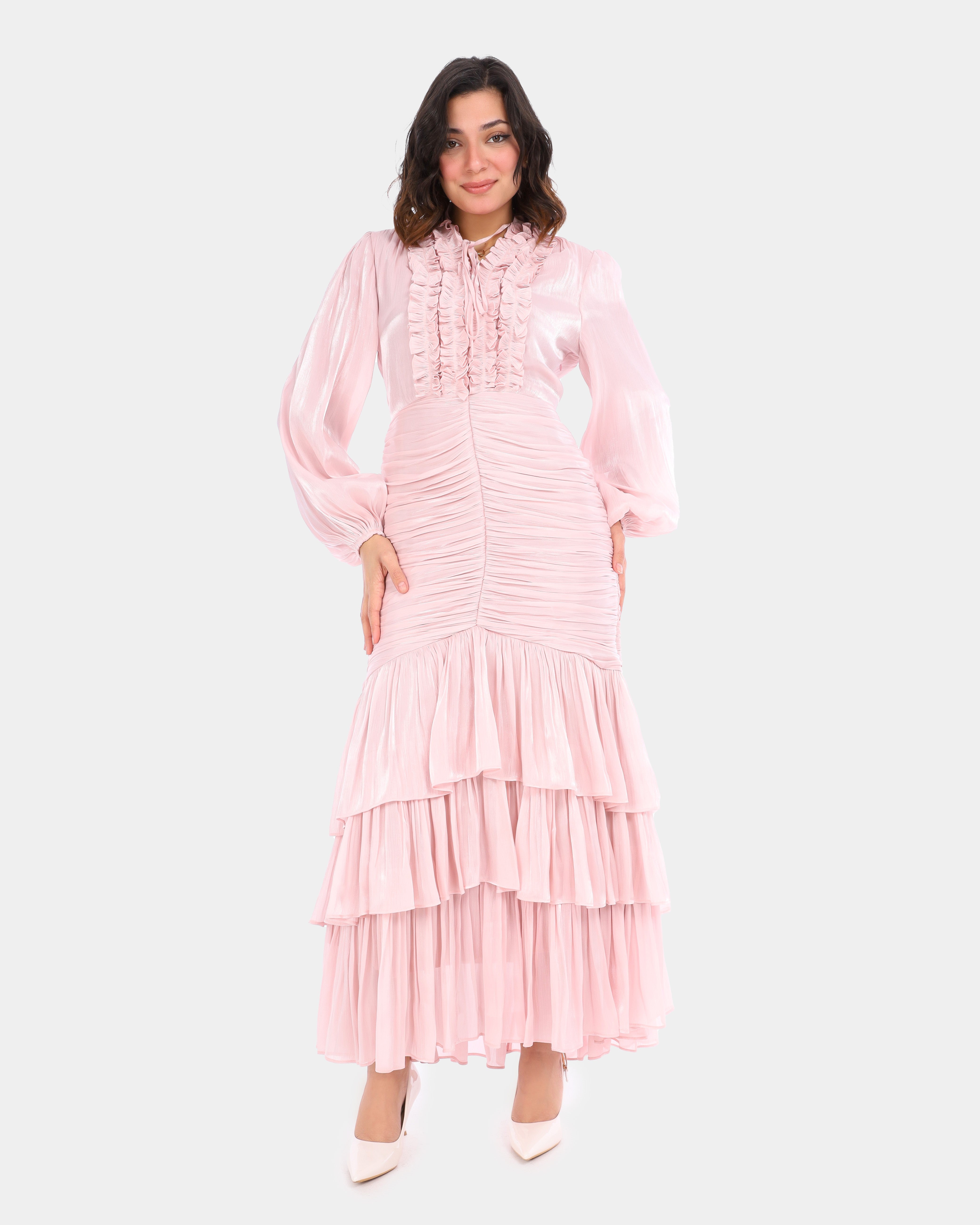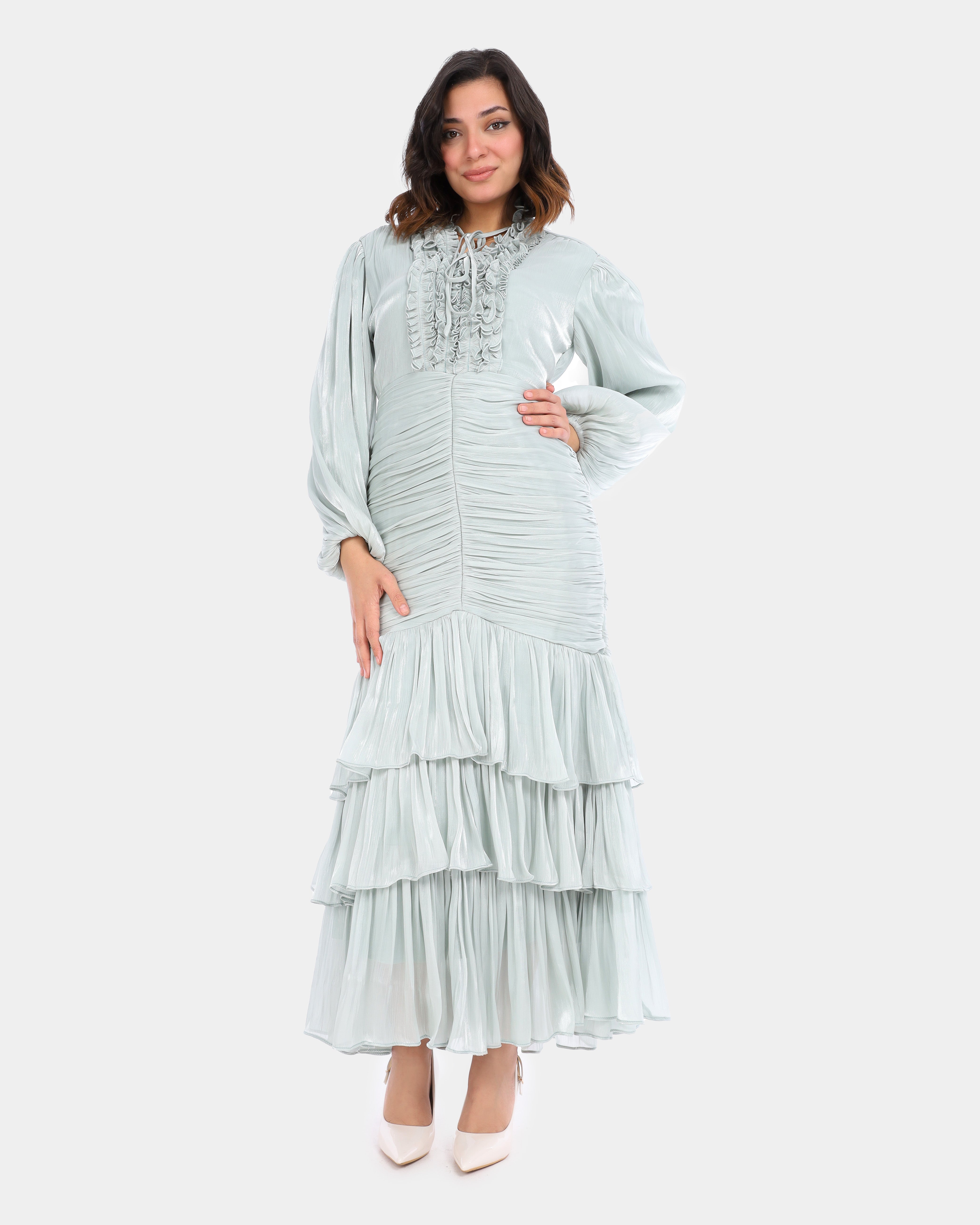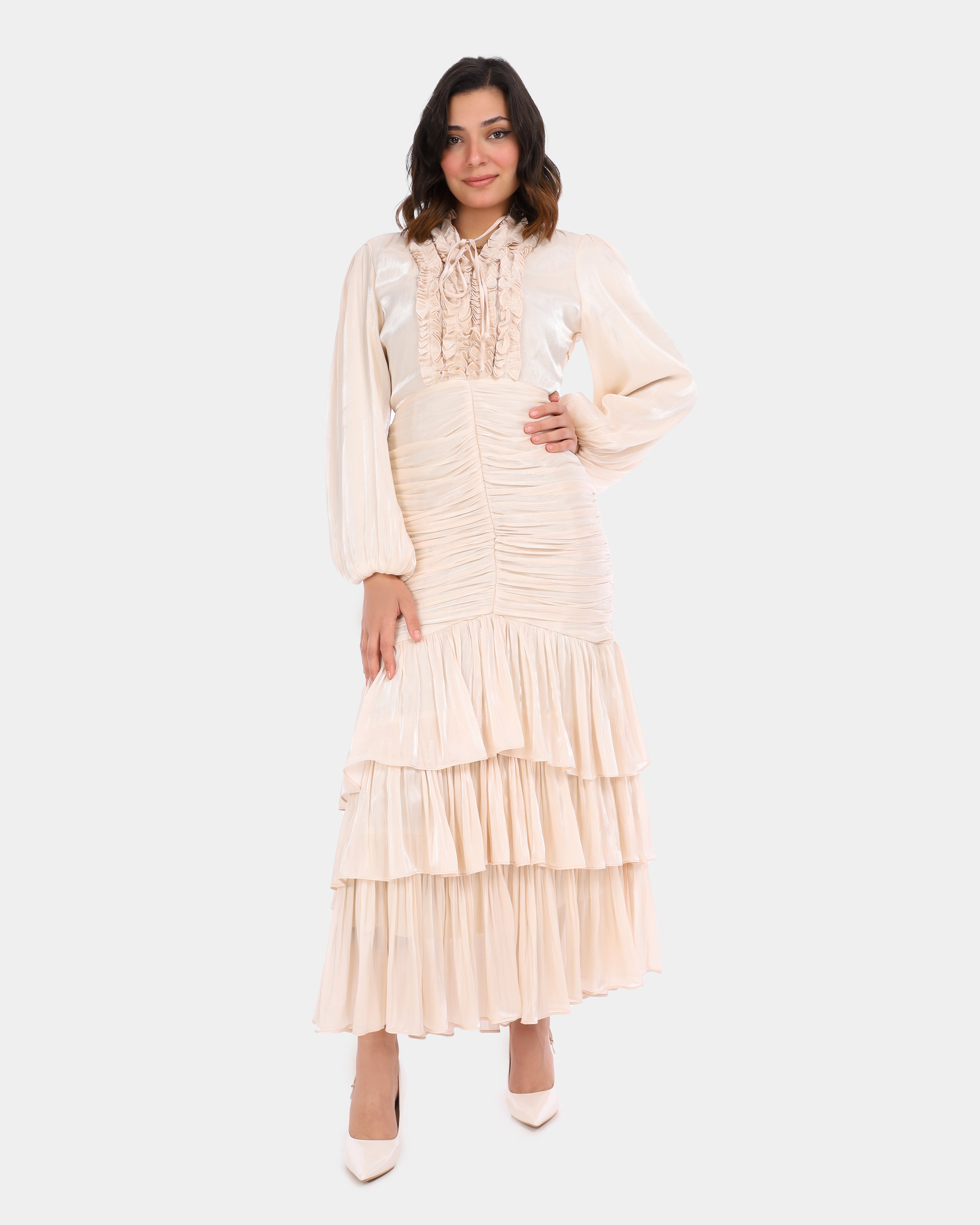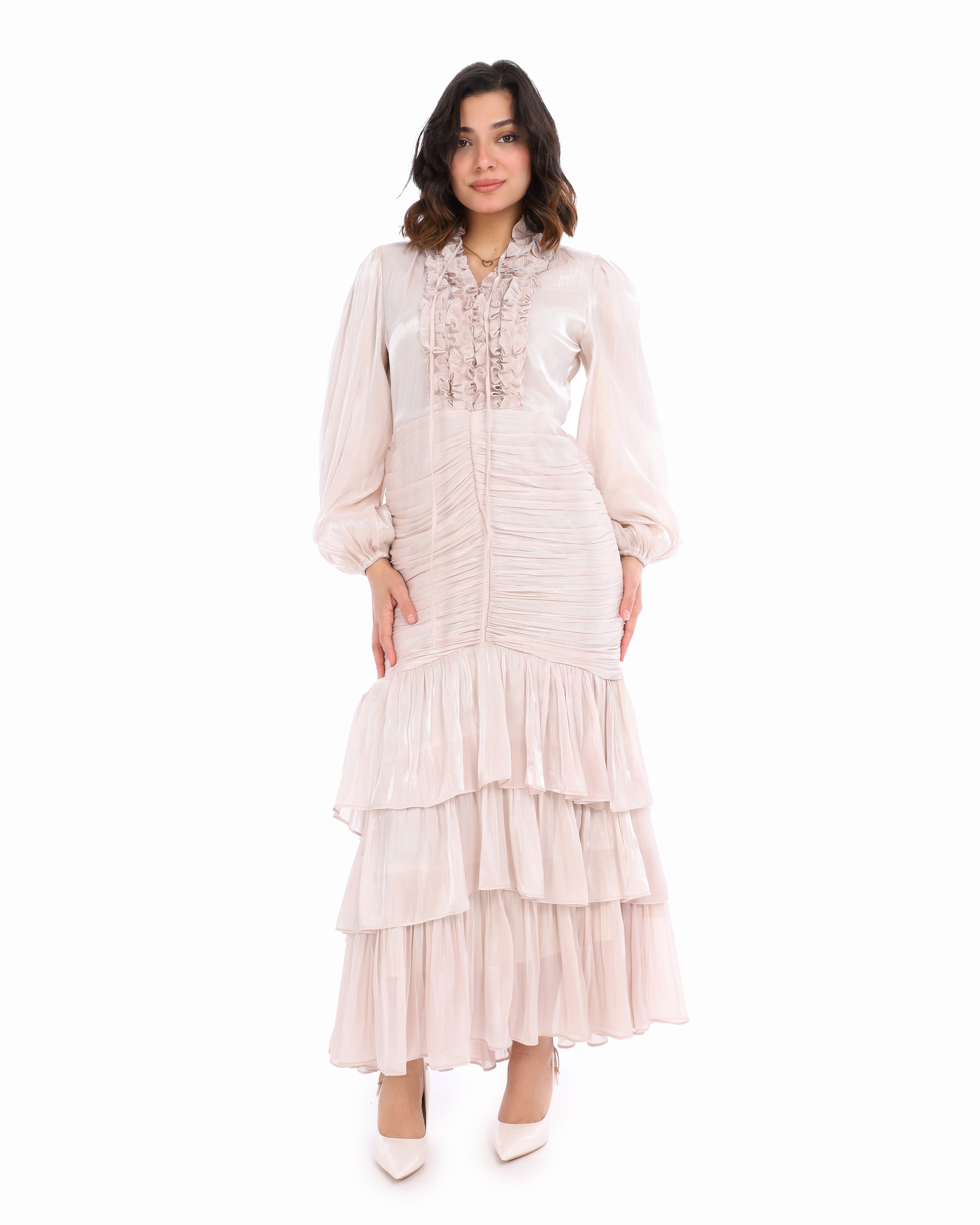 Elegant Ruffled Tiered Chiffon Midi Dress w16381001