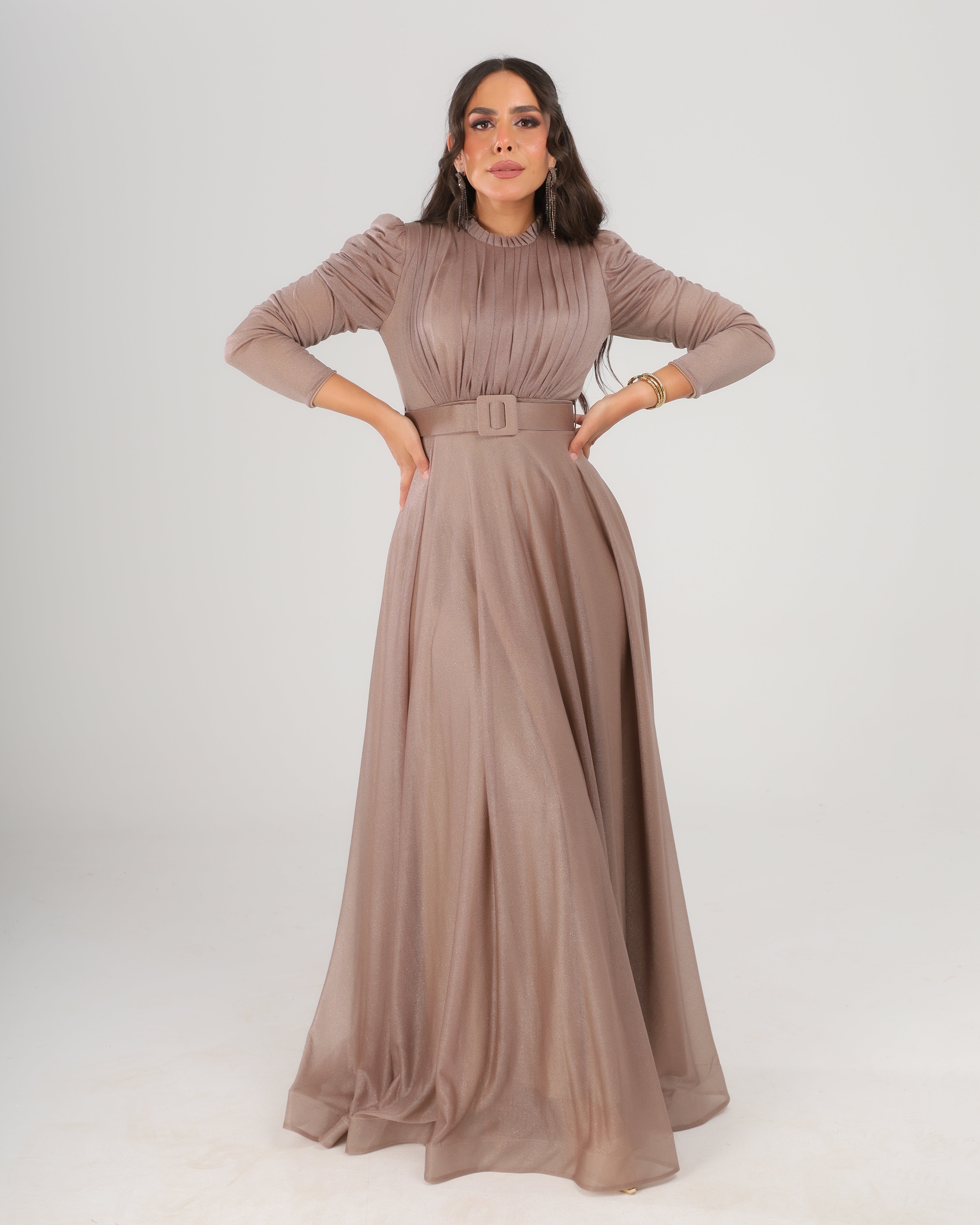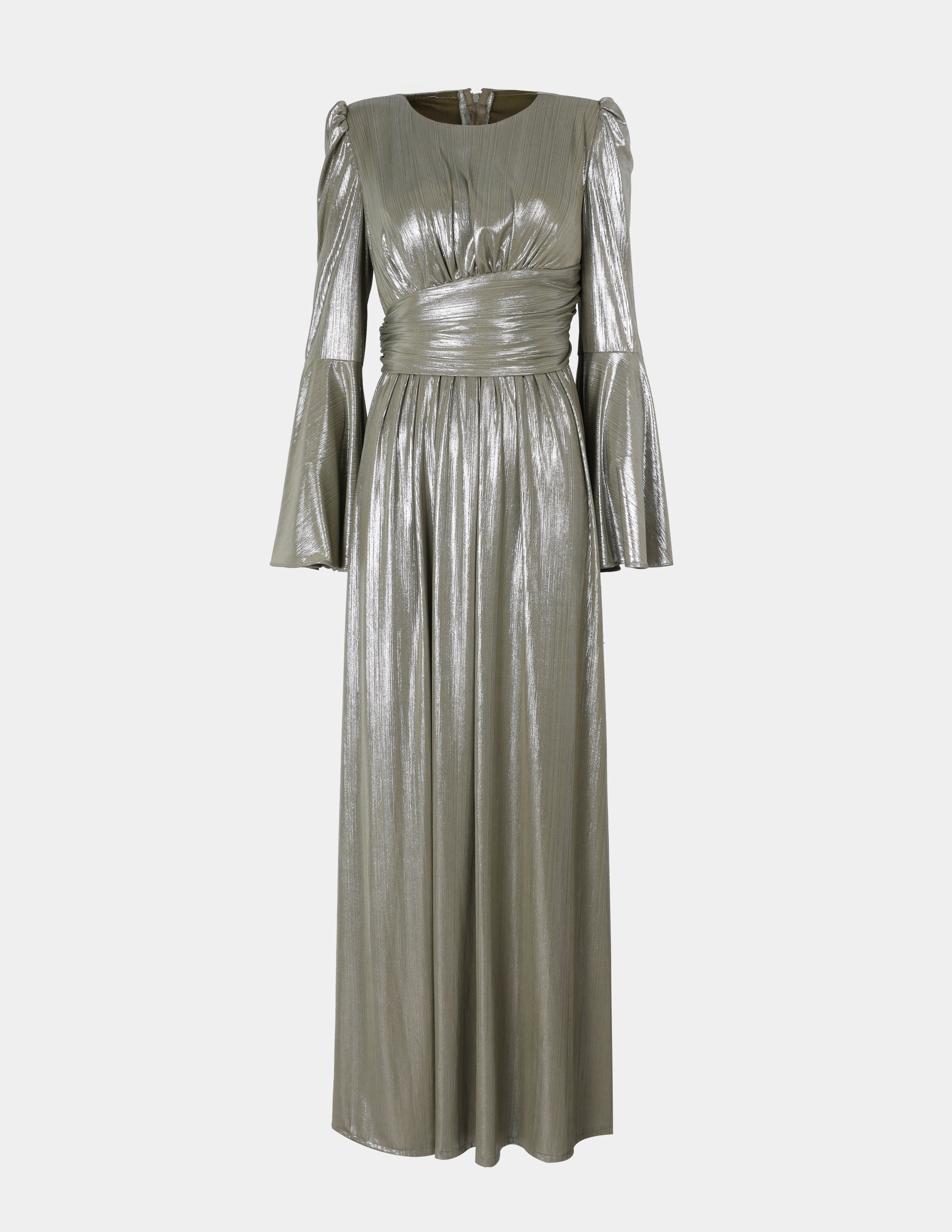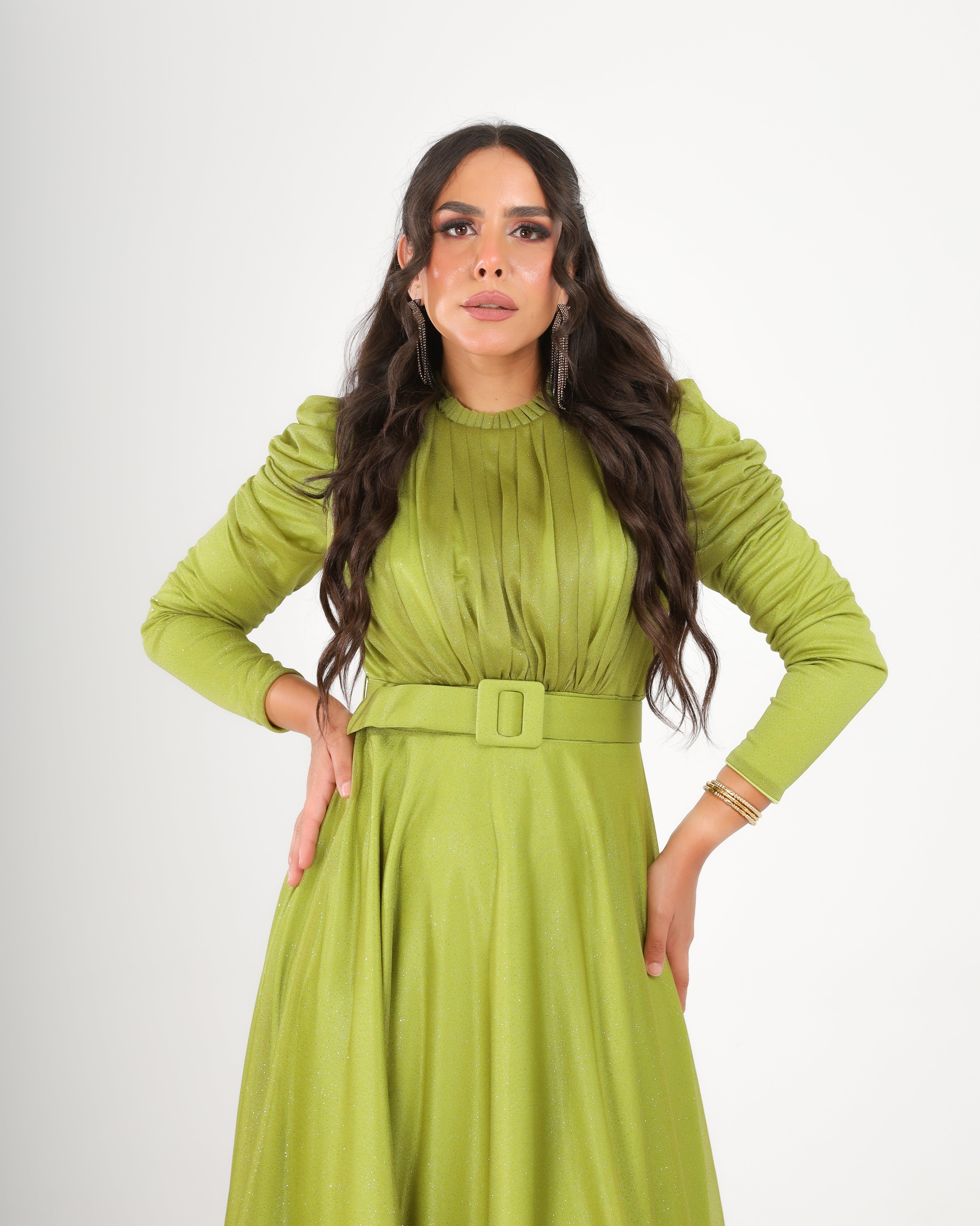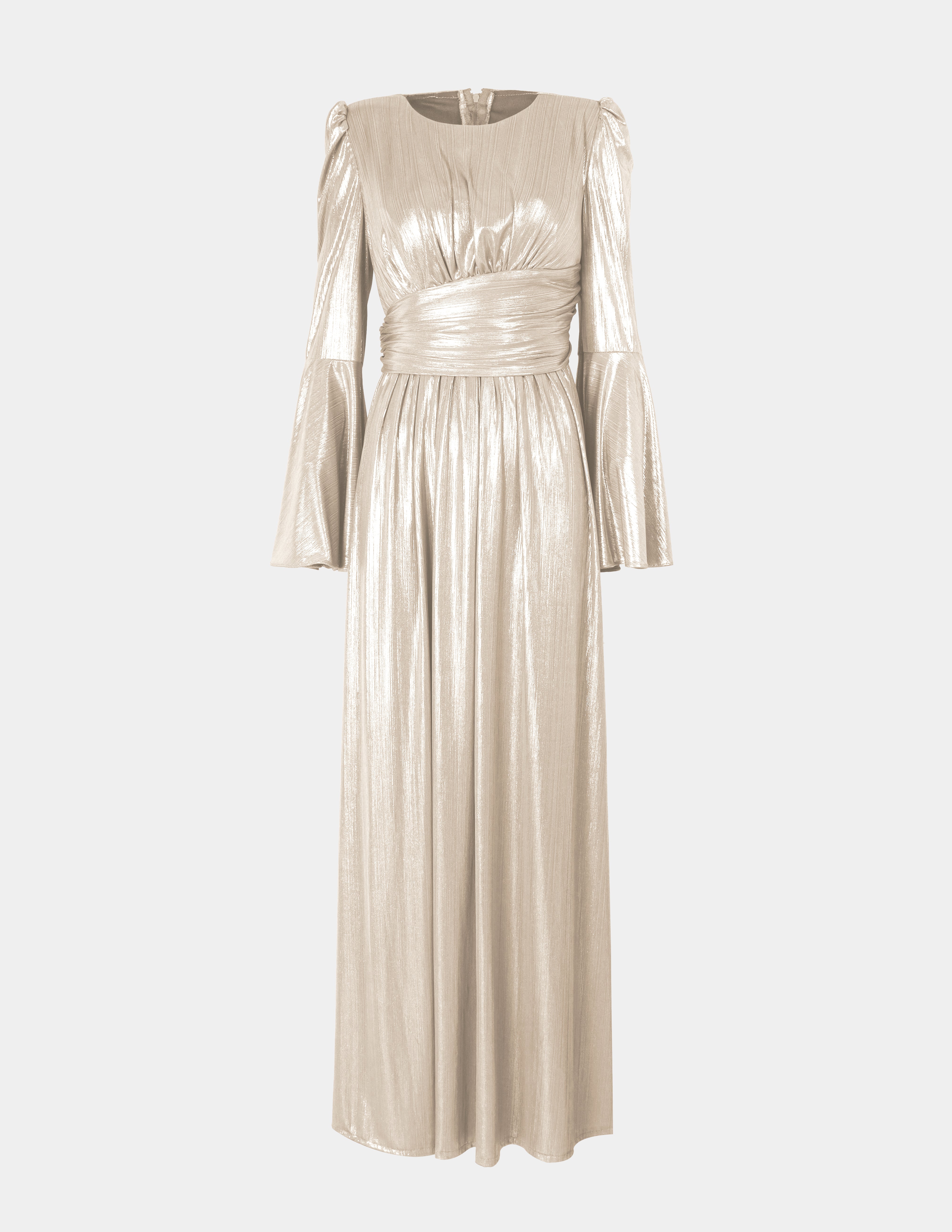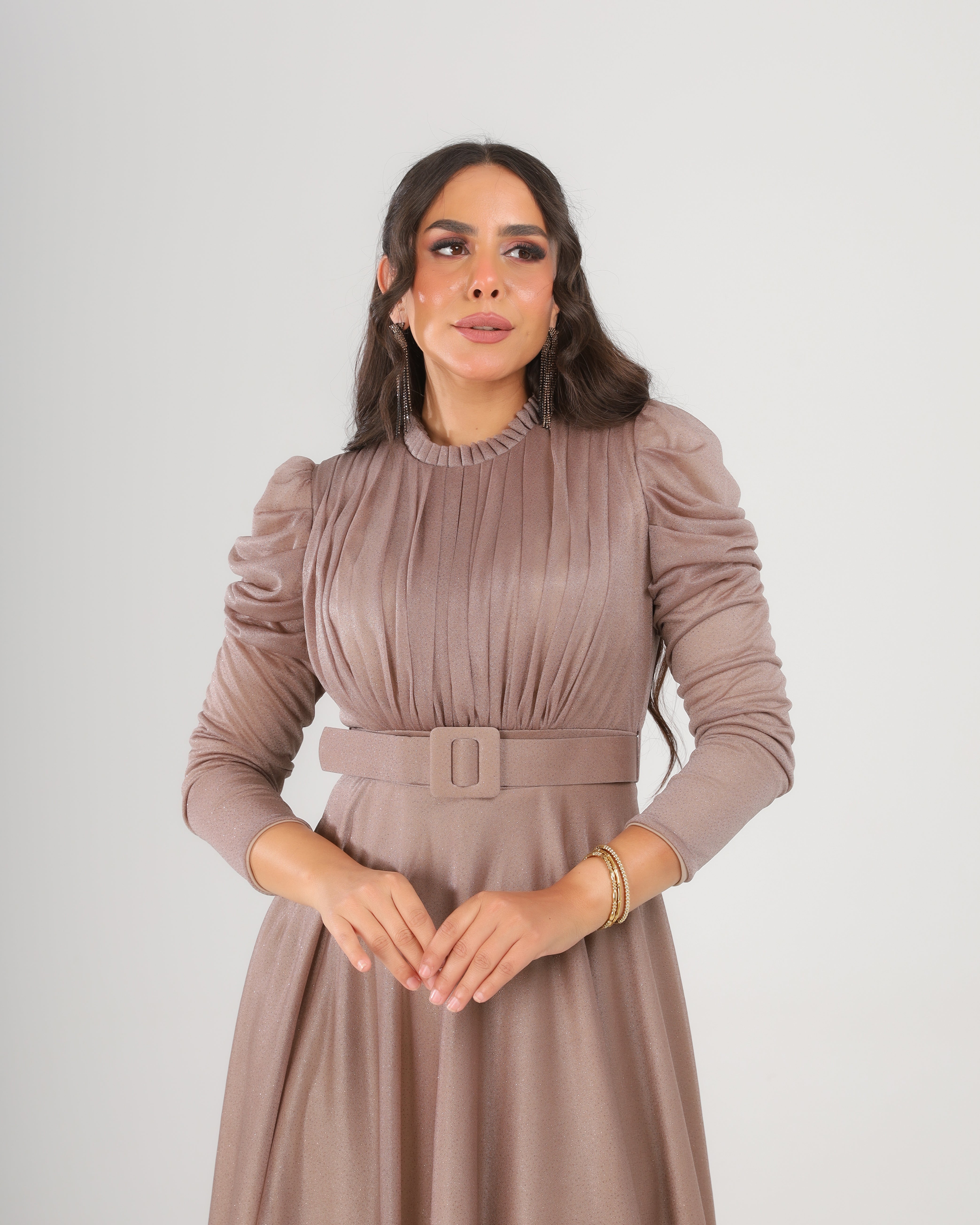 Shimmer Pleated Maxi Dress with Belt s7031140