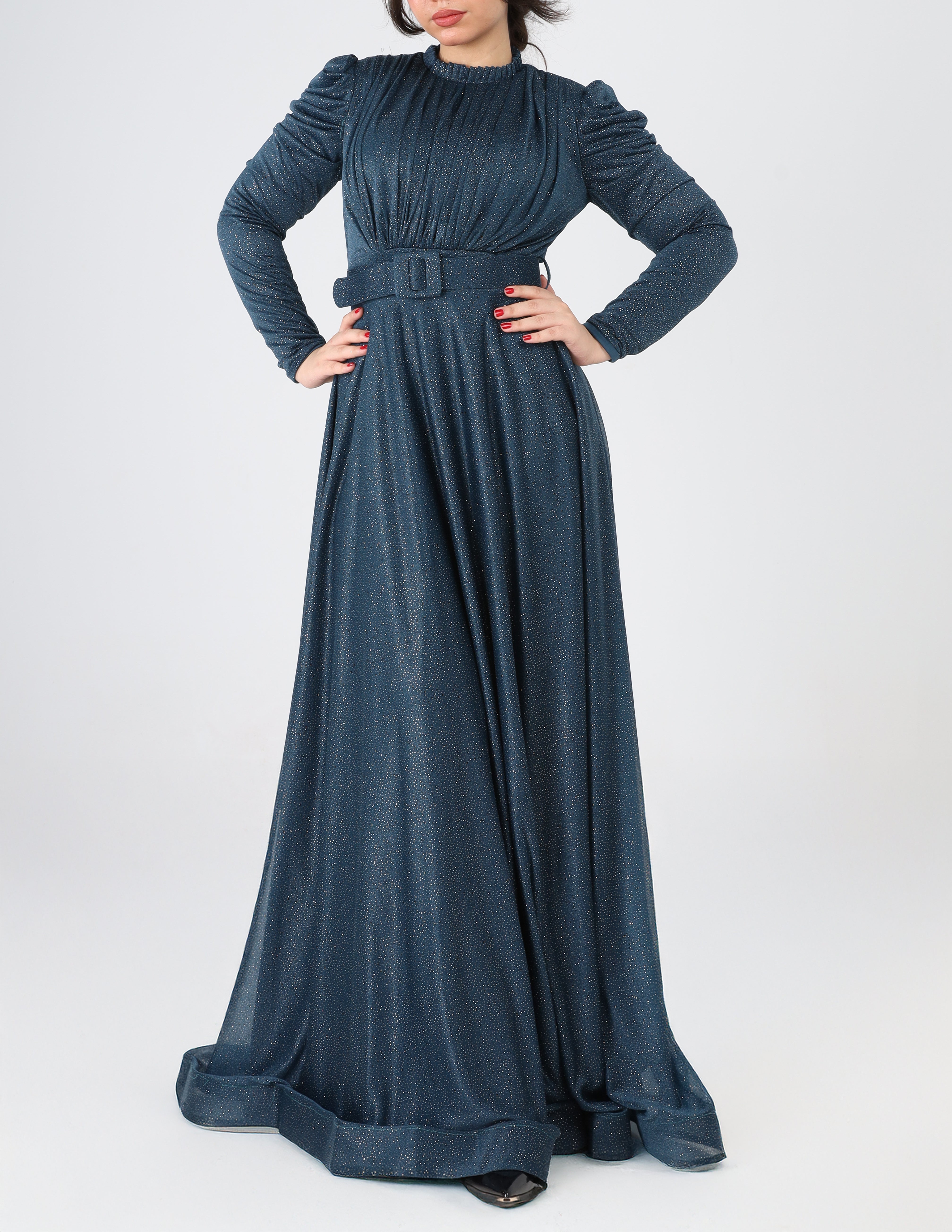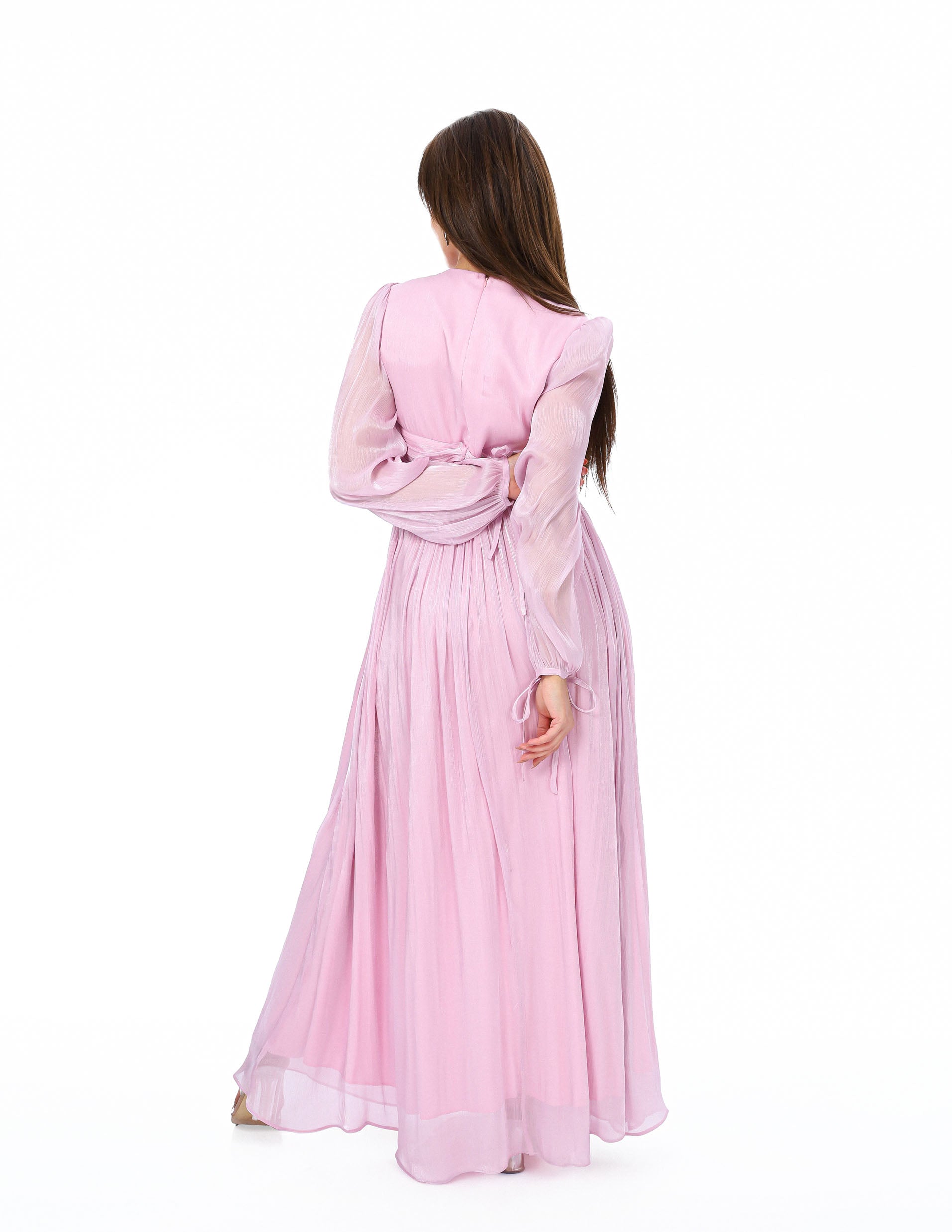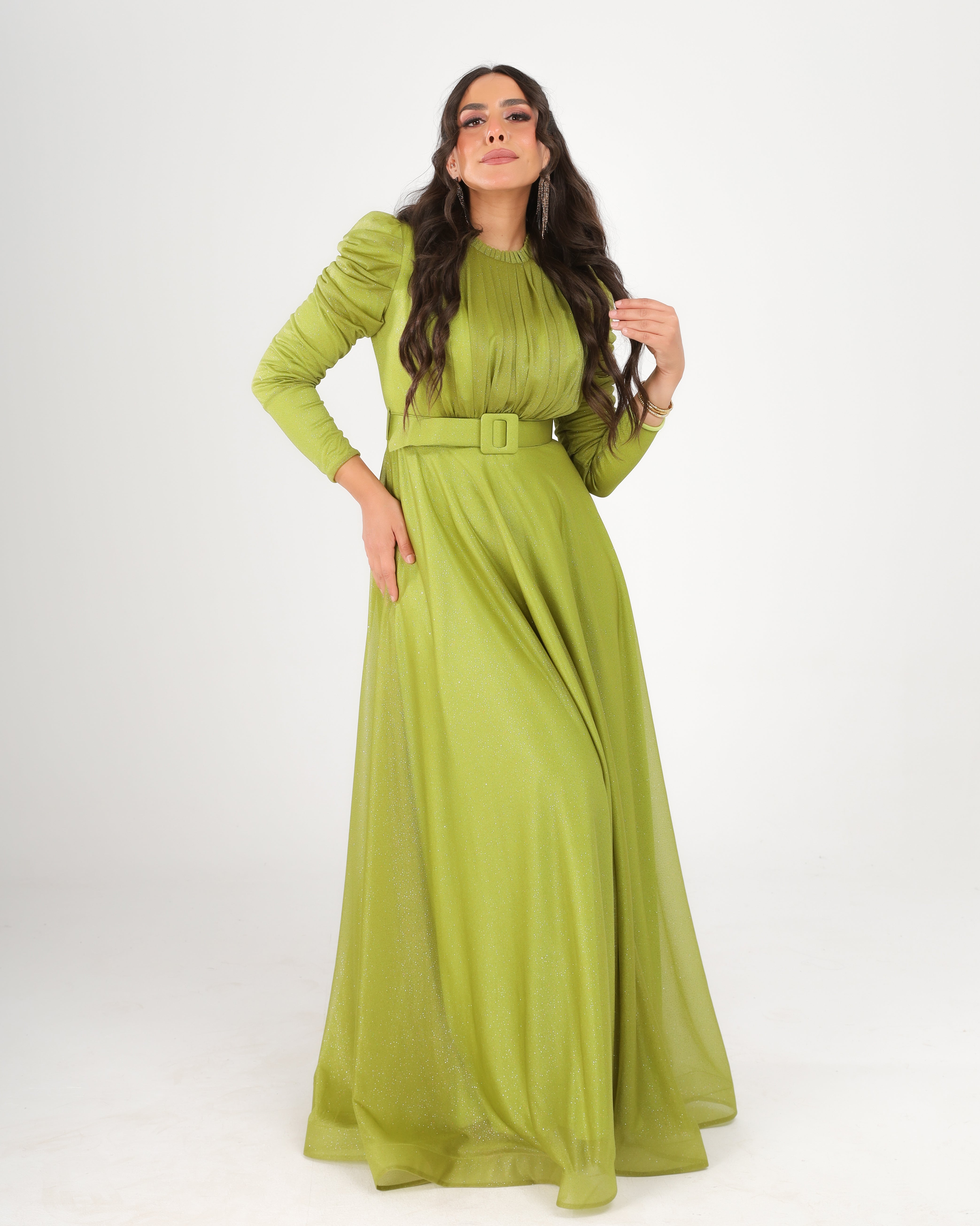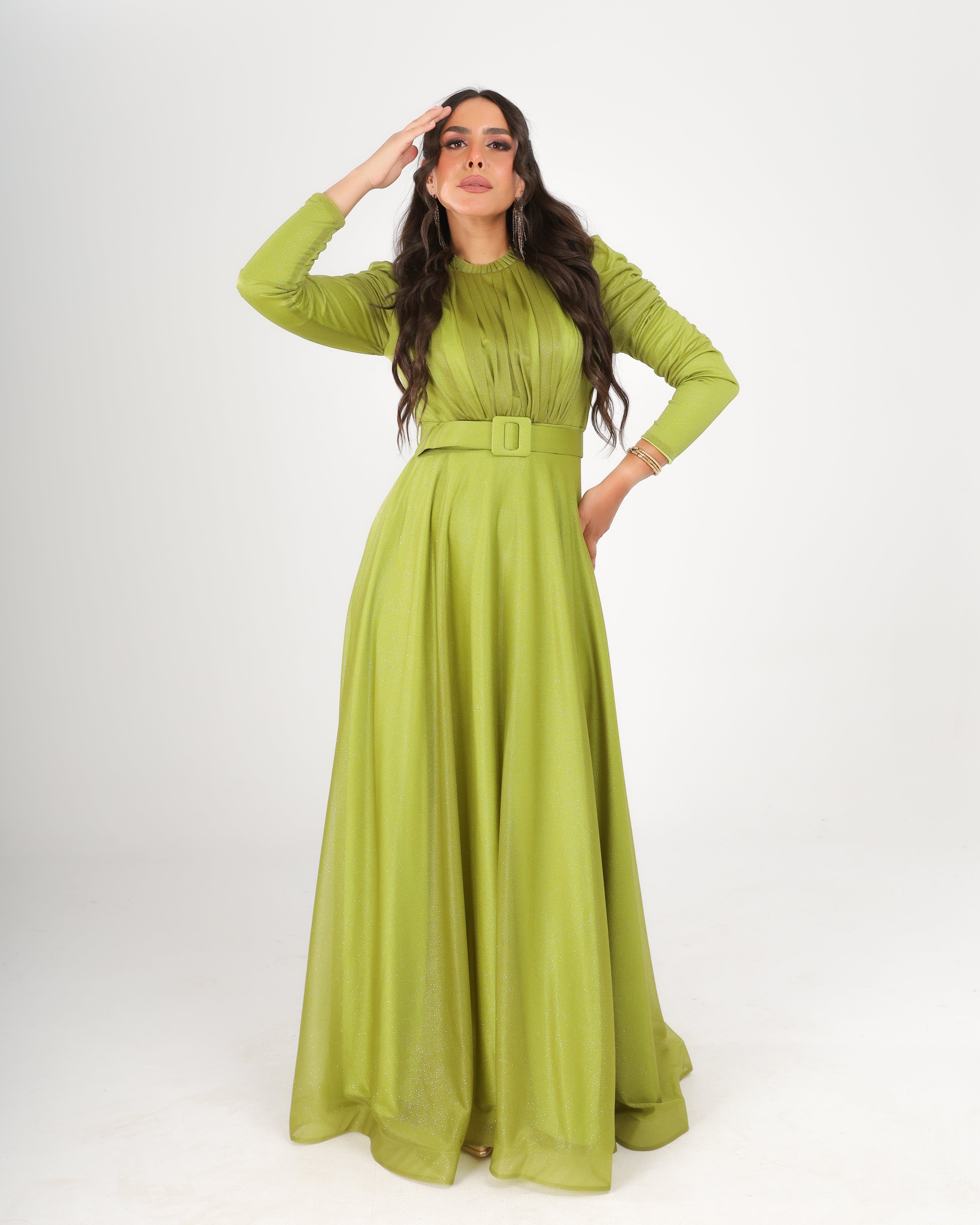Shimmer Pleated Maxi Dress with Belt s7031140