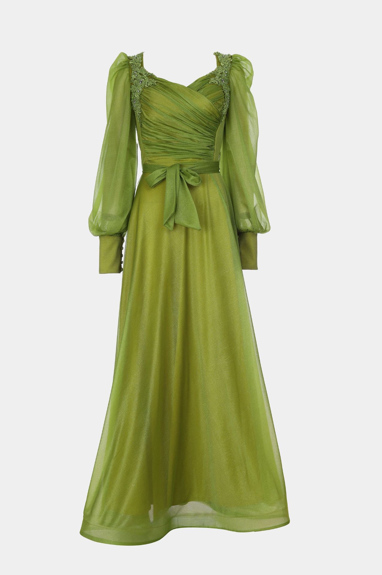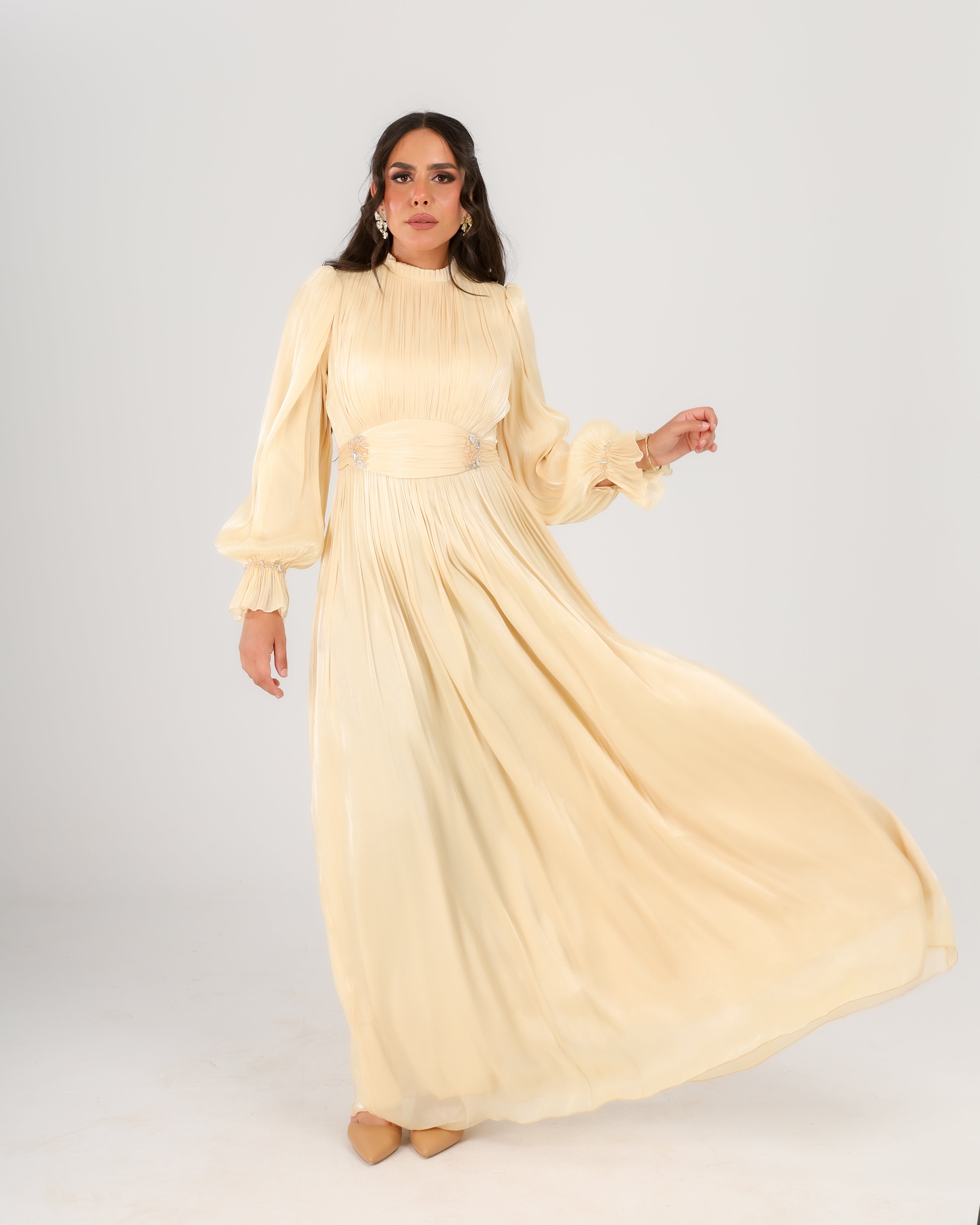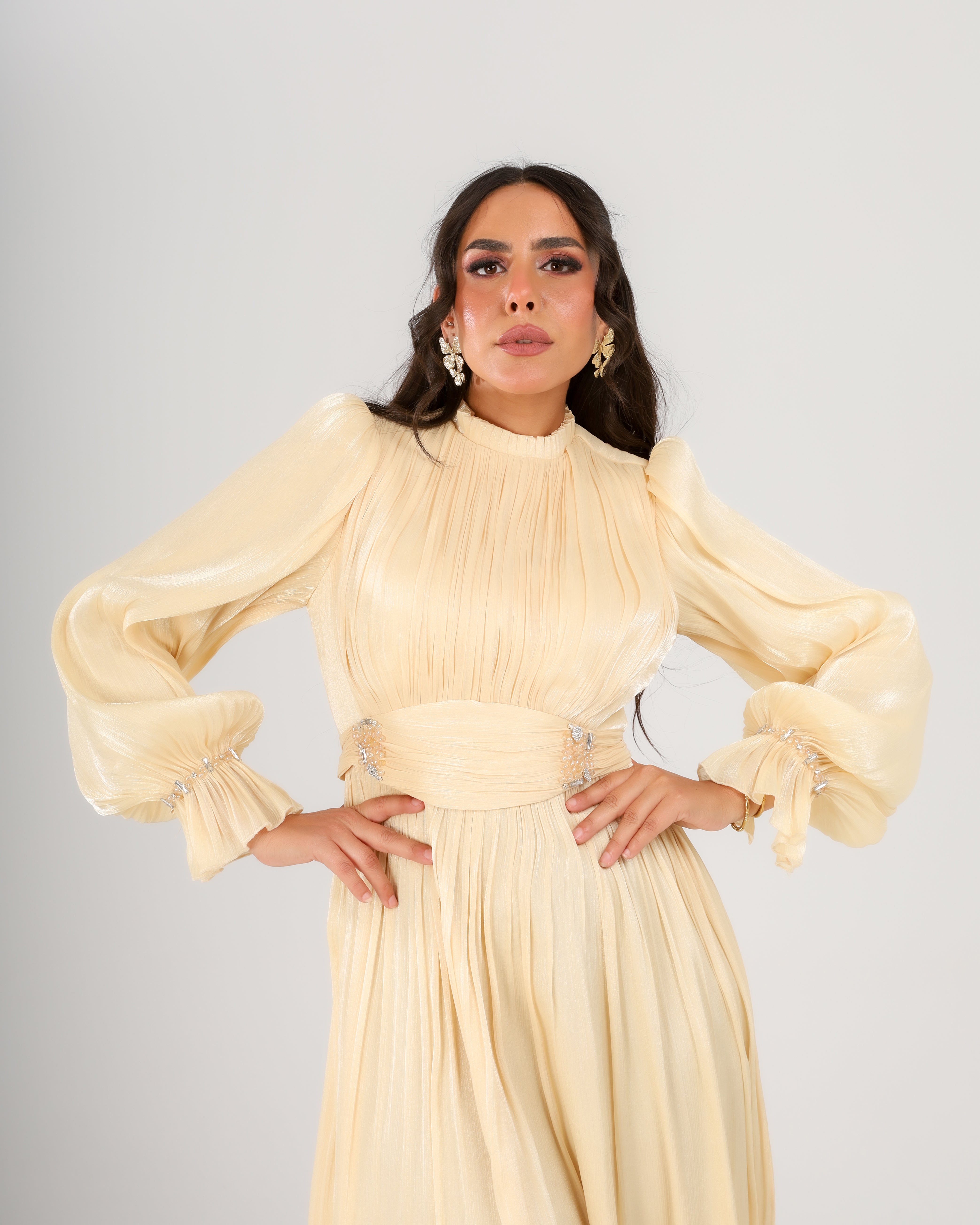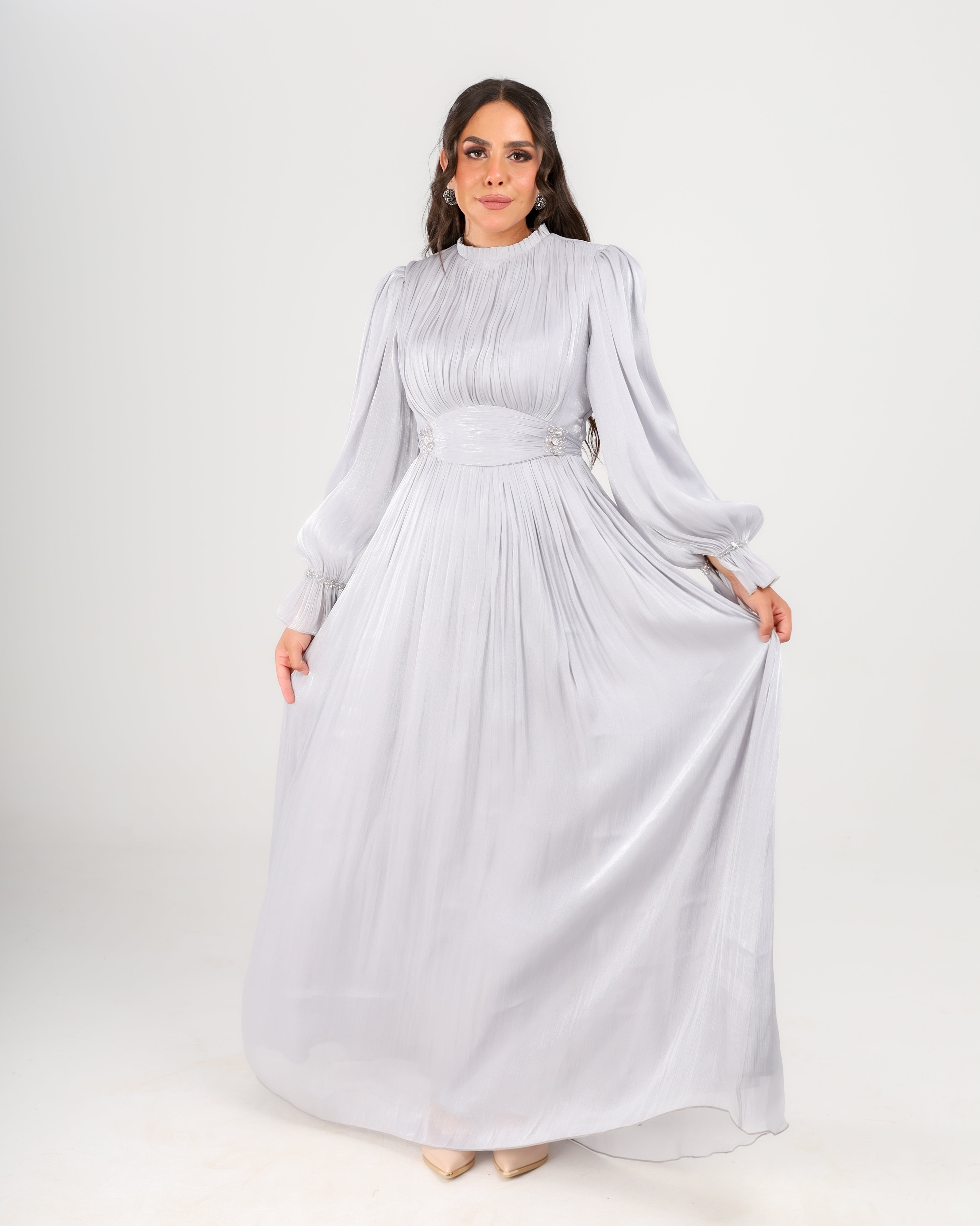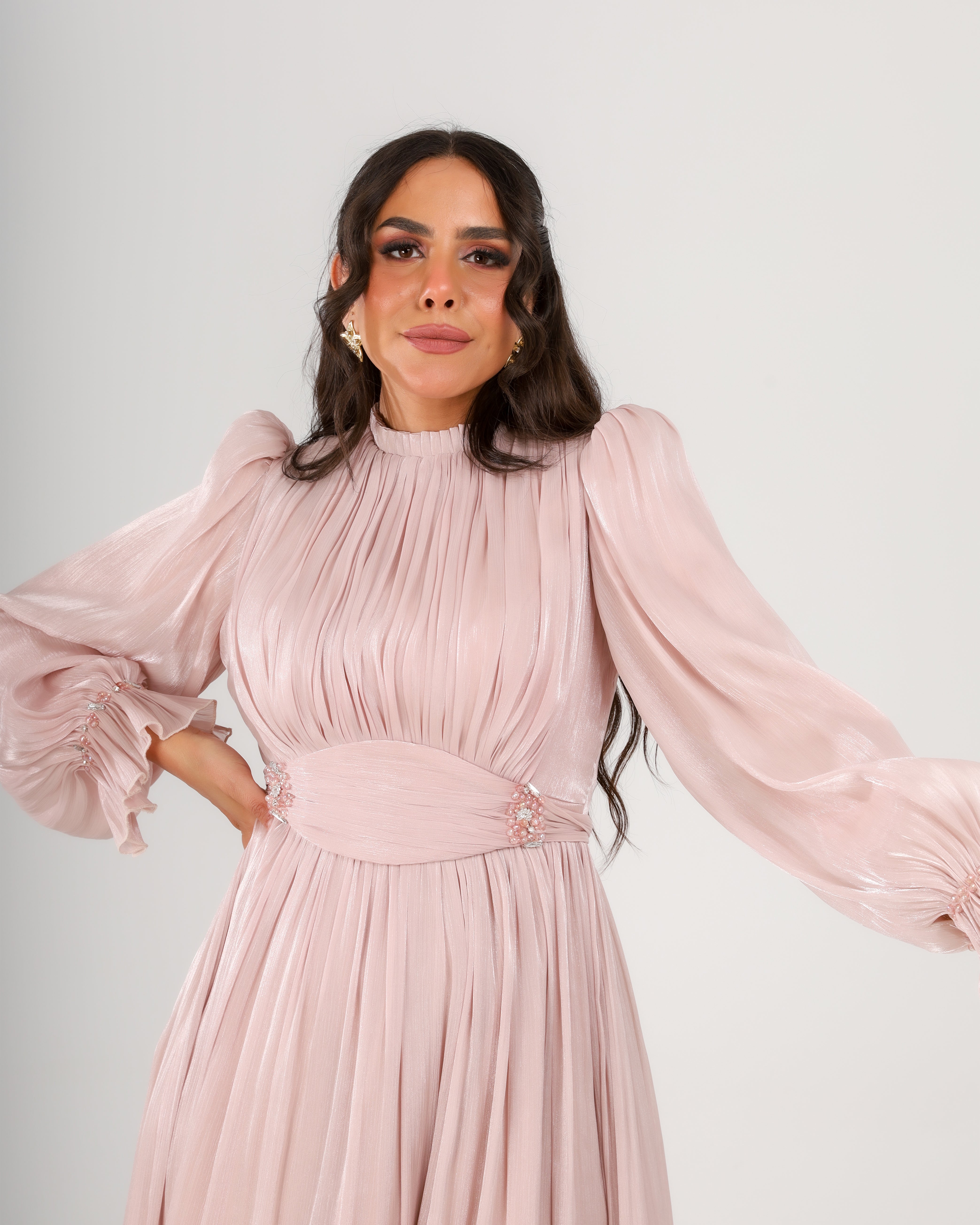 Shimmer Pleated Maxi Dress with Belt s7031140