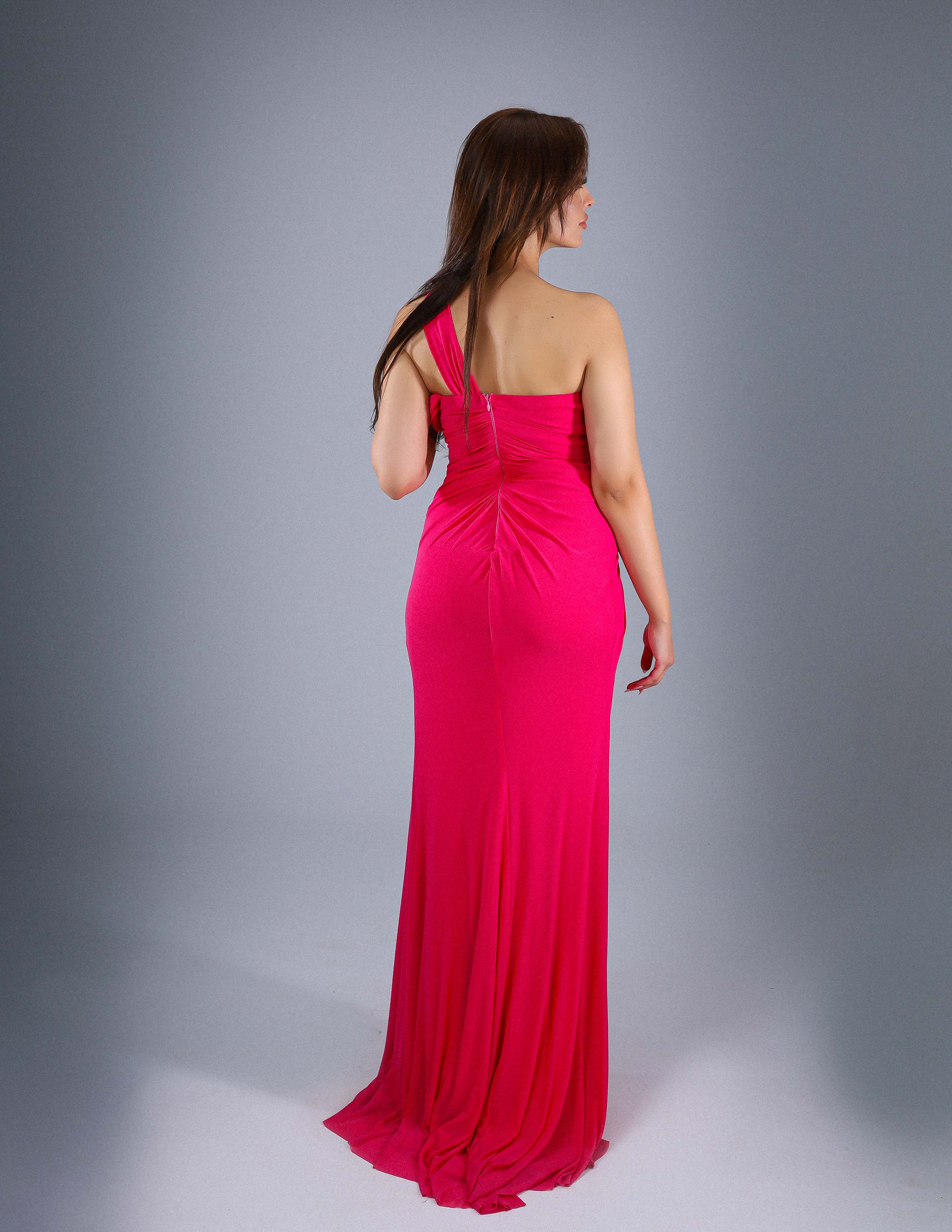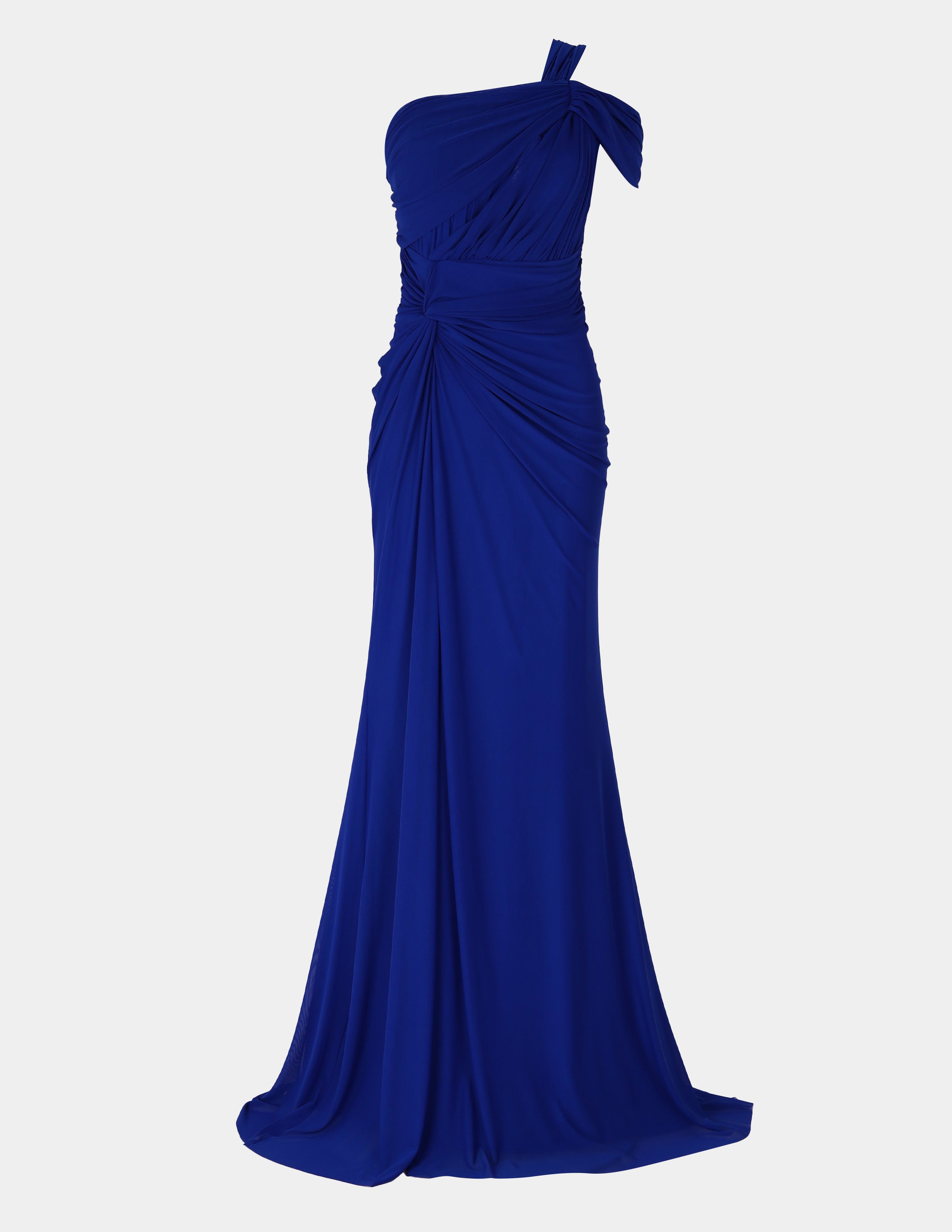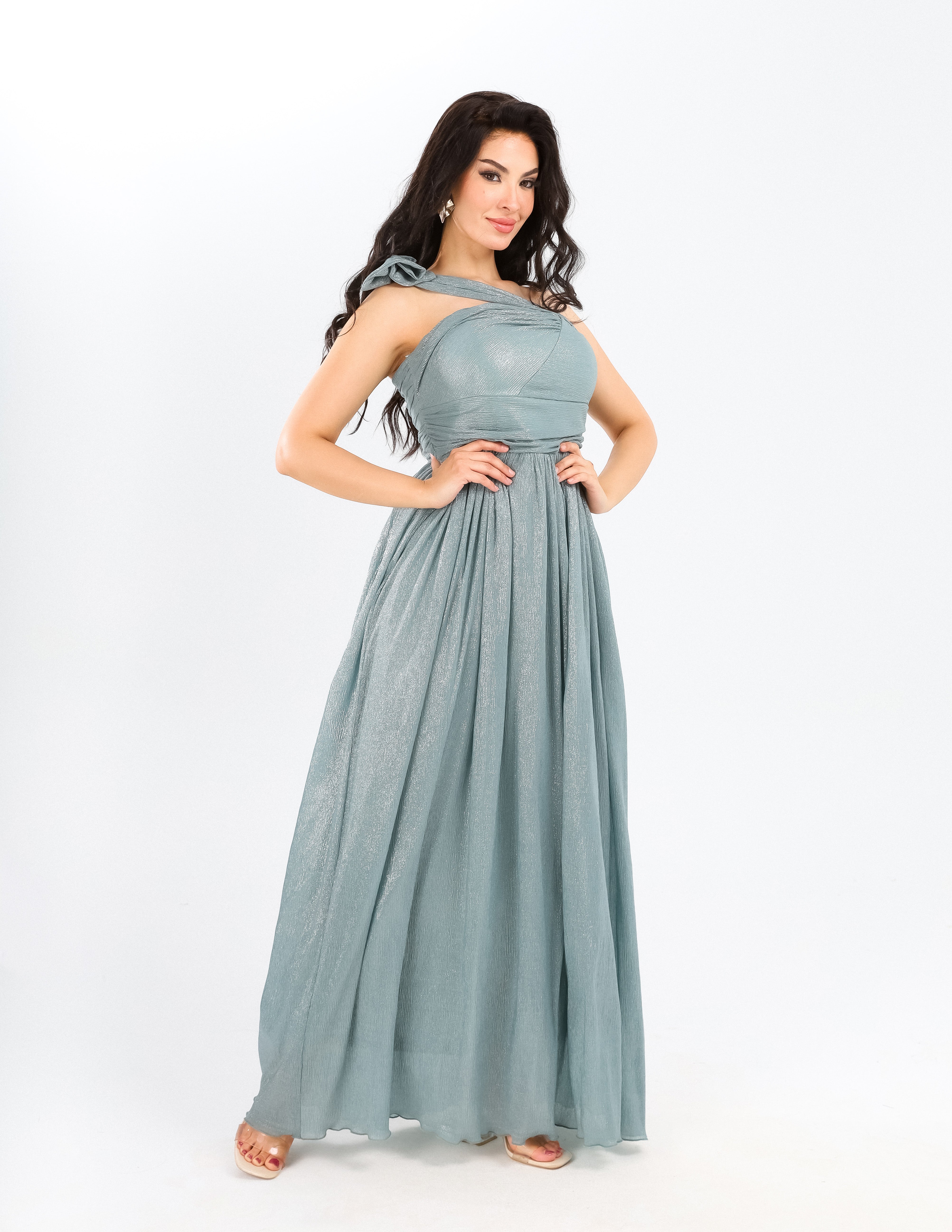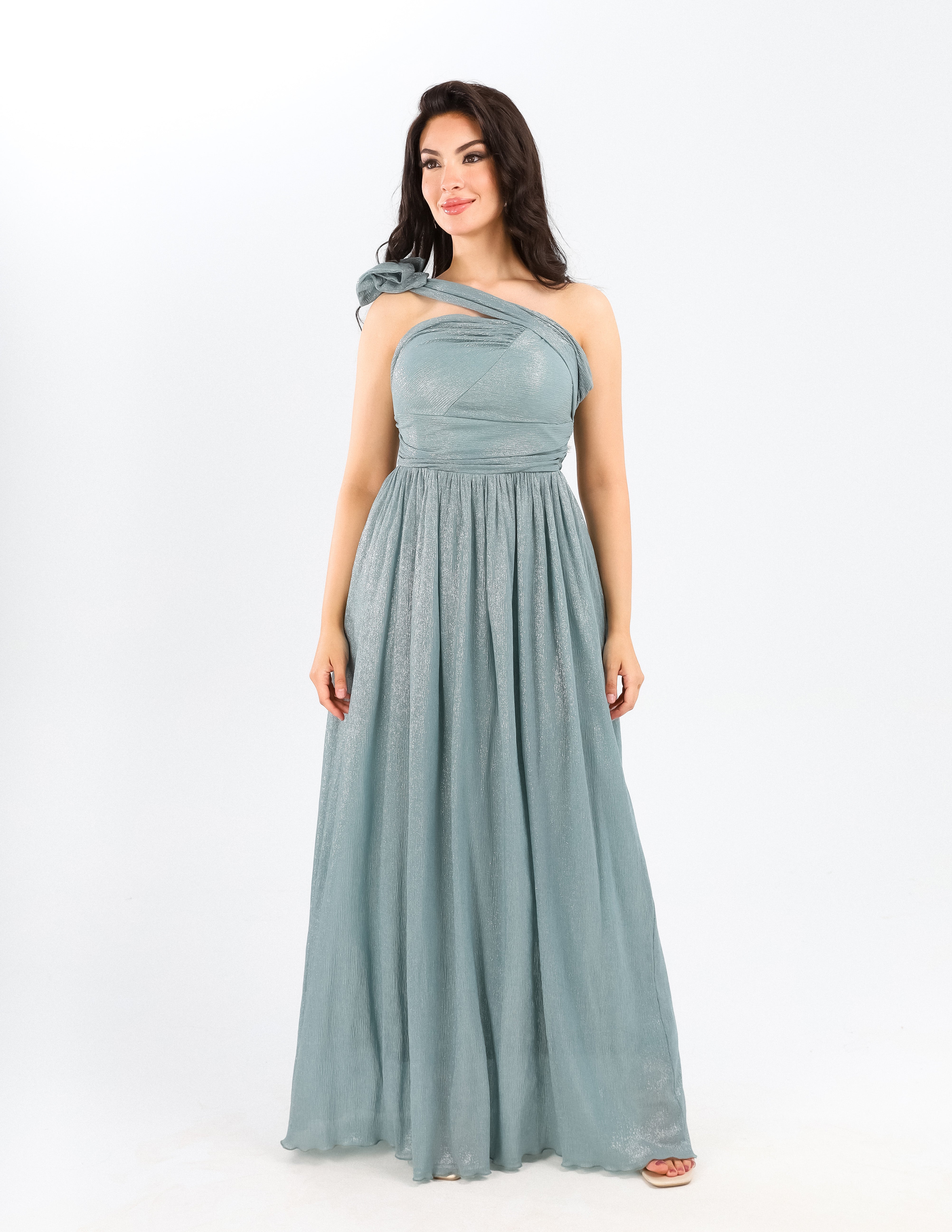 Metallic One-Shoulder Pleated Evening Gown s1593273