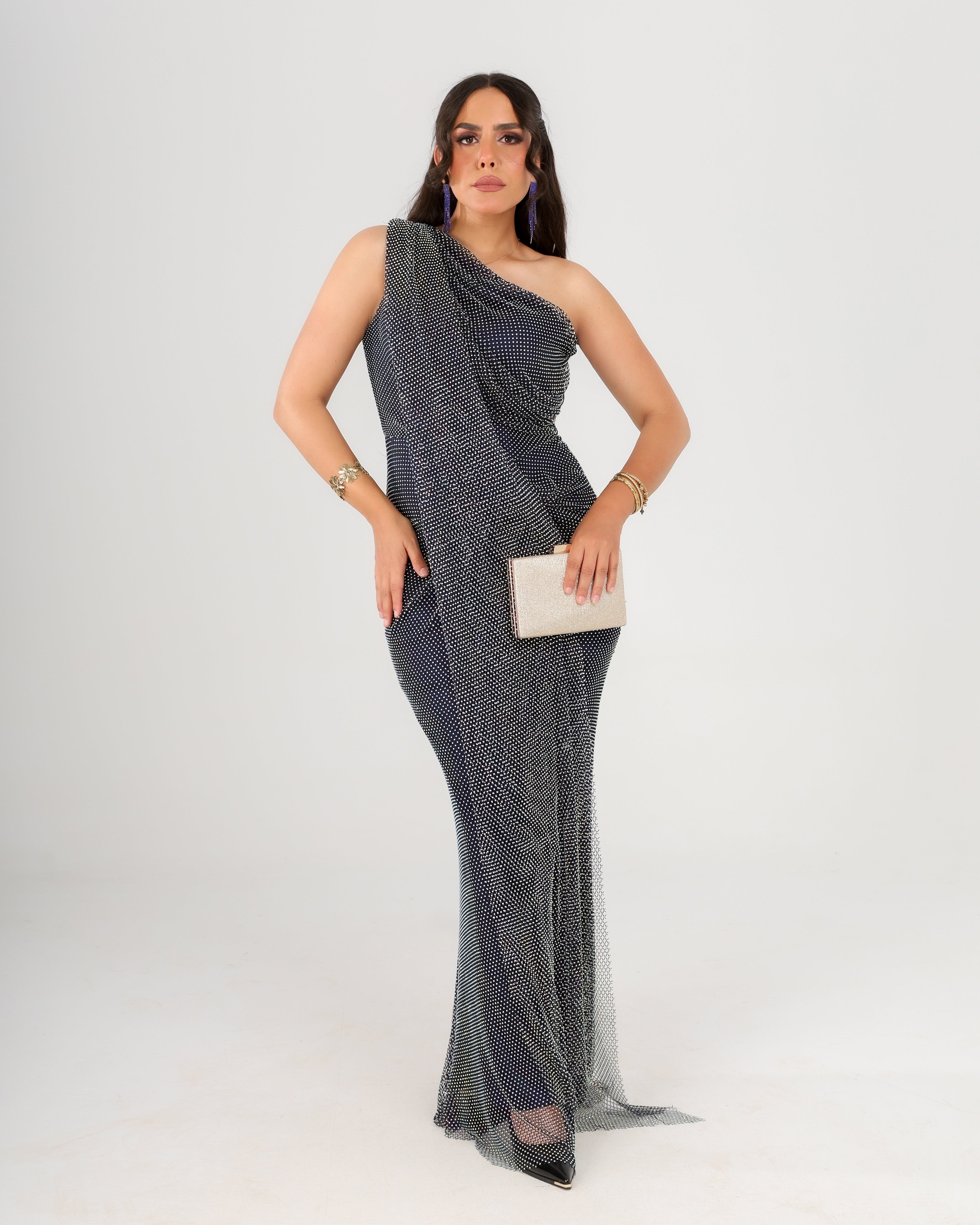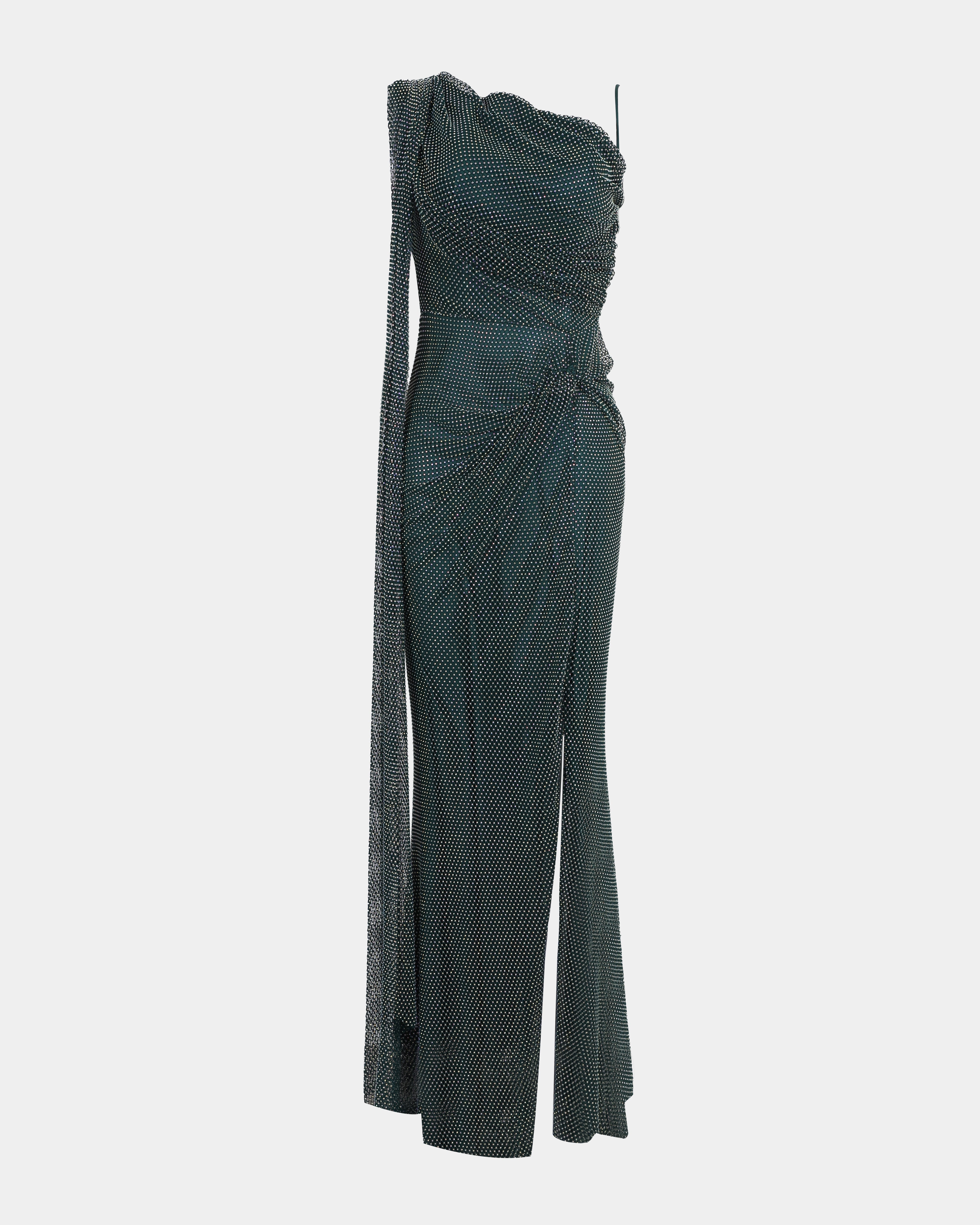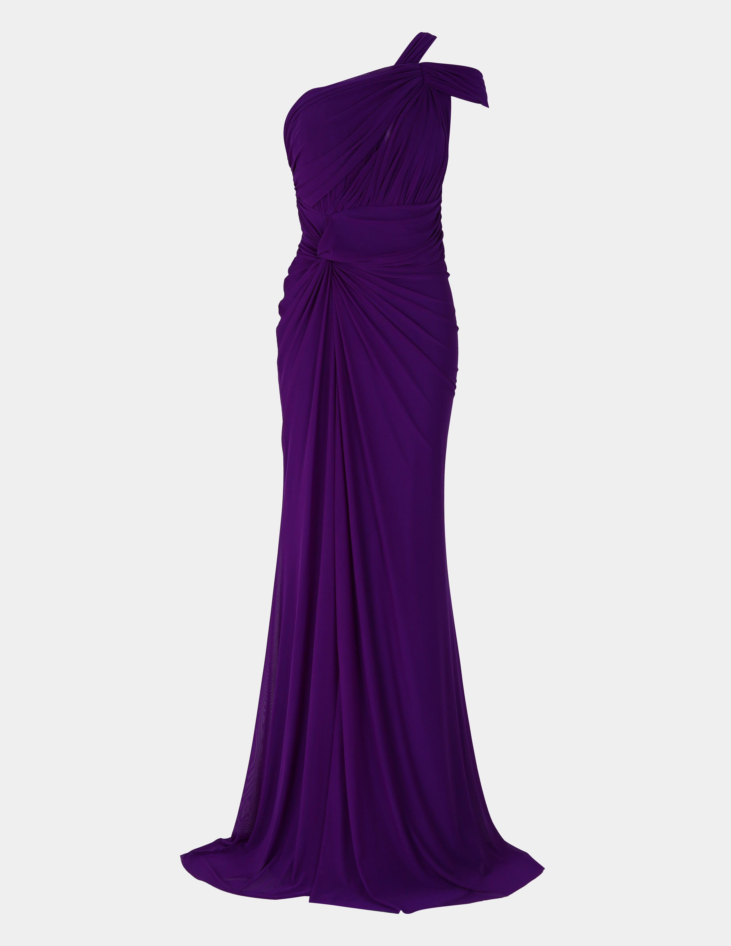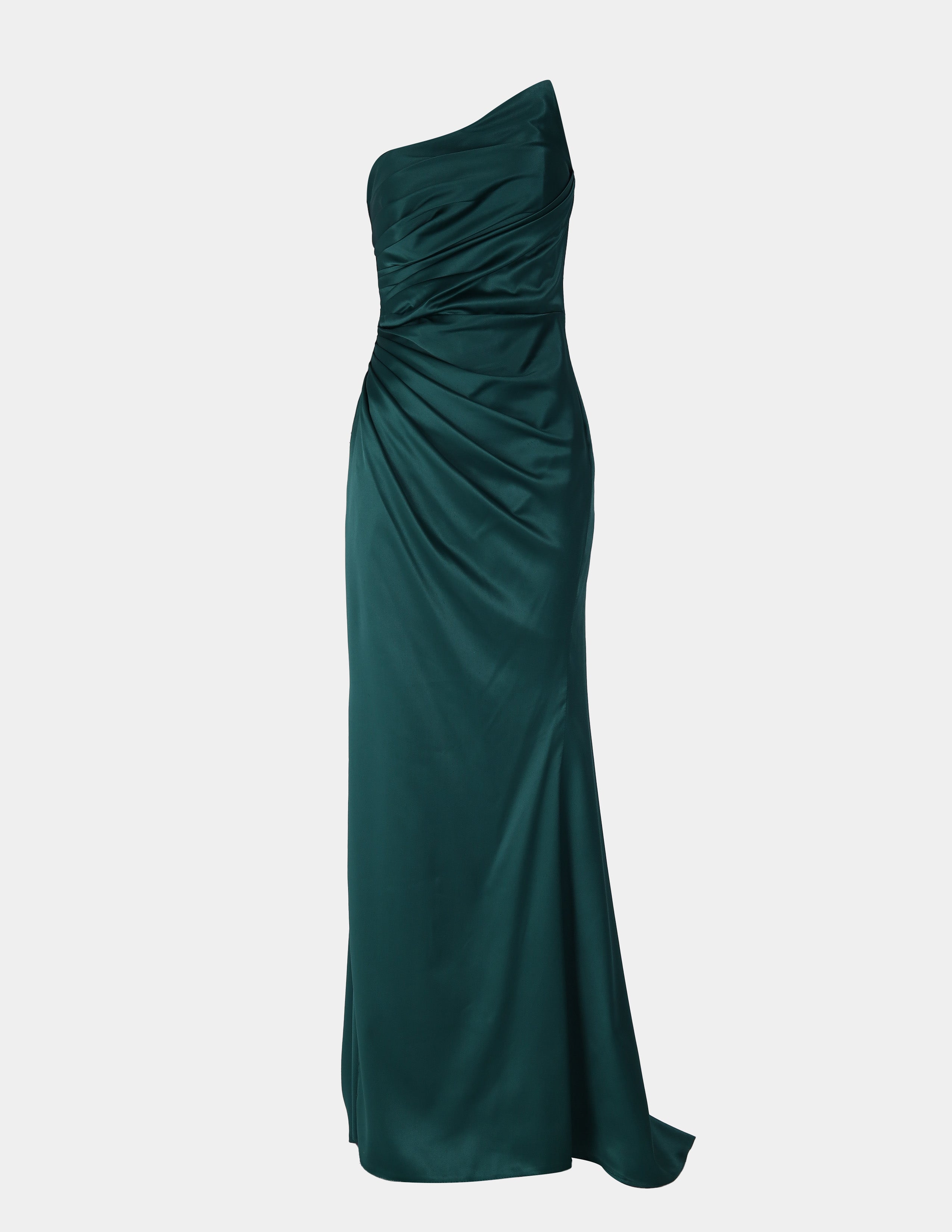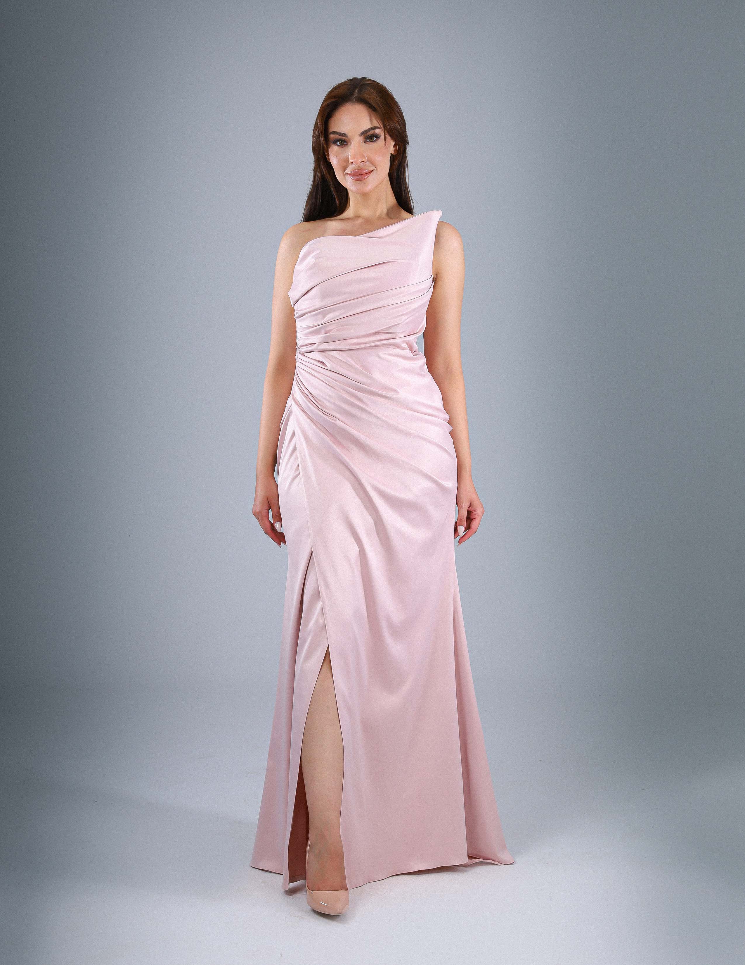 Metallic One-Shoulder Pleated Evening Gown s1593273