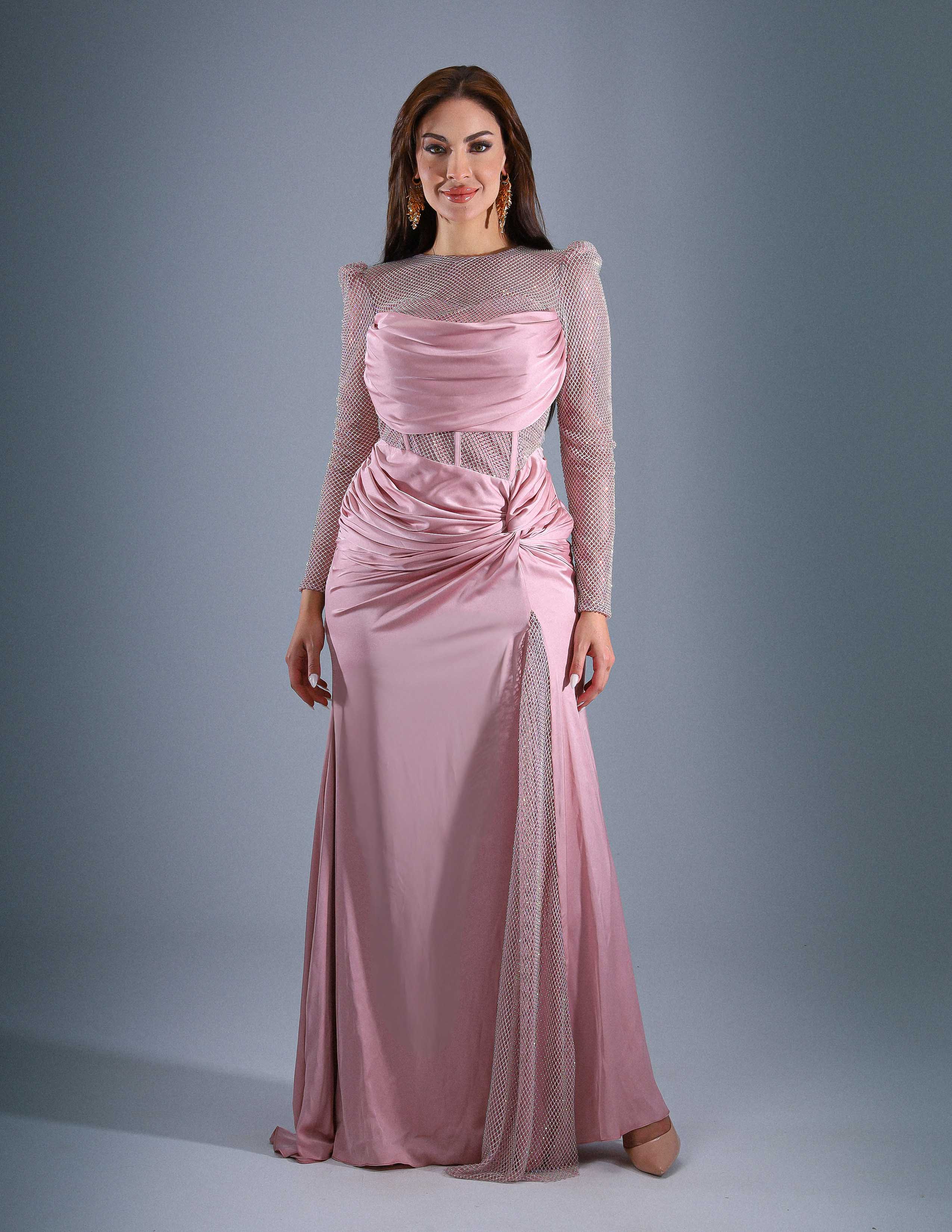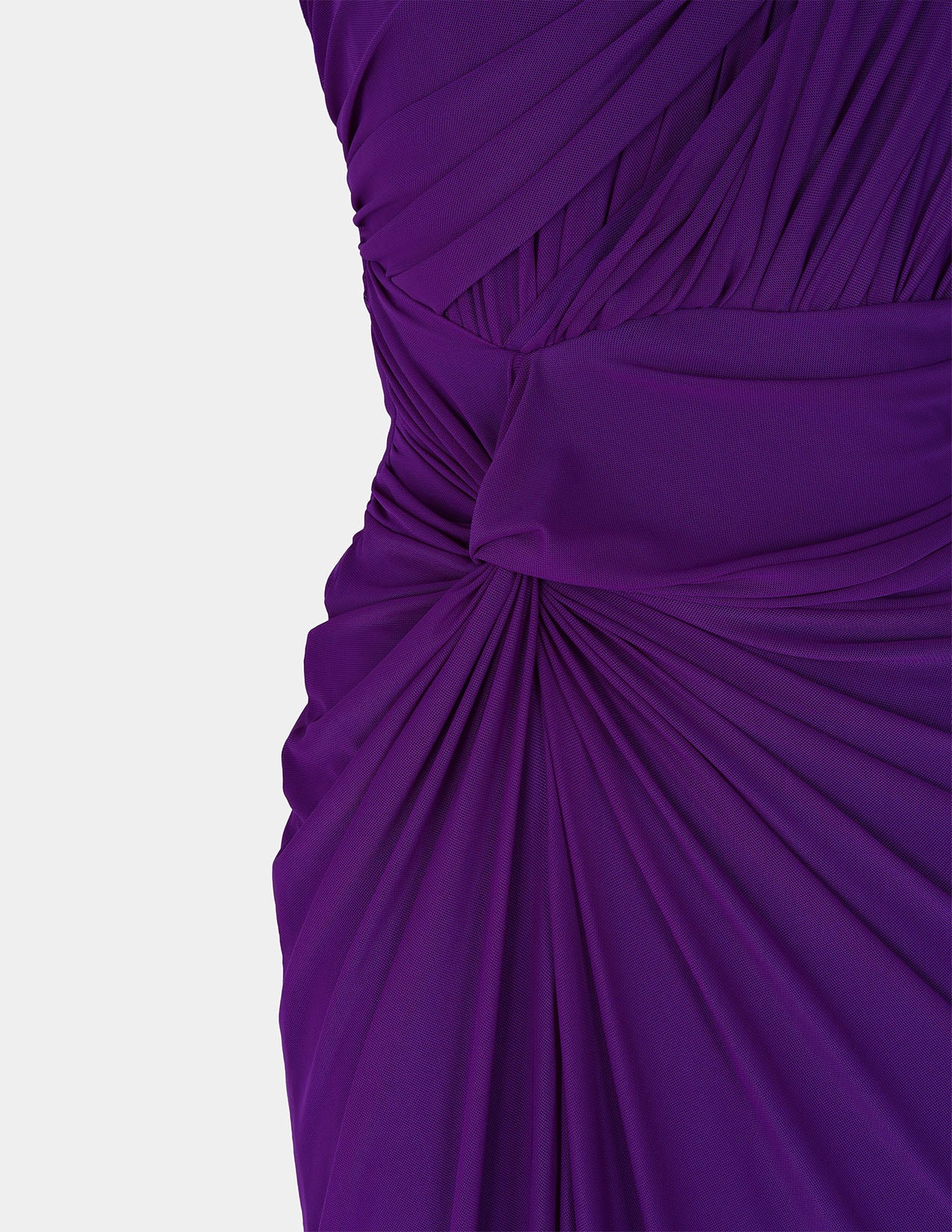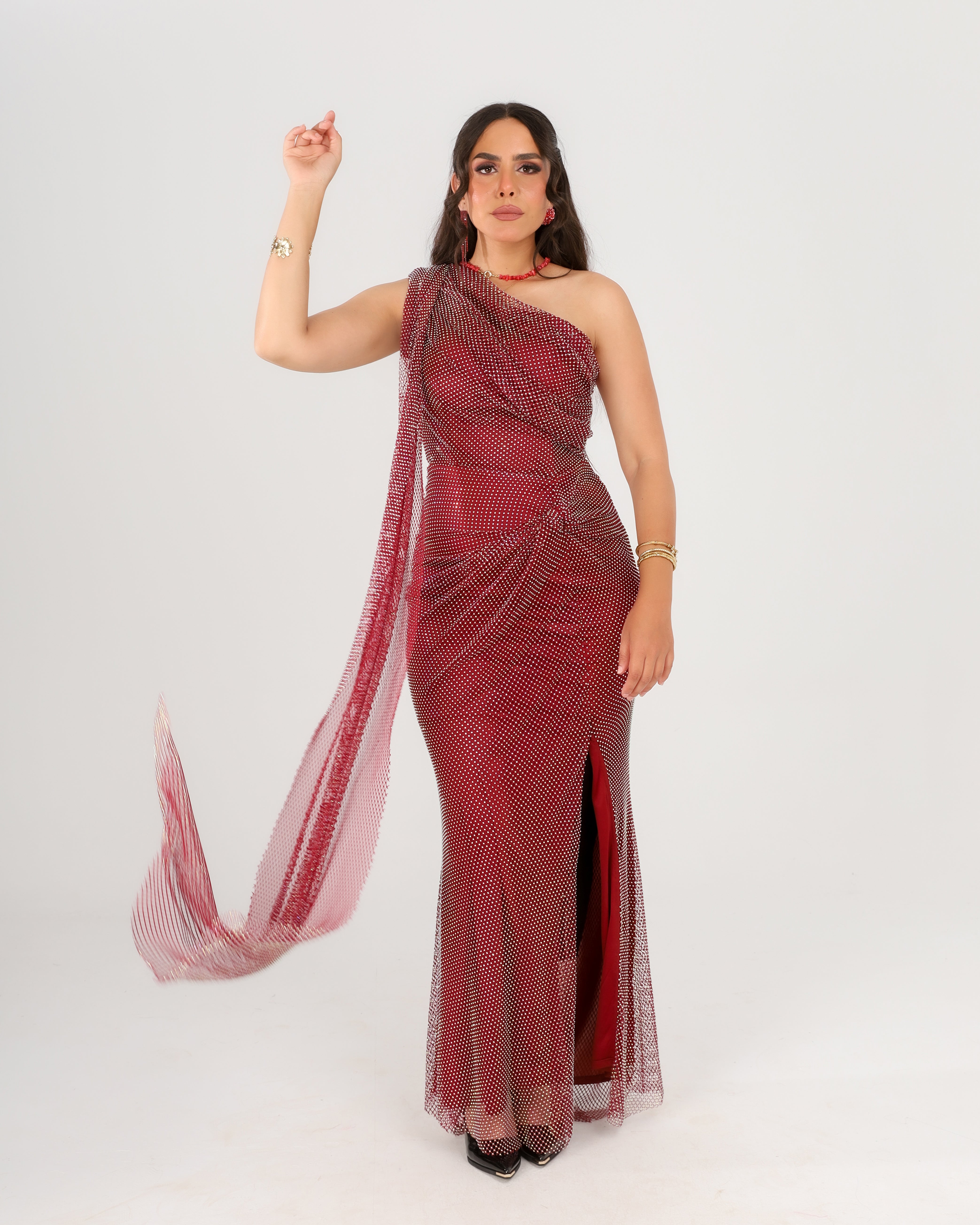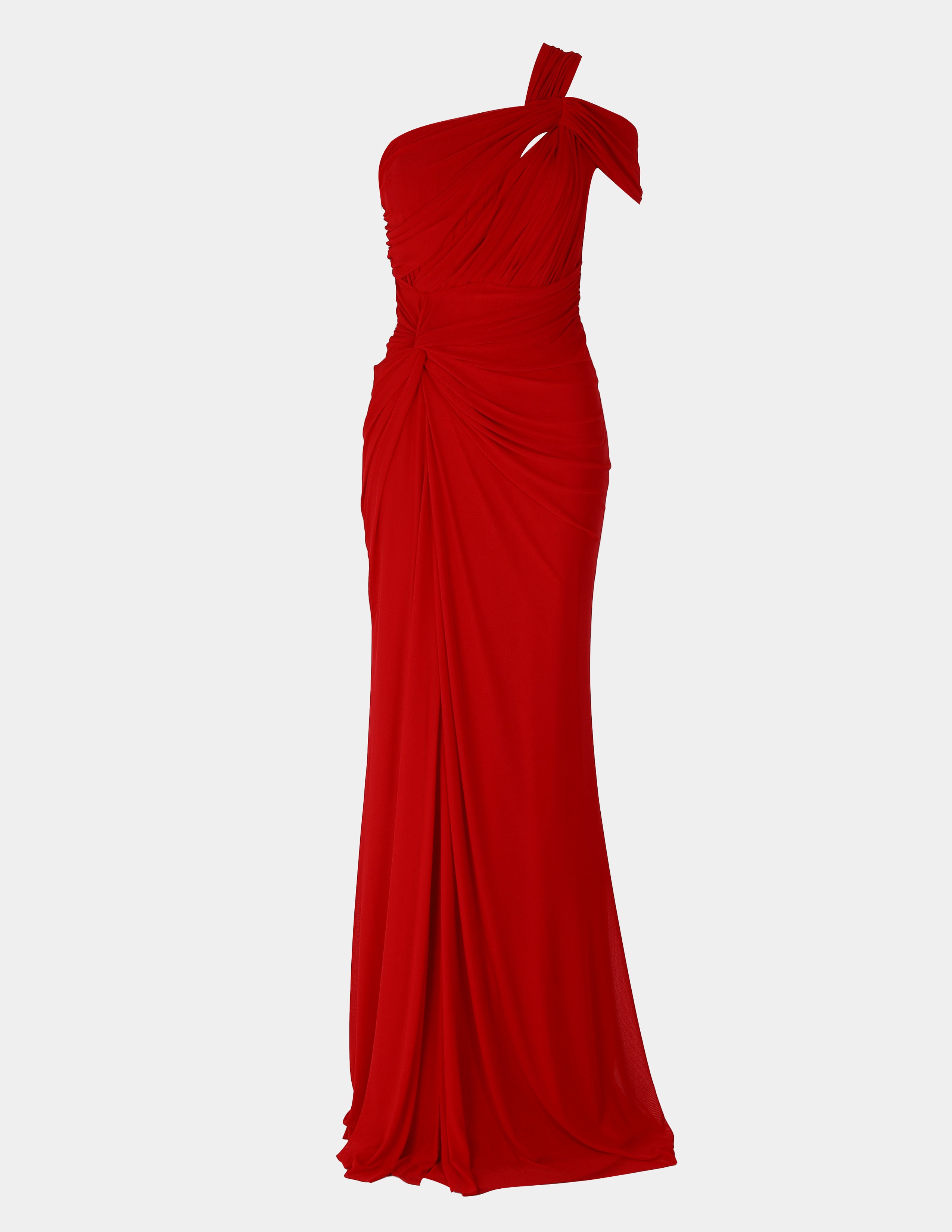 Metallic One-Shoulder Pleated Evening Gown s1593273