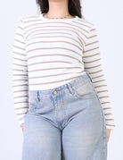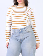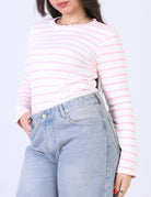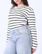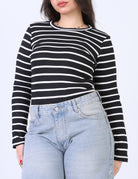 A classic striped crew neck long-sleeve top, designed for comfort and versatility. Perfect for casual wear and easy to layer under jackets or blazers.