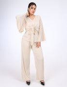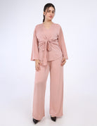 Beaded Tie-Front Elegant Set with Wide Sleeves w1649300