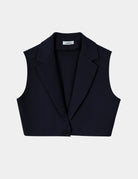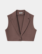 Sleeveless blazer-style vest, featuring a sharp tailored silhouette that adds elegant to any outfit , it’s perfect for both office looks and casual chic days