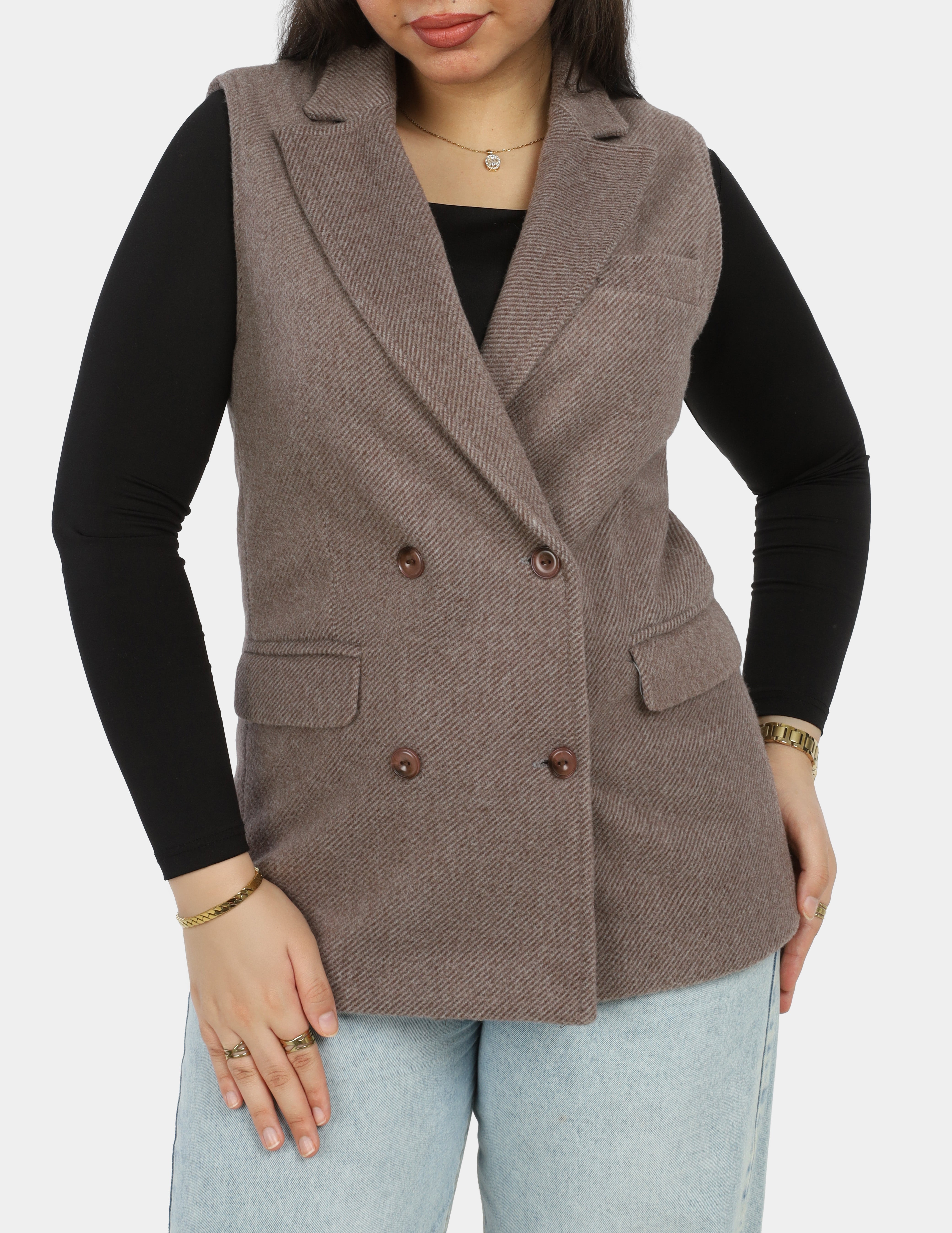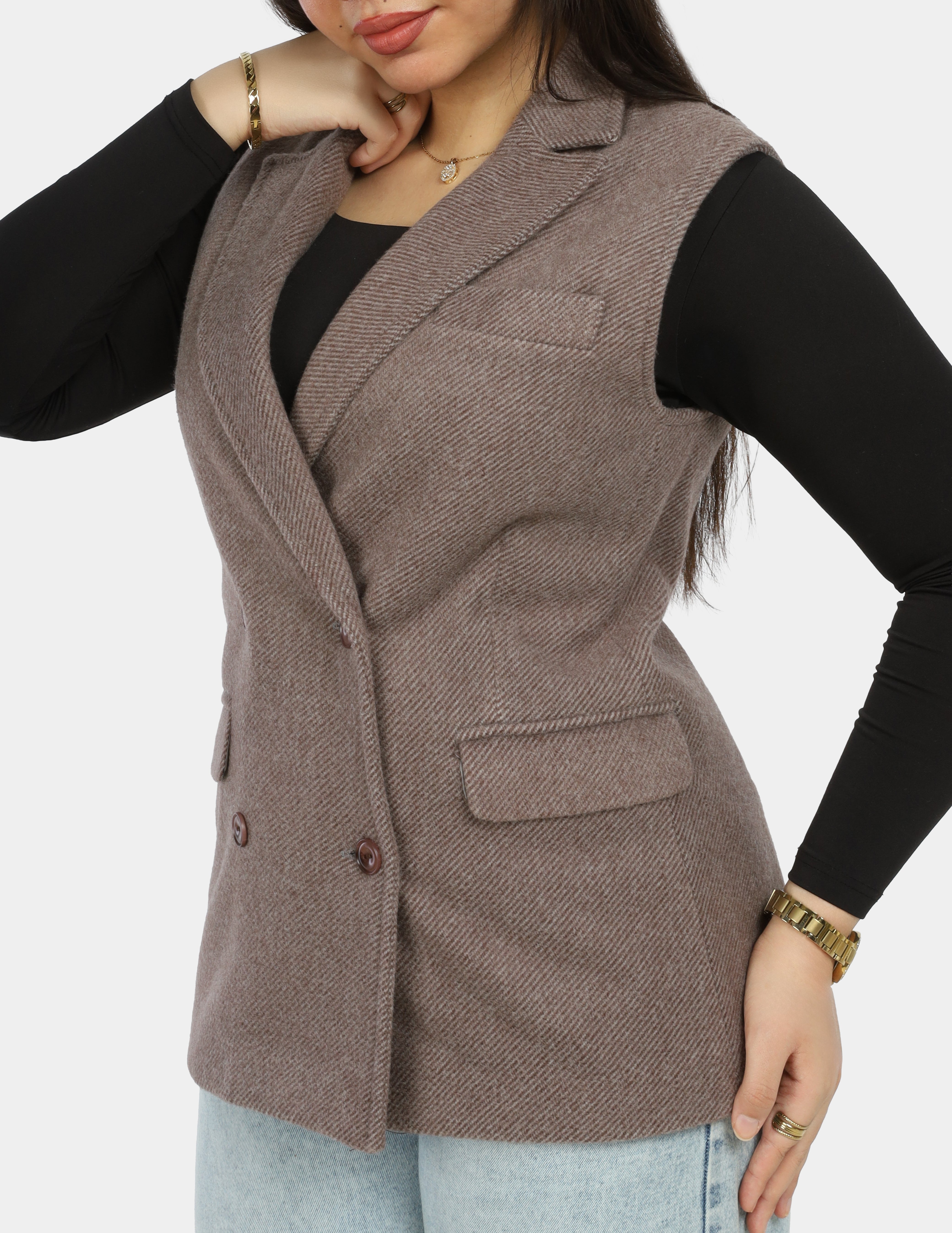 Sleeveless vest features a classic button closure and practical front pockets, combining timeless design with everyday functionality.