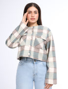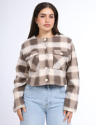 Stylish cropped plaid jacket with a classic collar and front buttons. Made from soft, warm fabric , perfect for adding a trendy touch to your outfits.