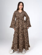 Maxi dress featuring a bold leopard print design, flared long sleeves,