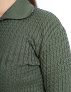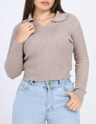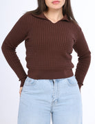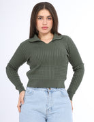 ribbed knit sweater. Featuring a soft textured fabric, long sleeves, and a classic collar design