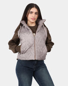 Trendy cropped puffer jacket featuring a Hood for casual style.