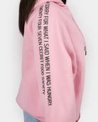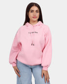 Oversized hoodie with front text and bold sleeve print. Soft, comfy fabric perfect for casual everyday wear.