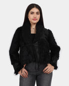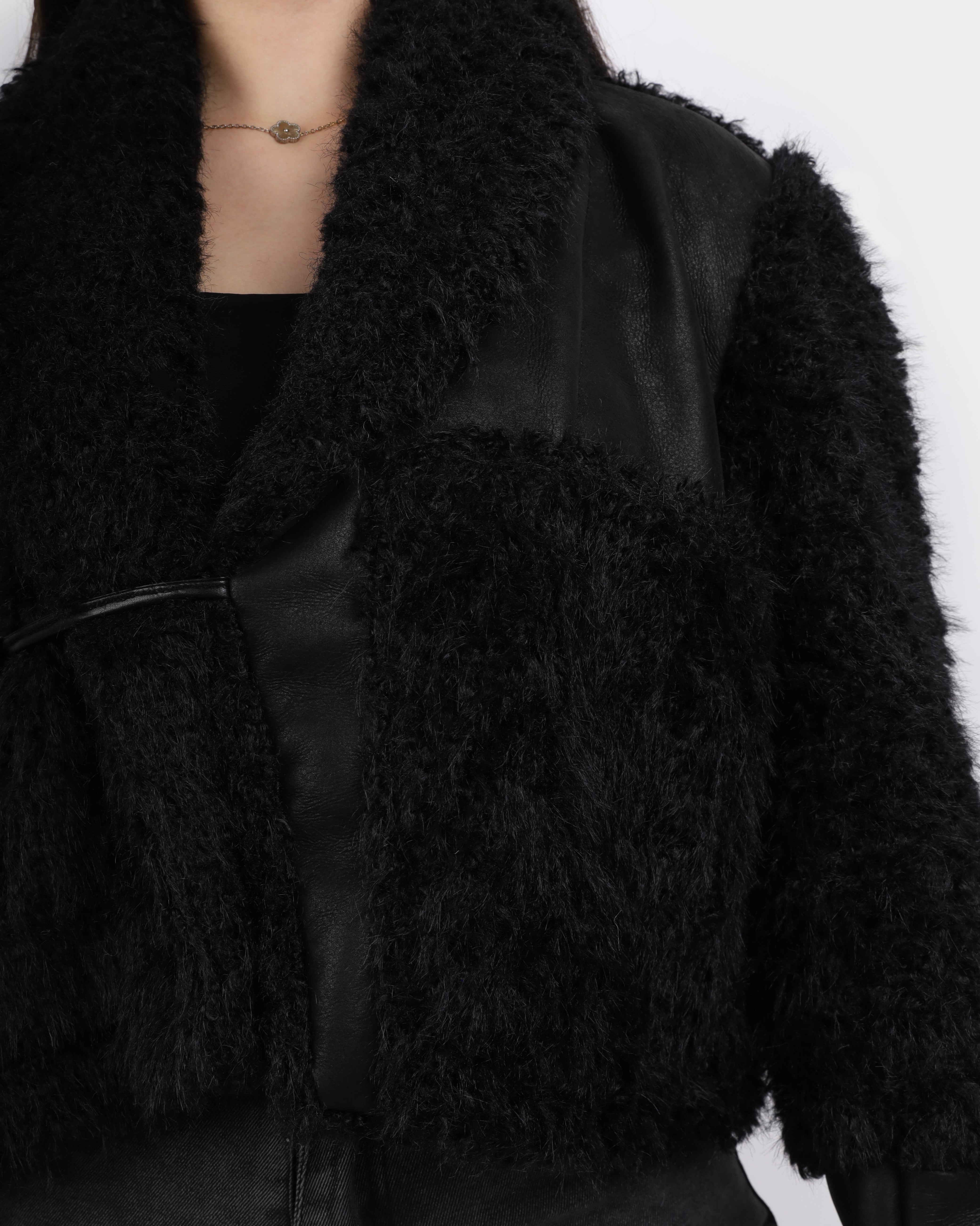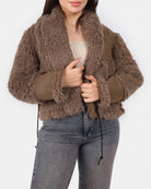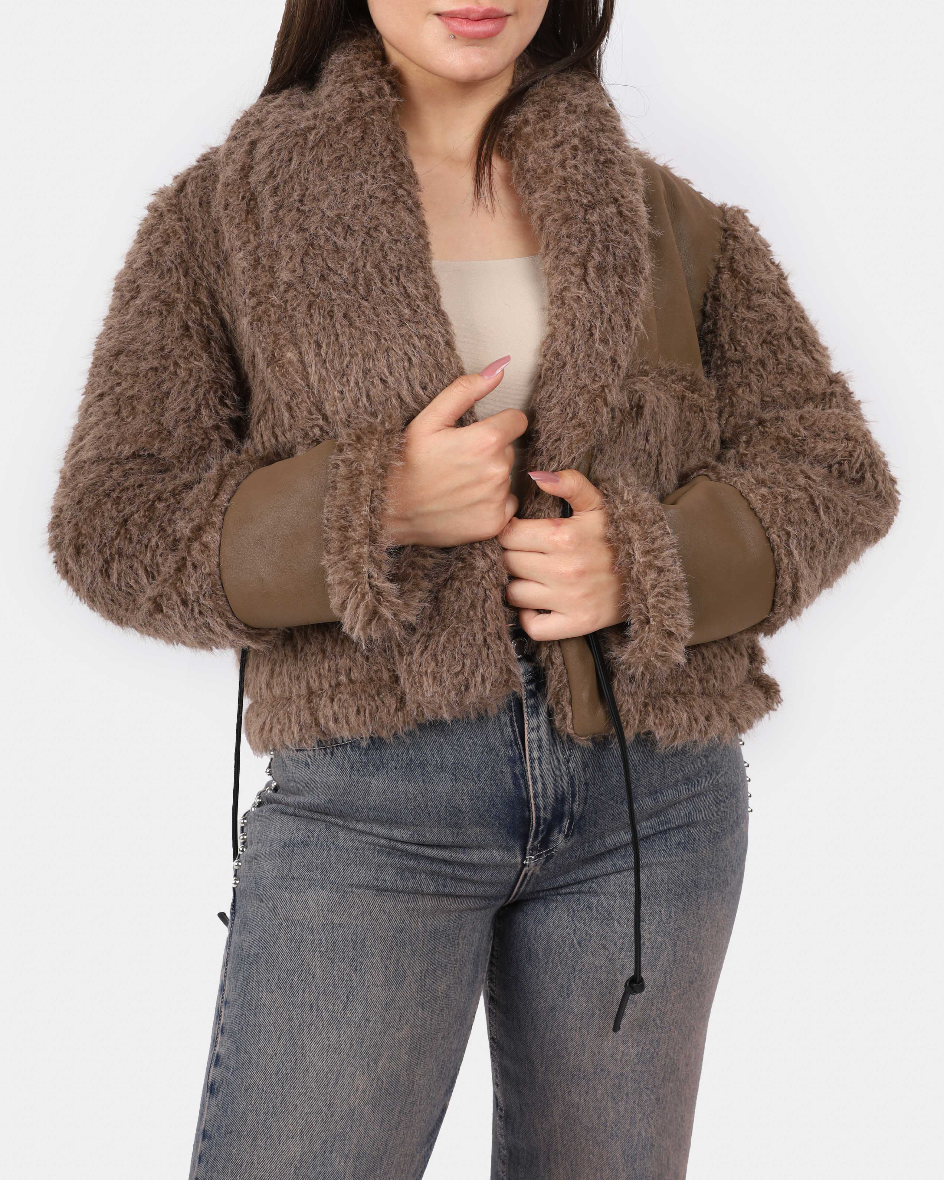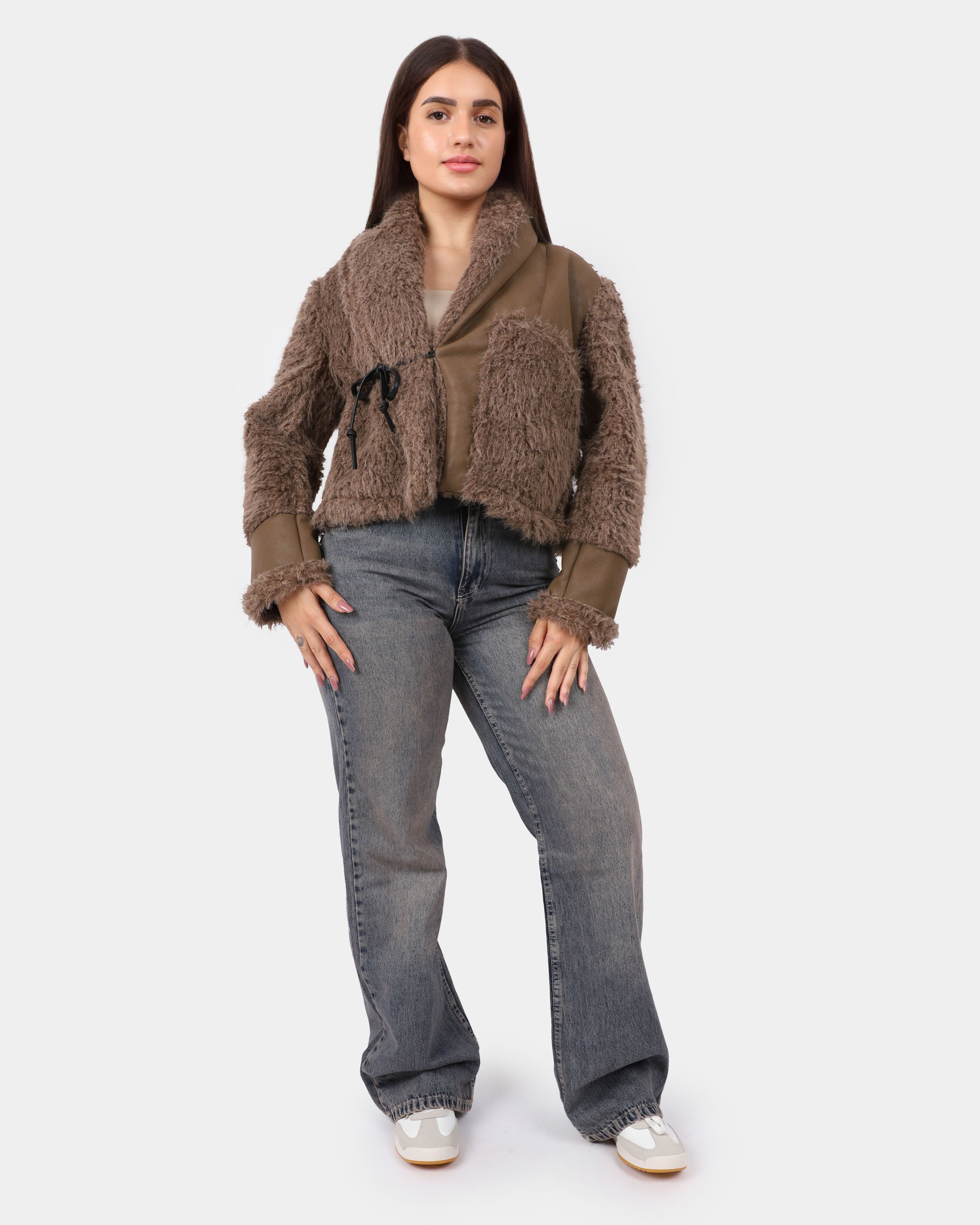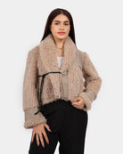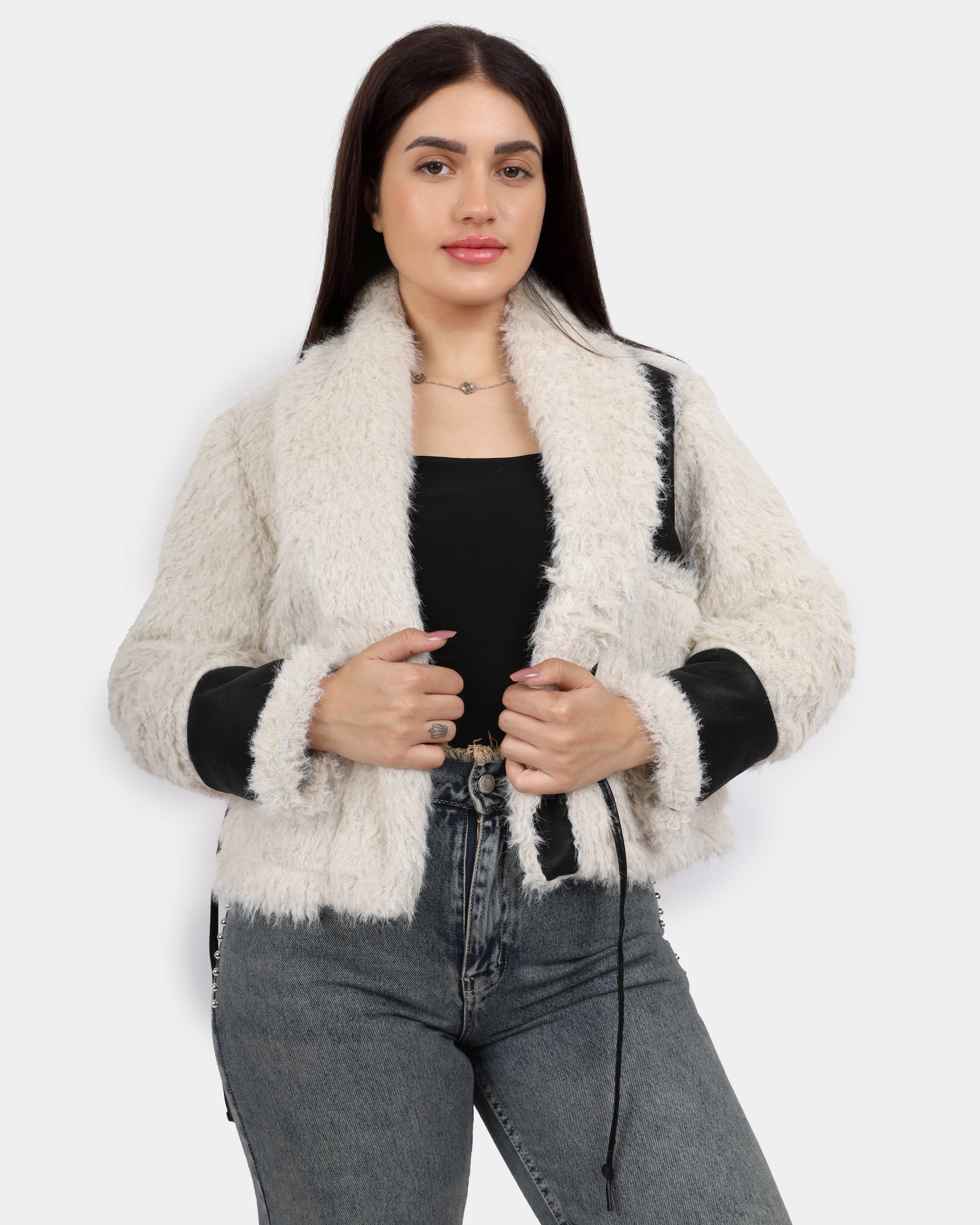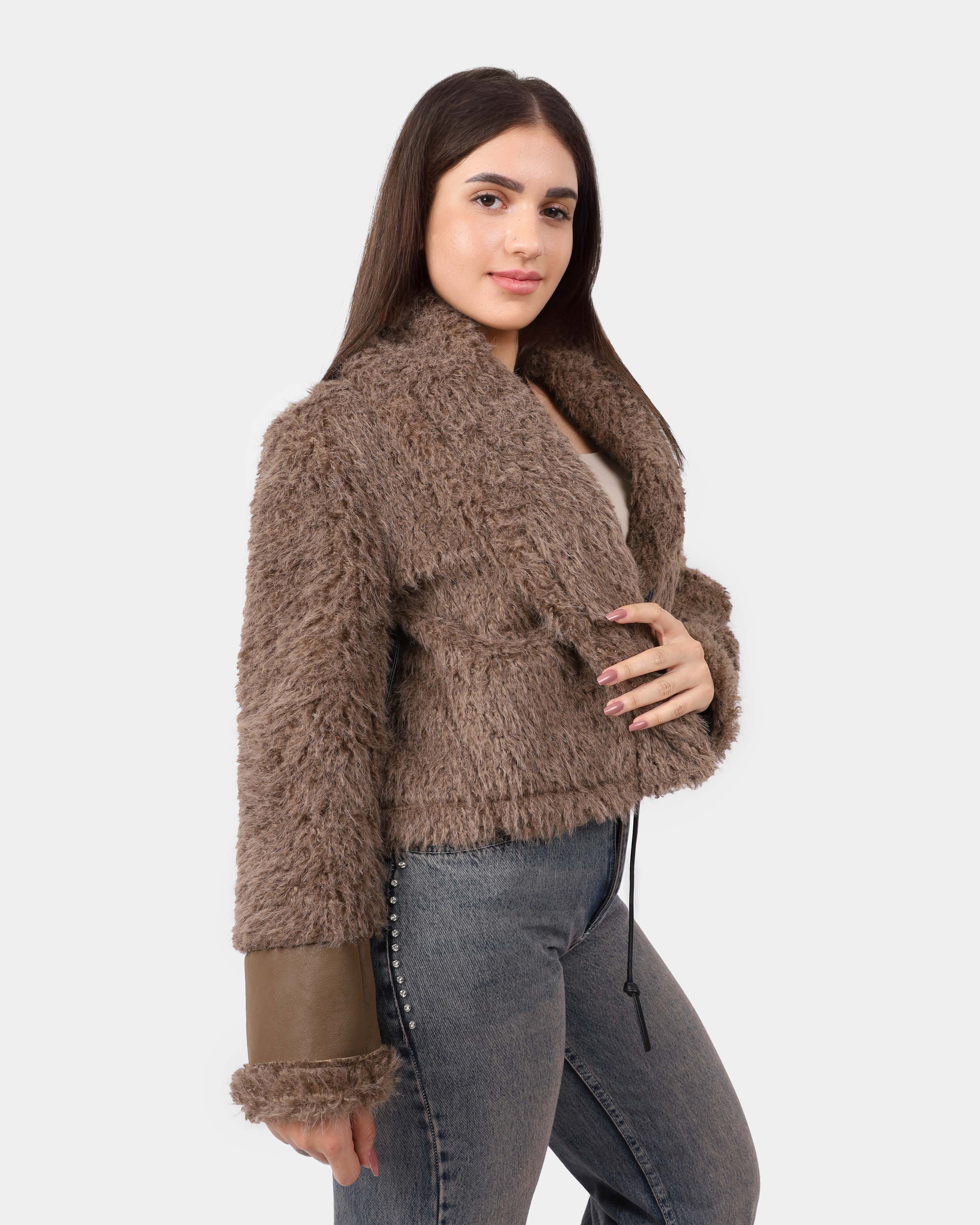 Luxurious faux fur wrap jacket featuring a belt for a flattering, cozy fit , perfect for stylish winter layering.